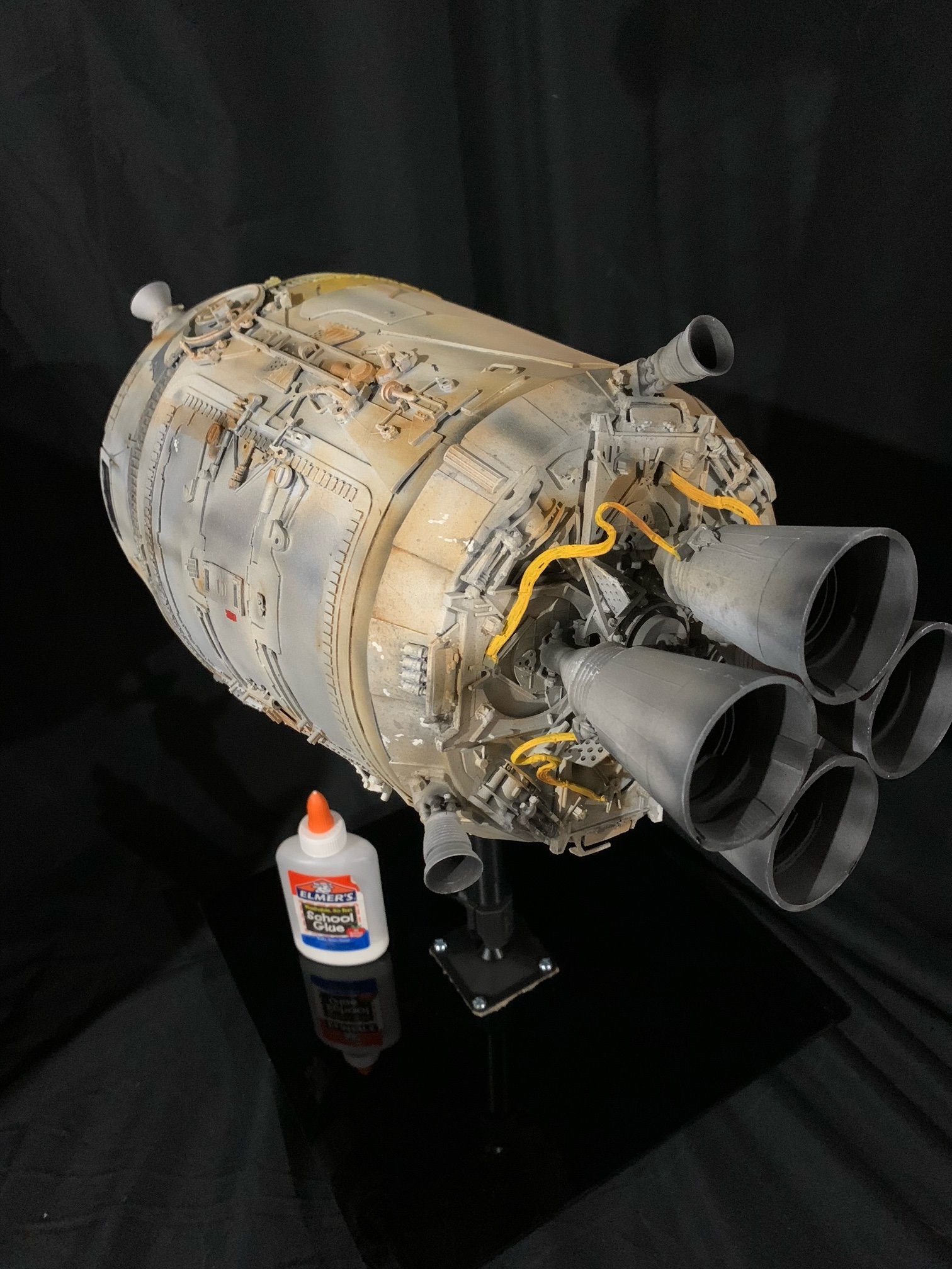 Description: This is a Studio Scale Escape Pod from A New Hope, built from the Nice-N Model Designs resin kit, and entirely painted and weathered with Archive X enamels. It measures approximately 17 inches long. Affixed to an adjustable Panavise mount on a black acrylic base so that you can easily change its position to suit your preference.