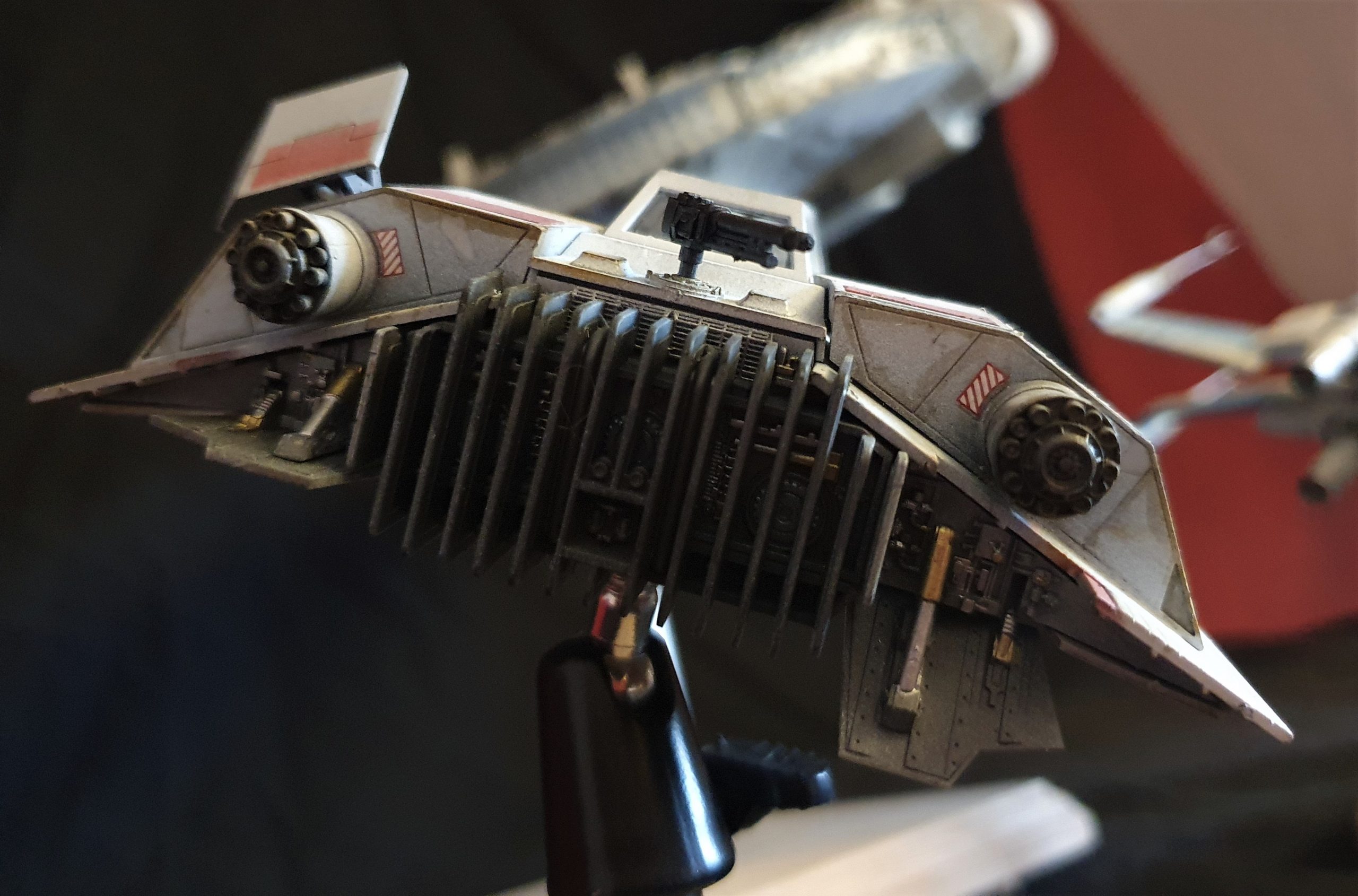 Price is $1250 plus shipping from the UK. The models will be carefully packaged with individually cut styrene sheets and all fragile parts removed for shipping – quad lasers, radar dish and X-wing cannons.