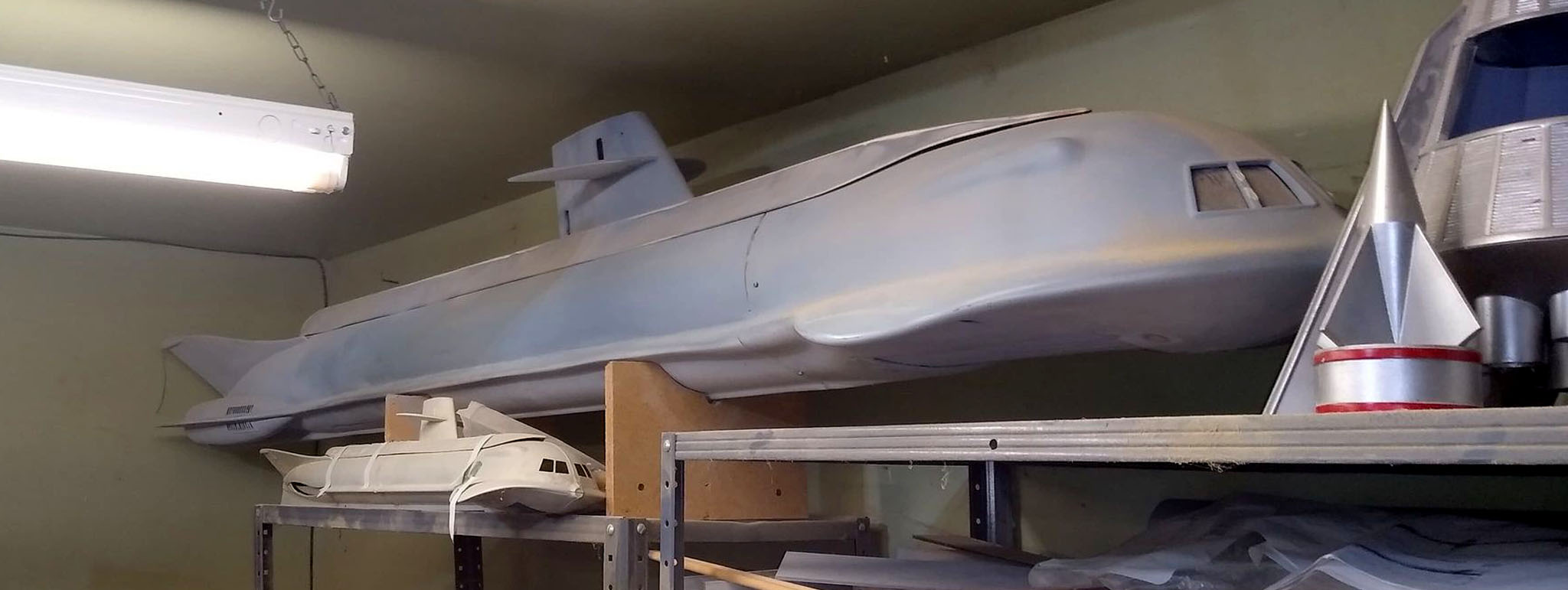 Kit Description: This partially worked on Seaview Hull is 8’6″… which is studio scale. The nose casting is off the original filming model. It is being sold for lack of room. The completion of the model can be negotiated at time of sale. Please contact me with interest in it’s purchase. I have only one to sell!