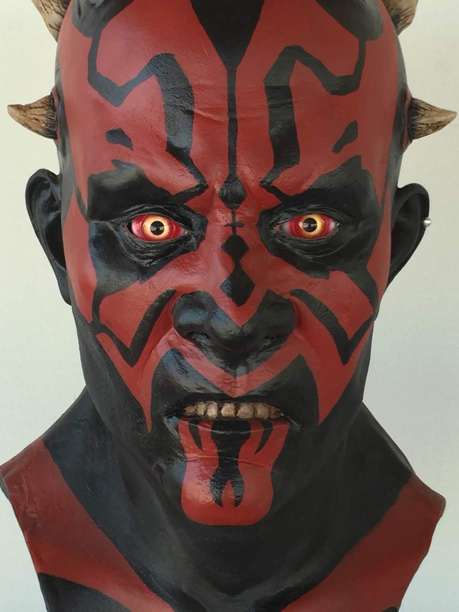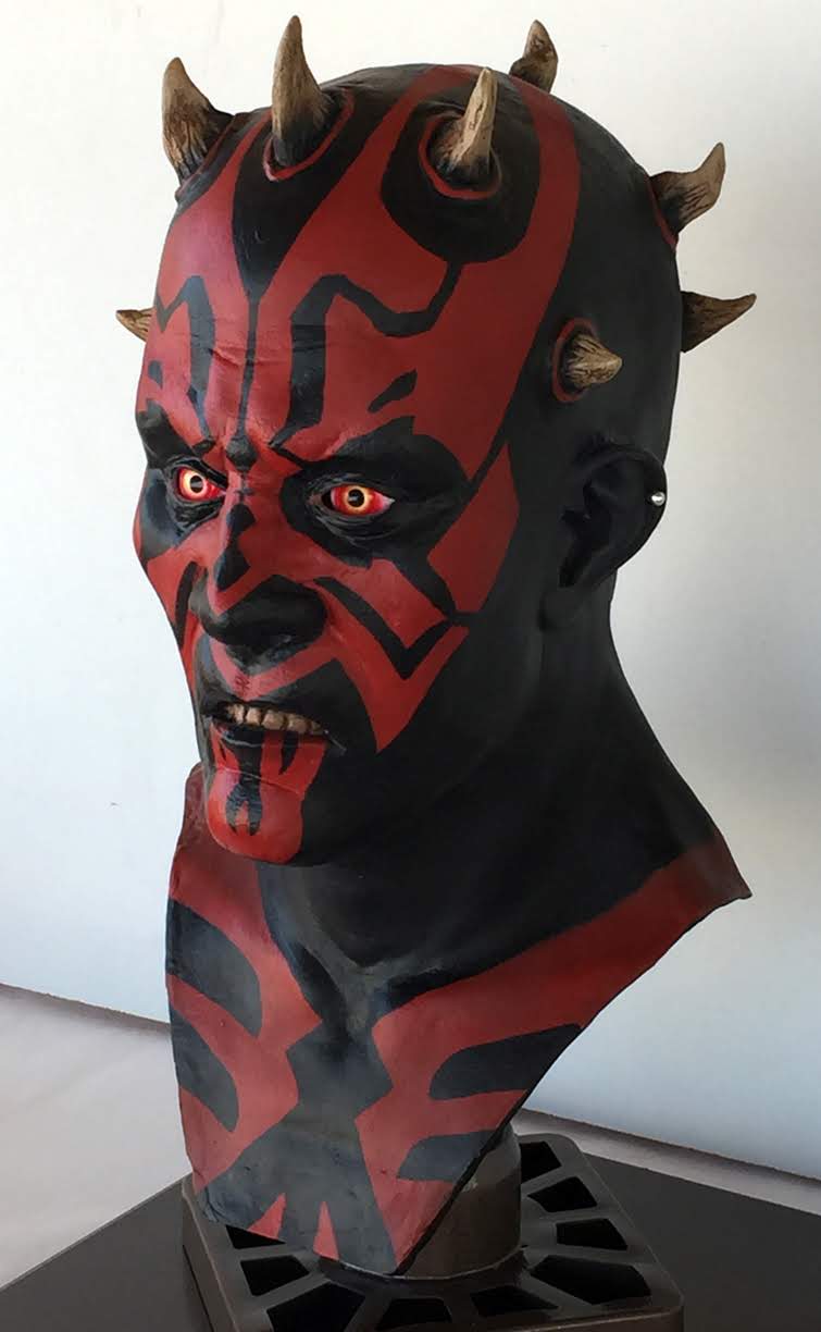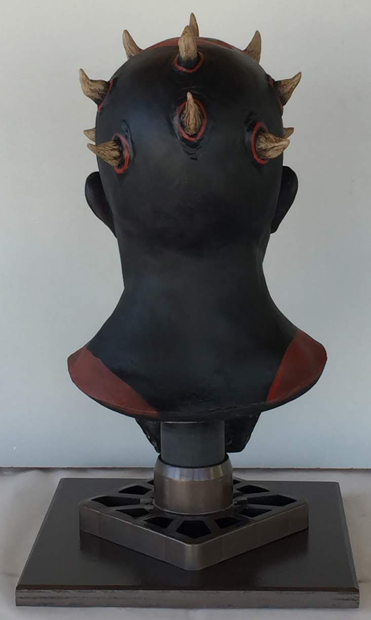 This is a Life Sized Bust of Darth Maul. It is a hollow resin/fiberglass bust with custom painted “glass” (actually acrylic) eyes. The bust is about 17″ tall from front of chest to top of horn. On the stand it is about 20″ tall. See the photos of the actual item for condition details. This was a custom bust kit offered right around the time The Phantom Menace came out. I had it in storage since then and I recently took it out, painted and finished it this past week. The stand in the photos is included. The stand is wood and plastic with a PVC pipe. The bust is resting on the stand and is not permanently attached. Any questions let me know. Note: This is NOT from Sideshow.