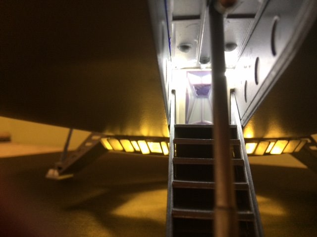 To operate internal and external lights there is an electrical port for transformer plug A toggle switch for main power and internal lights, and a push button to activate 3 speed fusion core and dome lighting. These have all been in stalled in each landing bay. Please feel free to contact me for any more information.