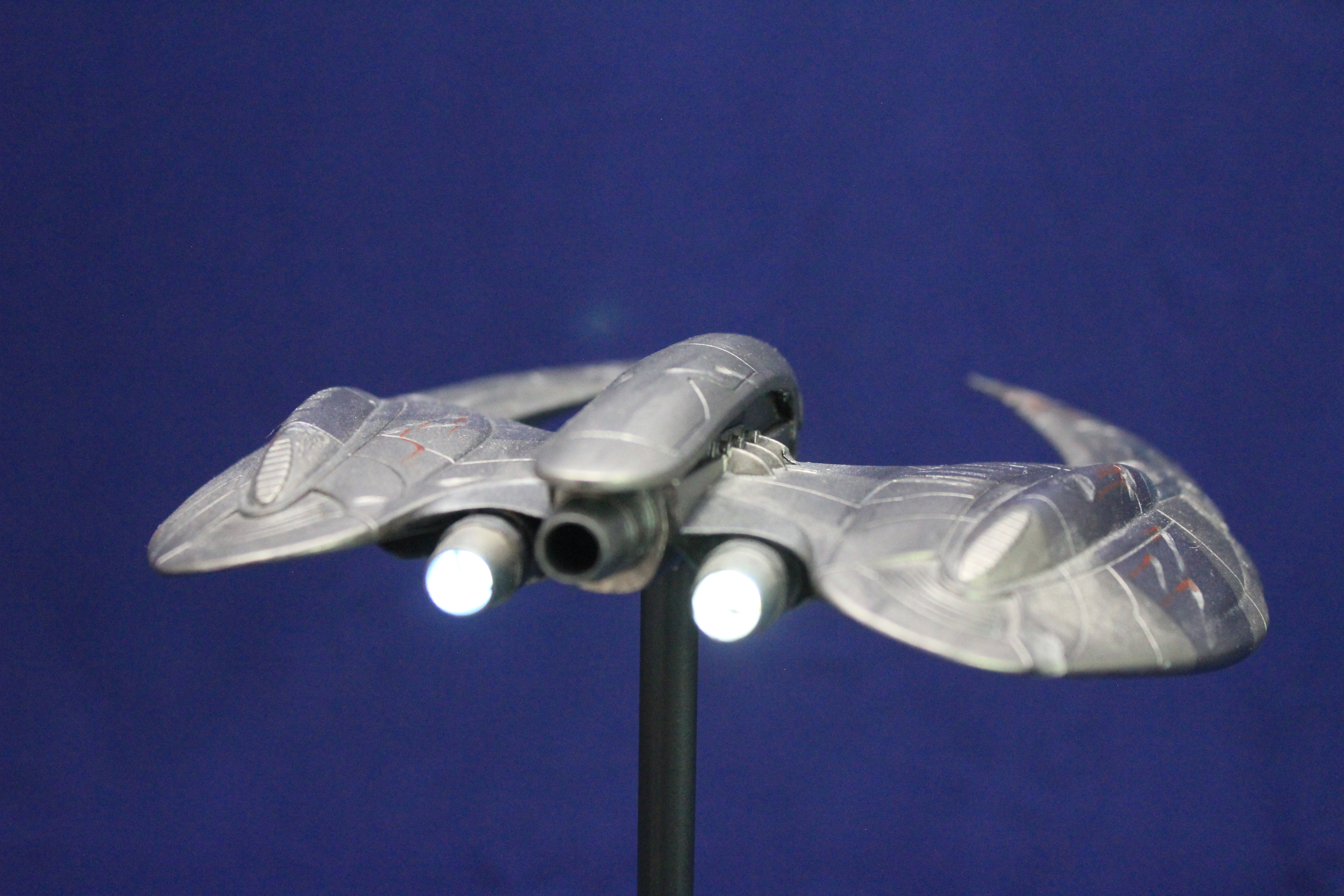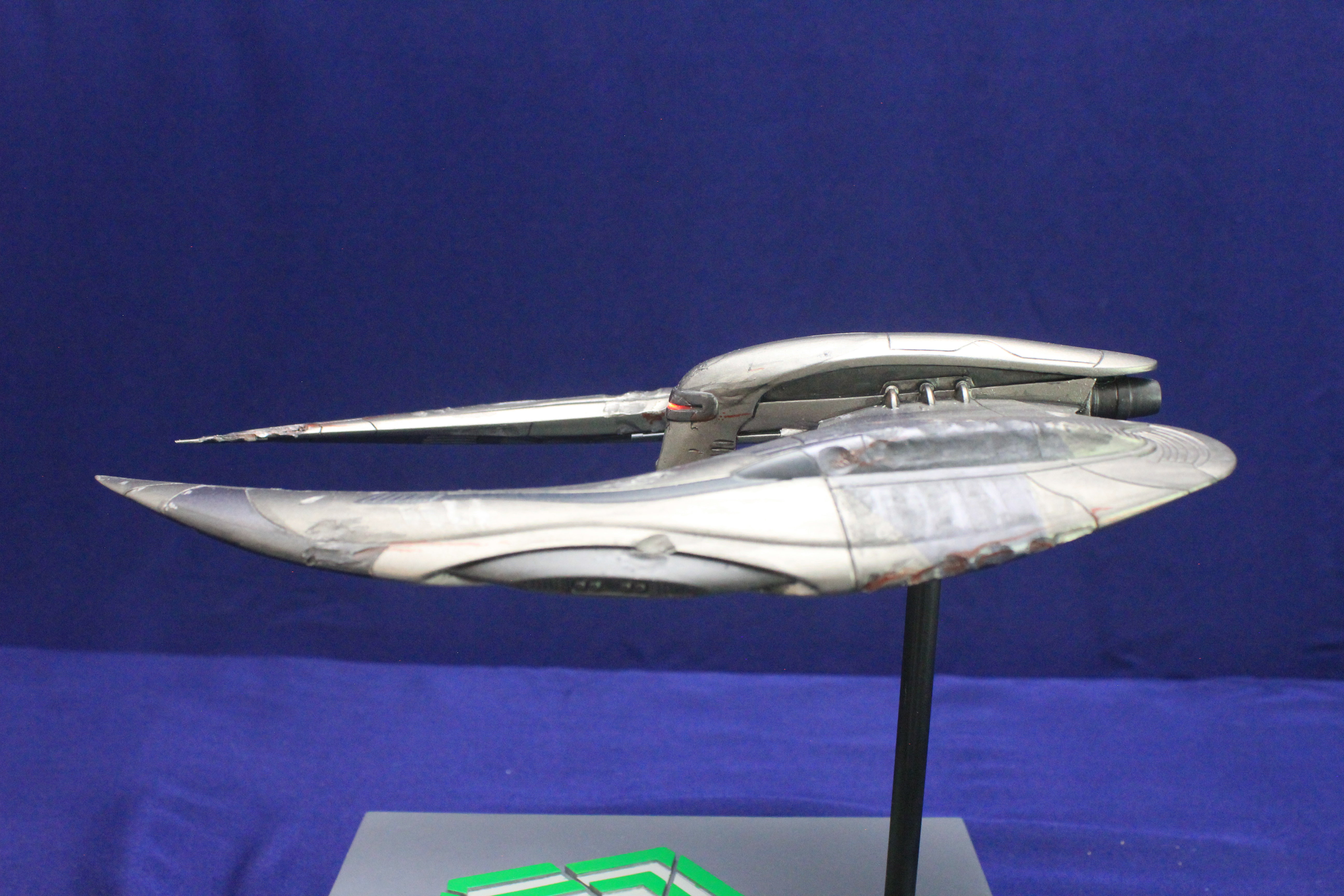 Season 4 raider backdated to season 2’s episode “Scar”. The face of the raider was re-contoured, gun mounts and bomb bay doors altered, damage to hull based off of still images form the episode. Scanner eye sweeps back and forth and engines light up.