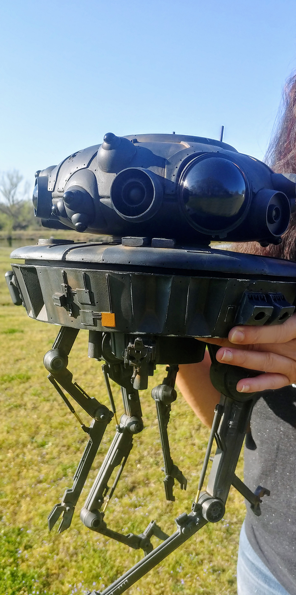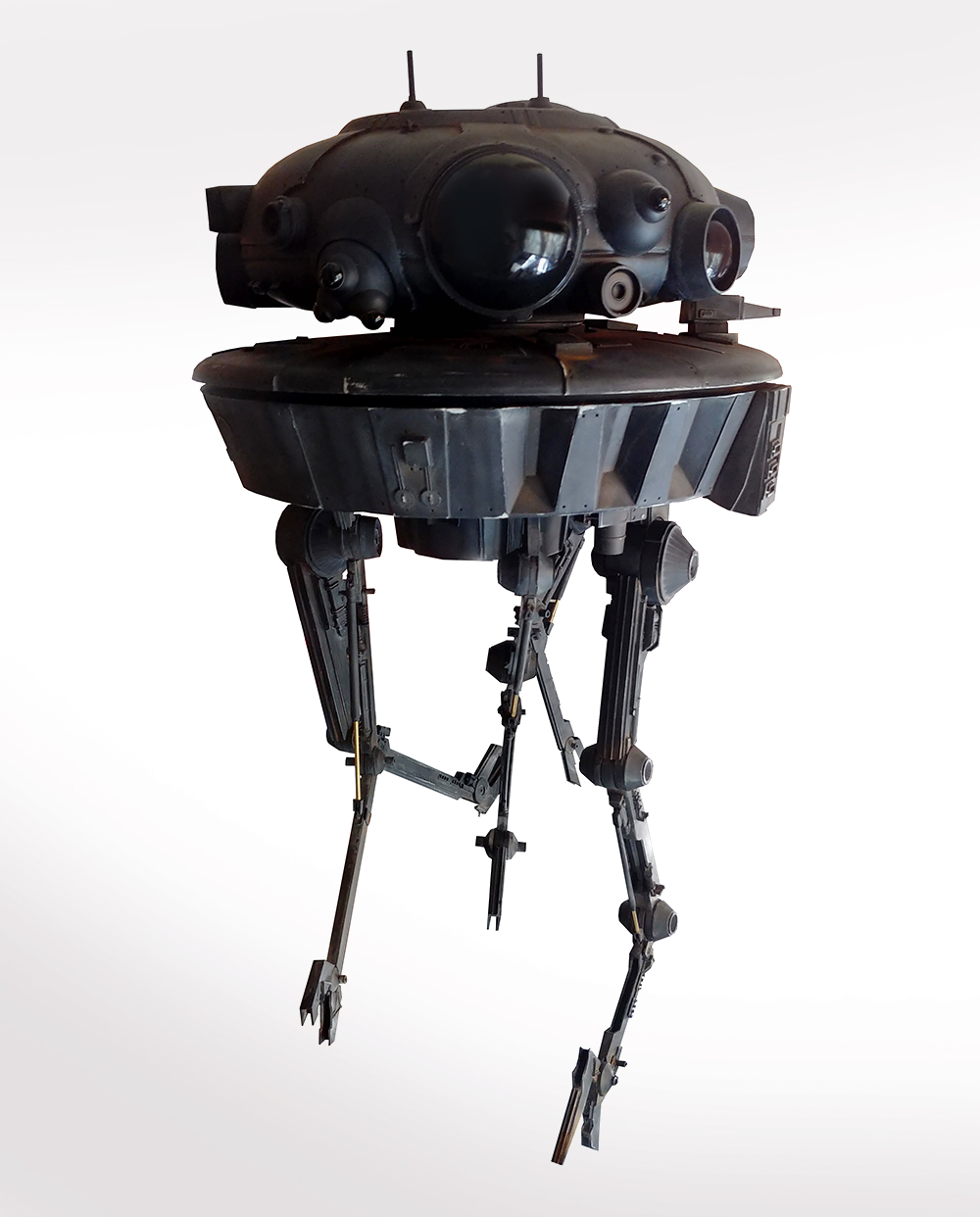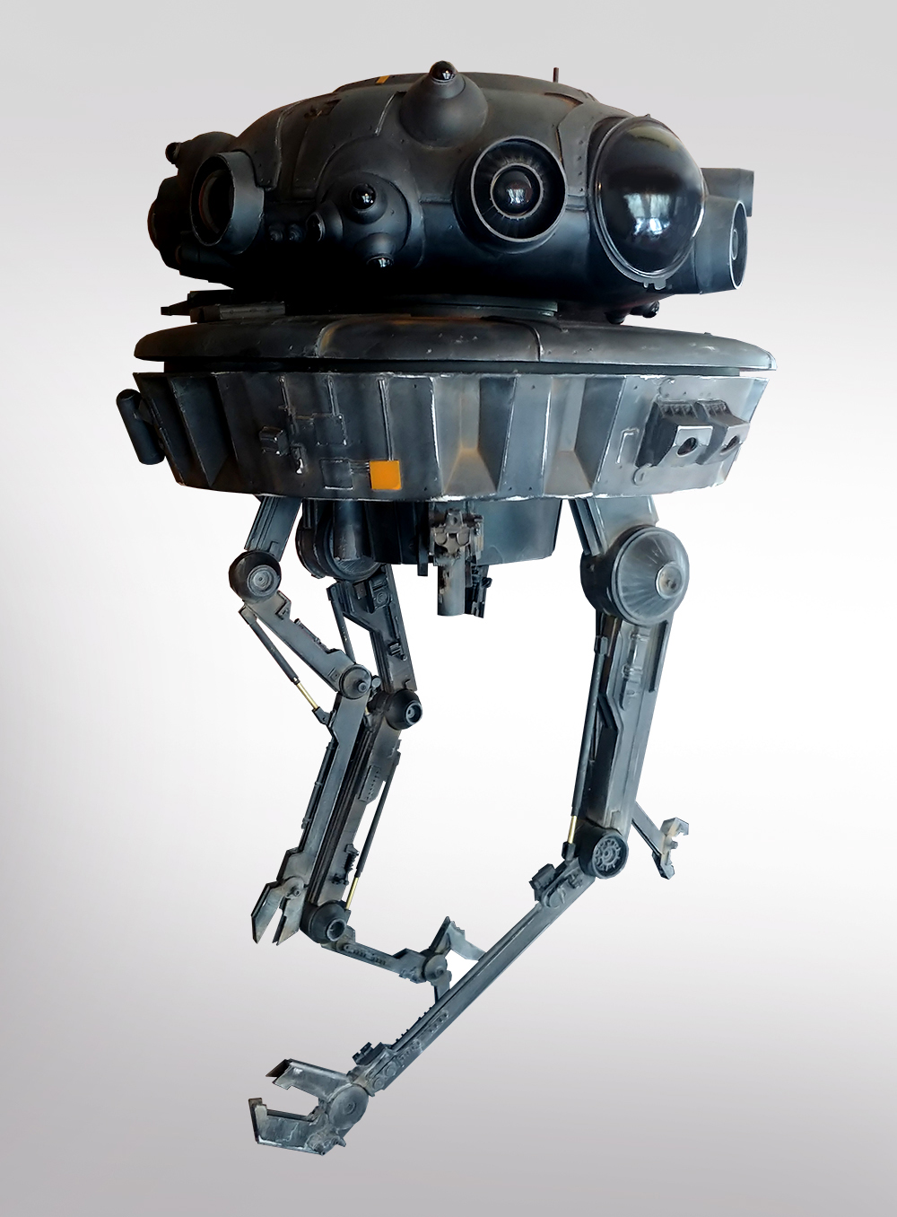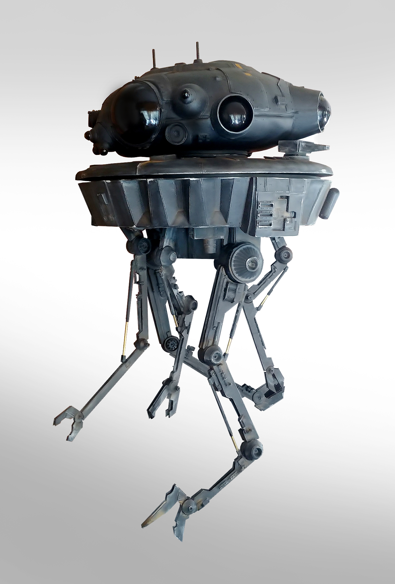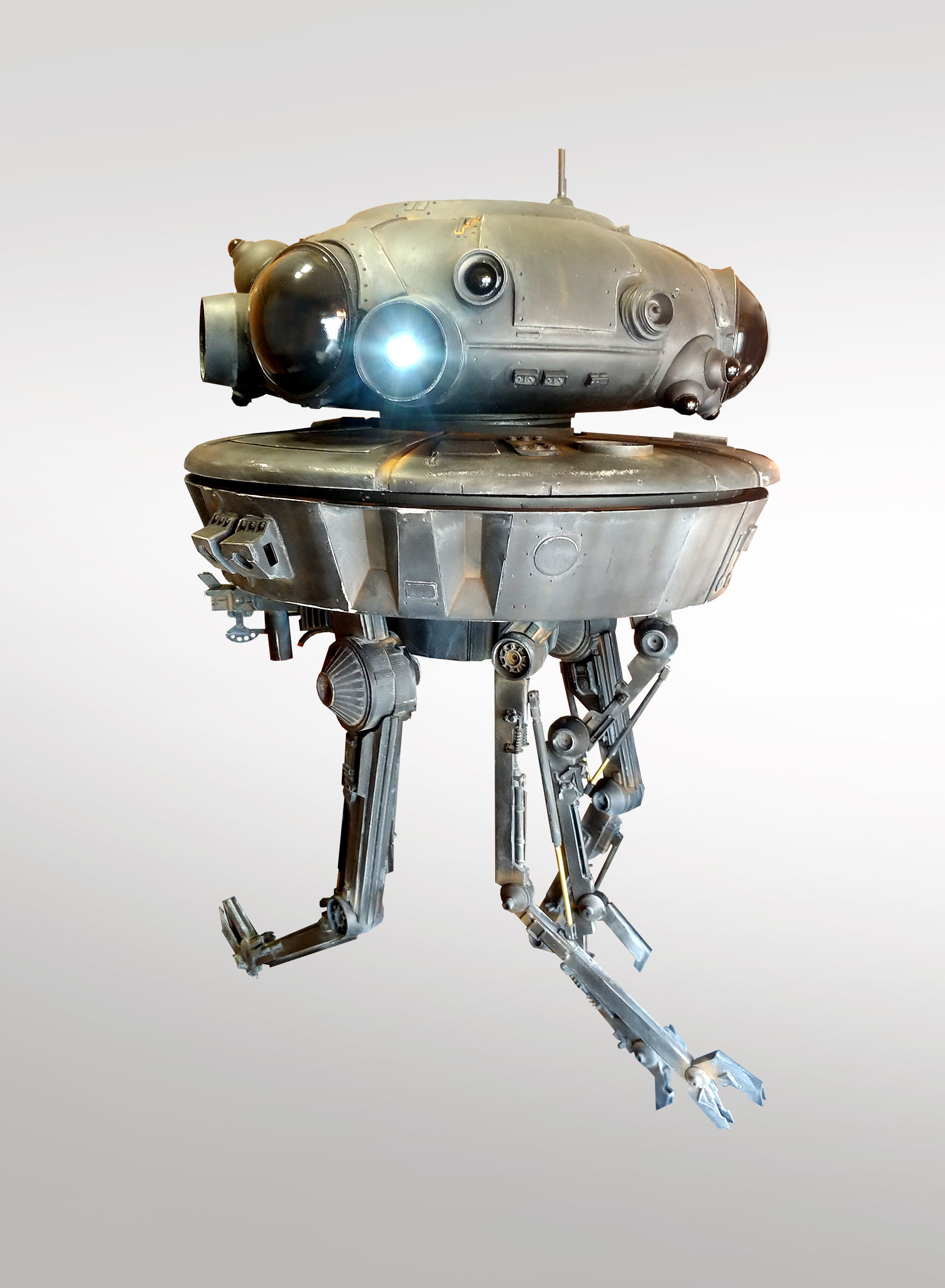 I’m offering for sale the studio scale probe droid that I built from a resin kit. I have replaced many of the resin parts with the real kit parts, and I have also replaced all the eyes with plastic half spheres so they would be more reflective.