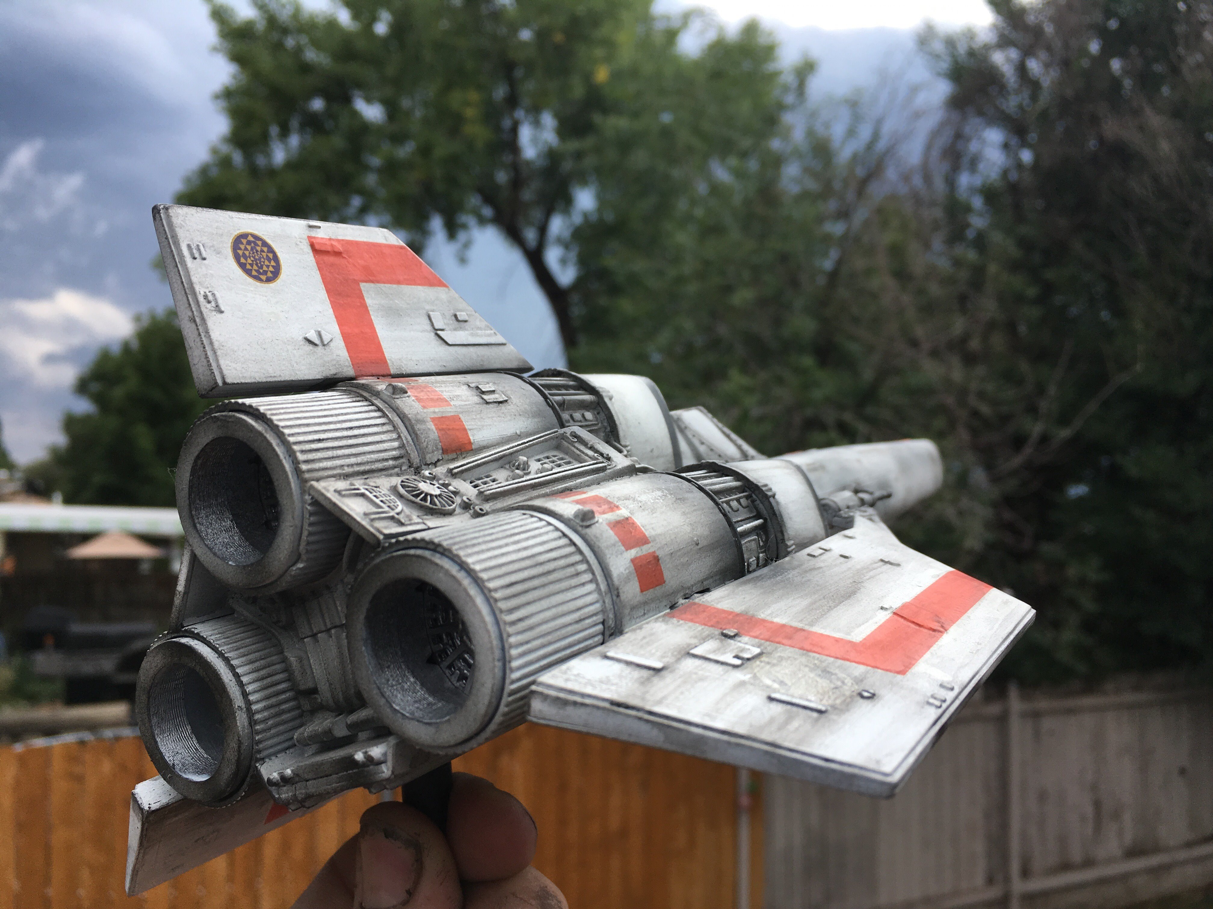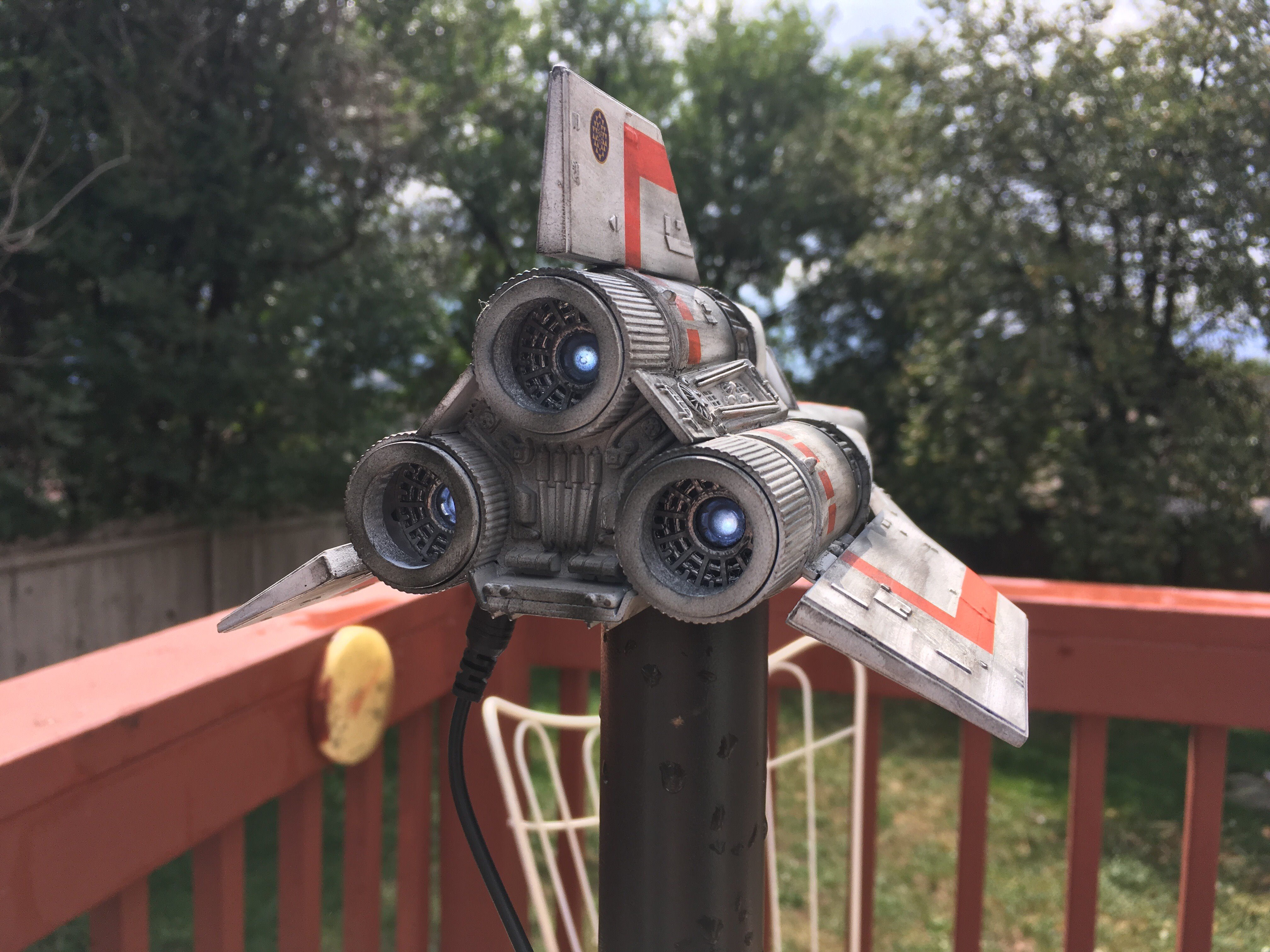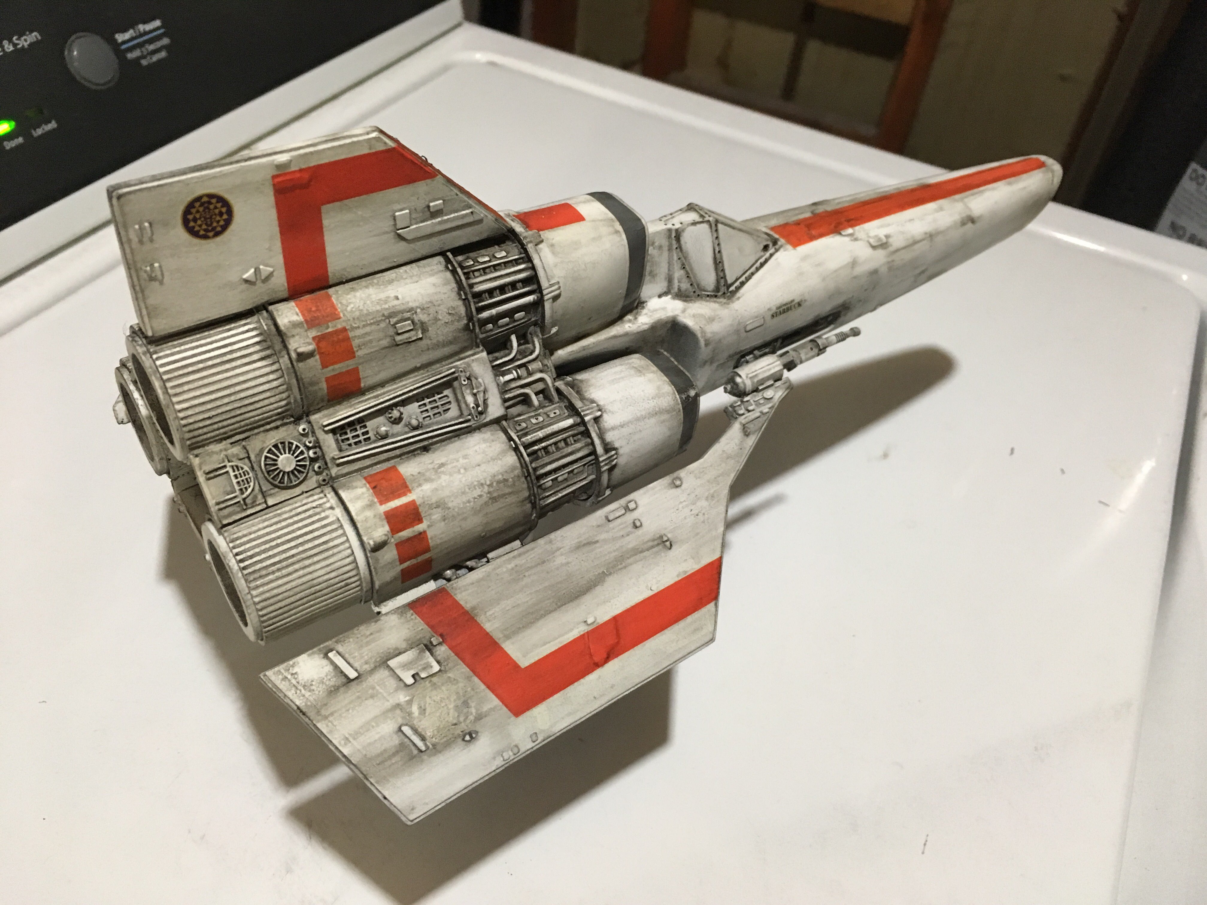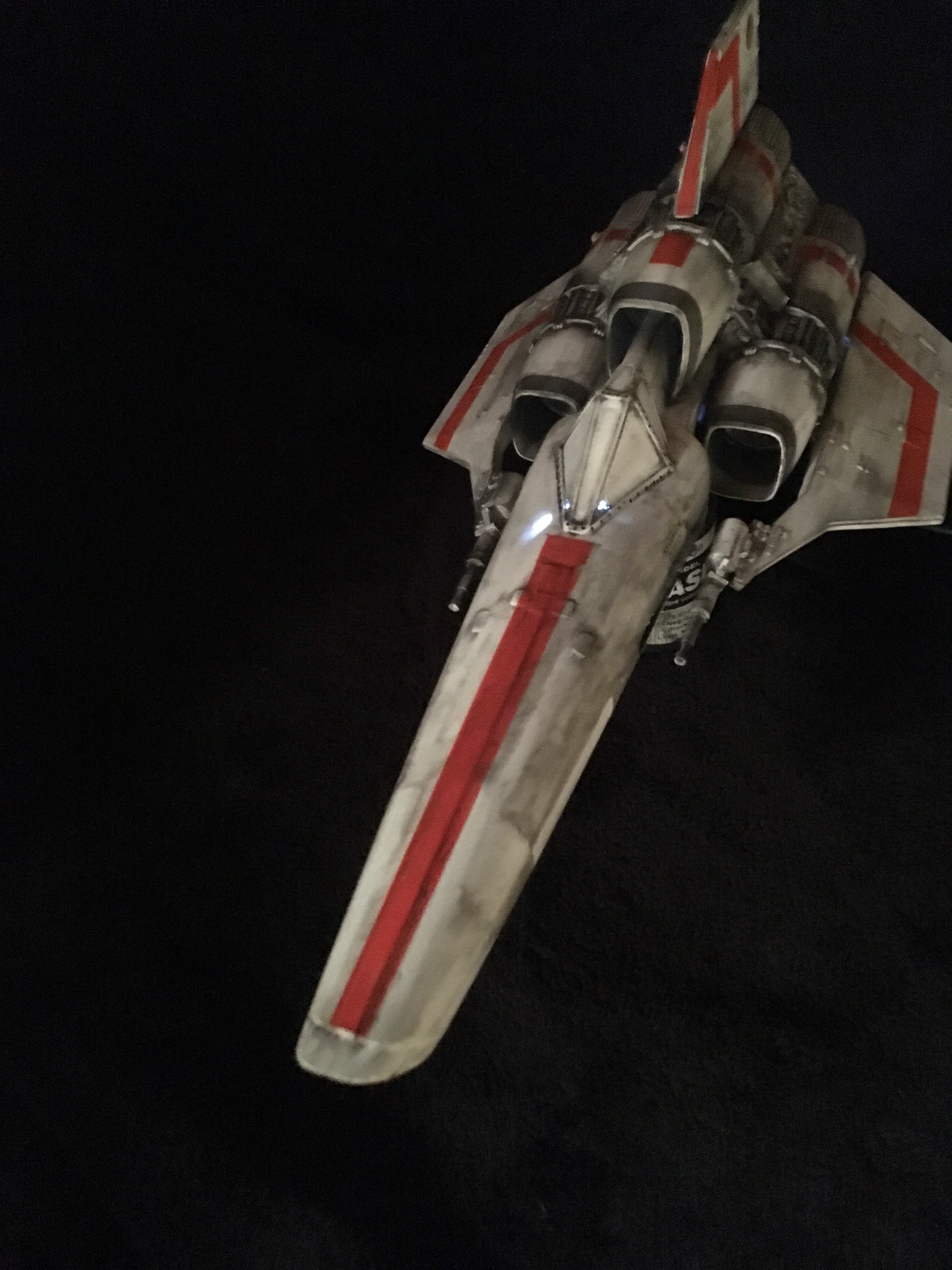 Here is another finished another Colonial Viper. This time I made this one from the Mine Scene when Starbuck and Apollo go into the minefield to clear a path for the Galactica and the Rag Tag Fleet in the original three hour premiere. I have two cracks in the canopy where it was burning through Blast Sheild of Starbuck’s canopy that protected Starbuck from the Nova Madagon. The Viper’s Blasters fire with the countdown on the computer, just like in the movie, and of course the engines pulsate and also have sound effects . I accept PayPal only. (Modeler Magic Always Recommends Using PAYPAL for BOTH Purchaser and Seller Protection). Shipping is $29.95 USD for USA and $49.95 USD for World-Wide.