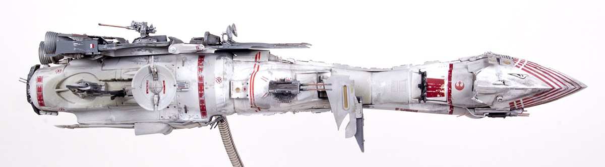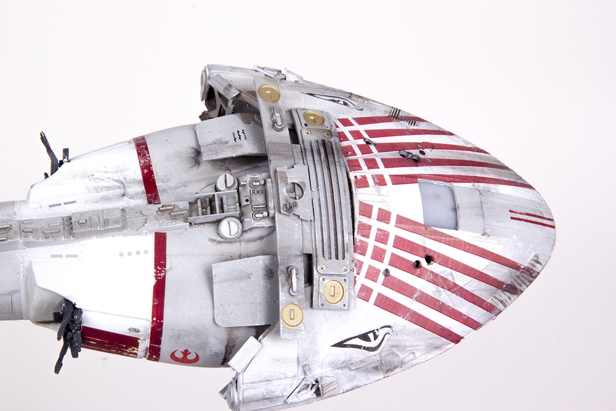 I based the variations on the donor libraries, a la Flak, Vosper, armor, etc. The longer Slave I skirts were used to give it a more aggressive look. Consider it a battering ram/ice breaker kind of modification. It IS up for sale, open to offers keeping in mind there is at least $300+ in donor kit parts used.