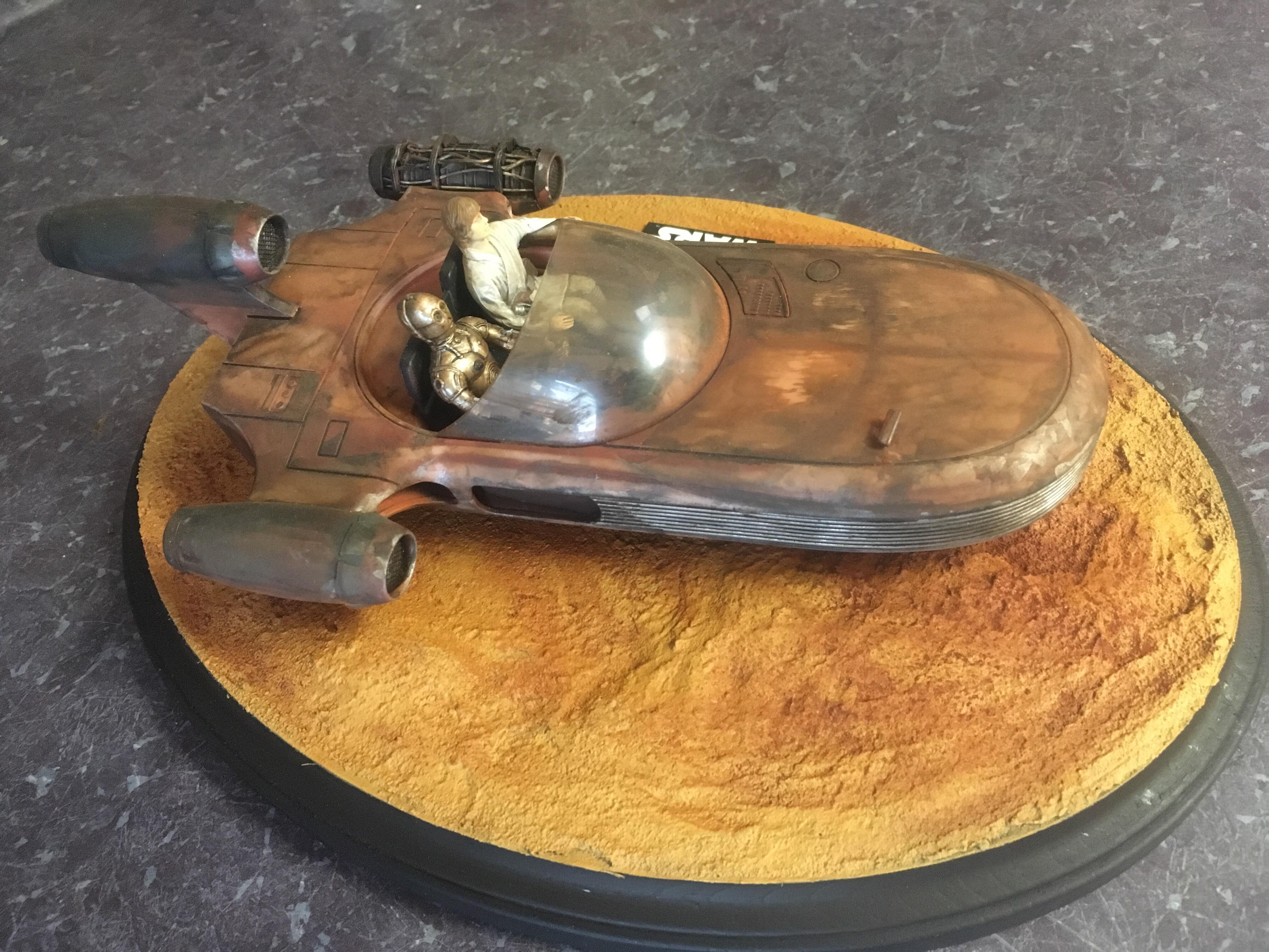 Enjoy this fantastic X-34 Landspeeder in your own collection as Luke and C3PO are searching for R2D2 in the massive and empty desert of Tatooine!