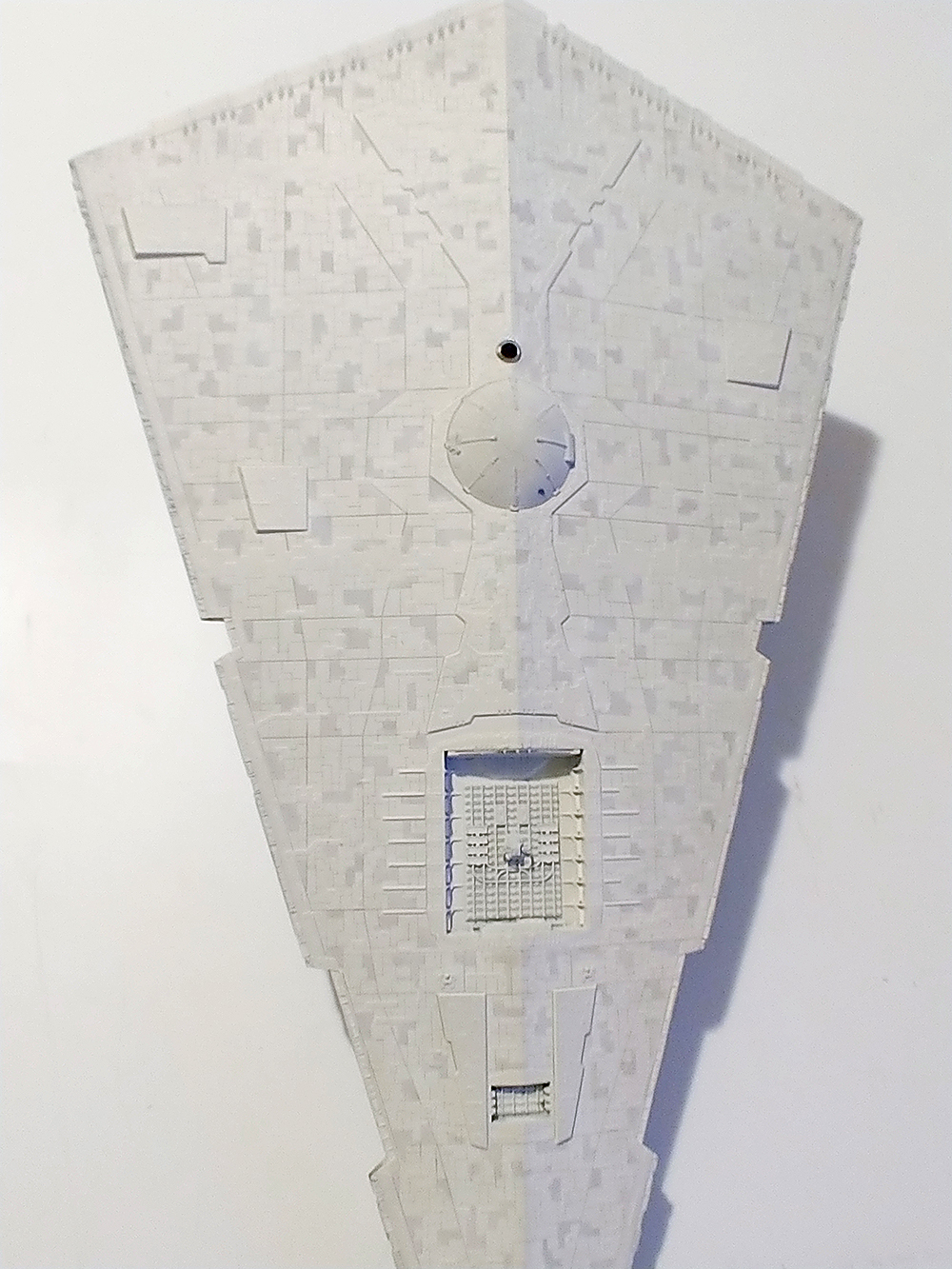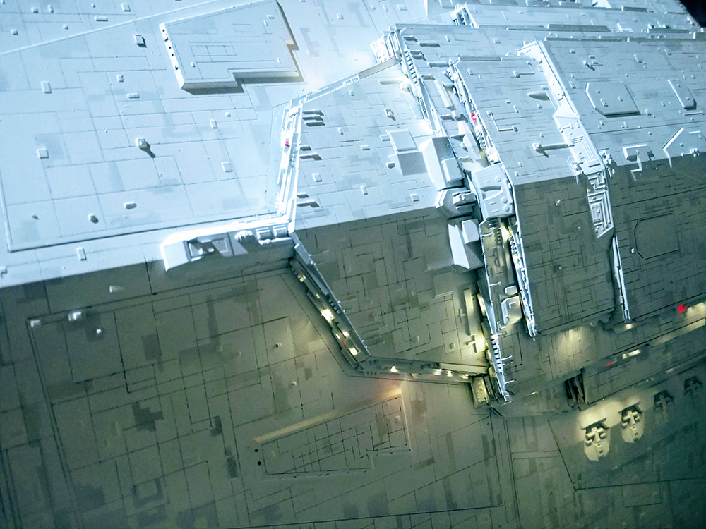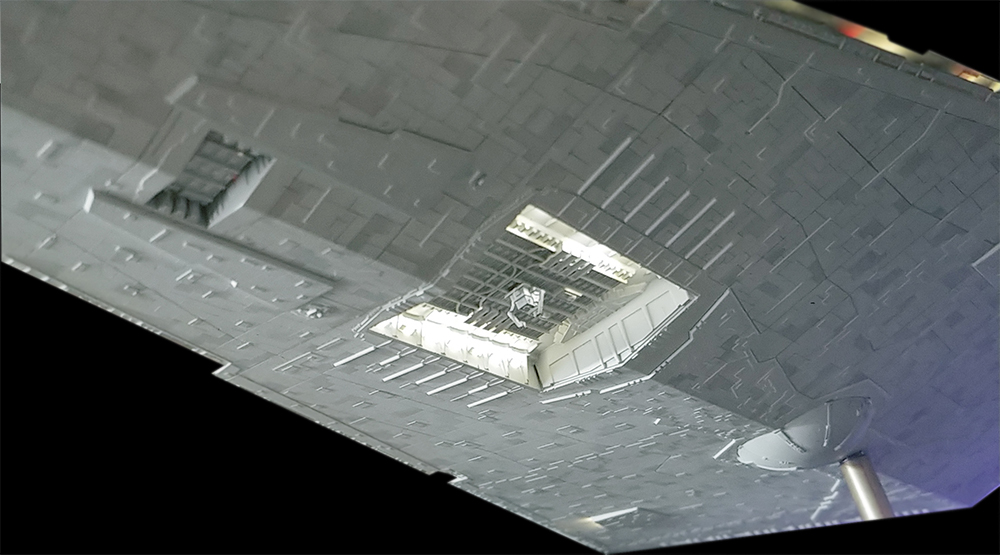 I have hand scribed every panel on the ship to bring out the detail, which I believe represents a more realistic look and mimics the model used in the movies rather than by using a “wash” to bring out the scribe lines.