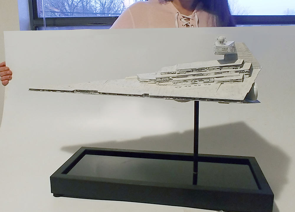 BELOW: DANAMAGIC Artist Dana Diana with the ZVEZDA Imperial Star Destroyer