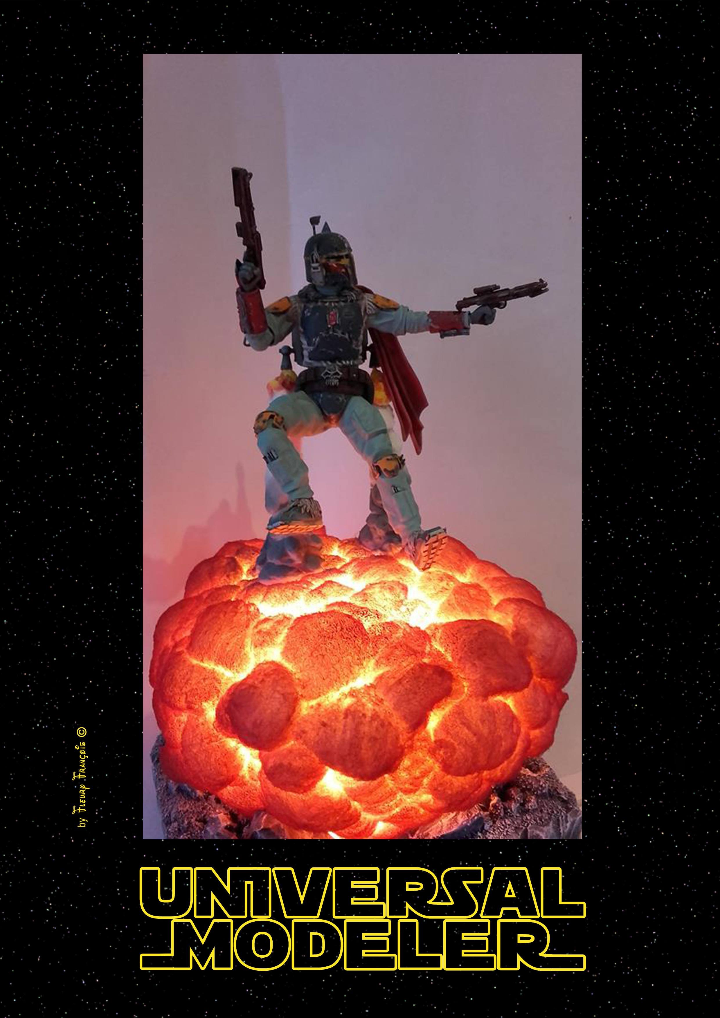 François Fleury returns with this magnificent 1/12 BanDai Boba Fett with a completely scratch built base. I don’t know about you, but this is amazing to me! I love this piece! Great job François!