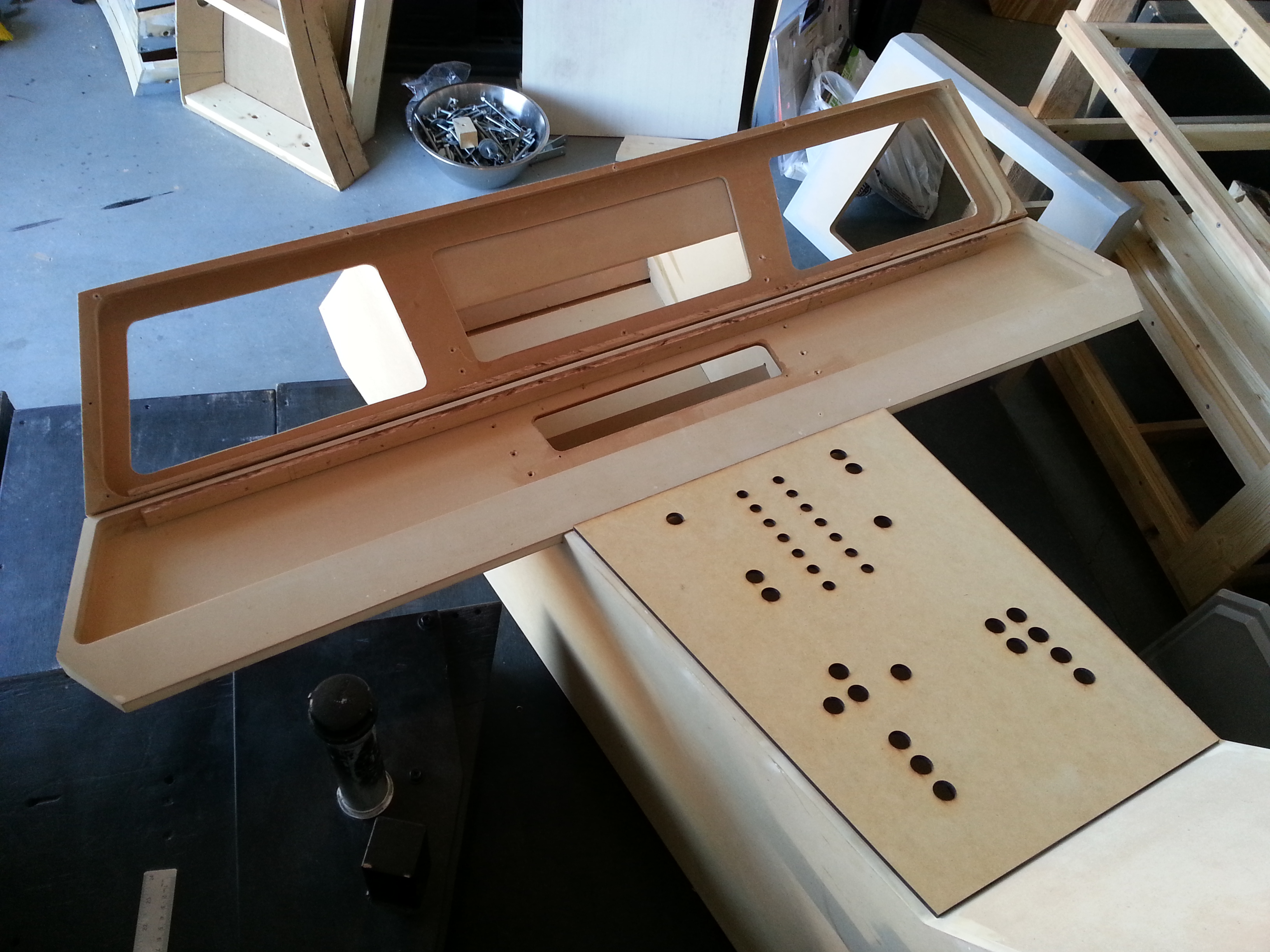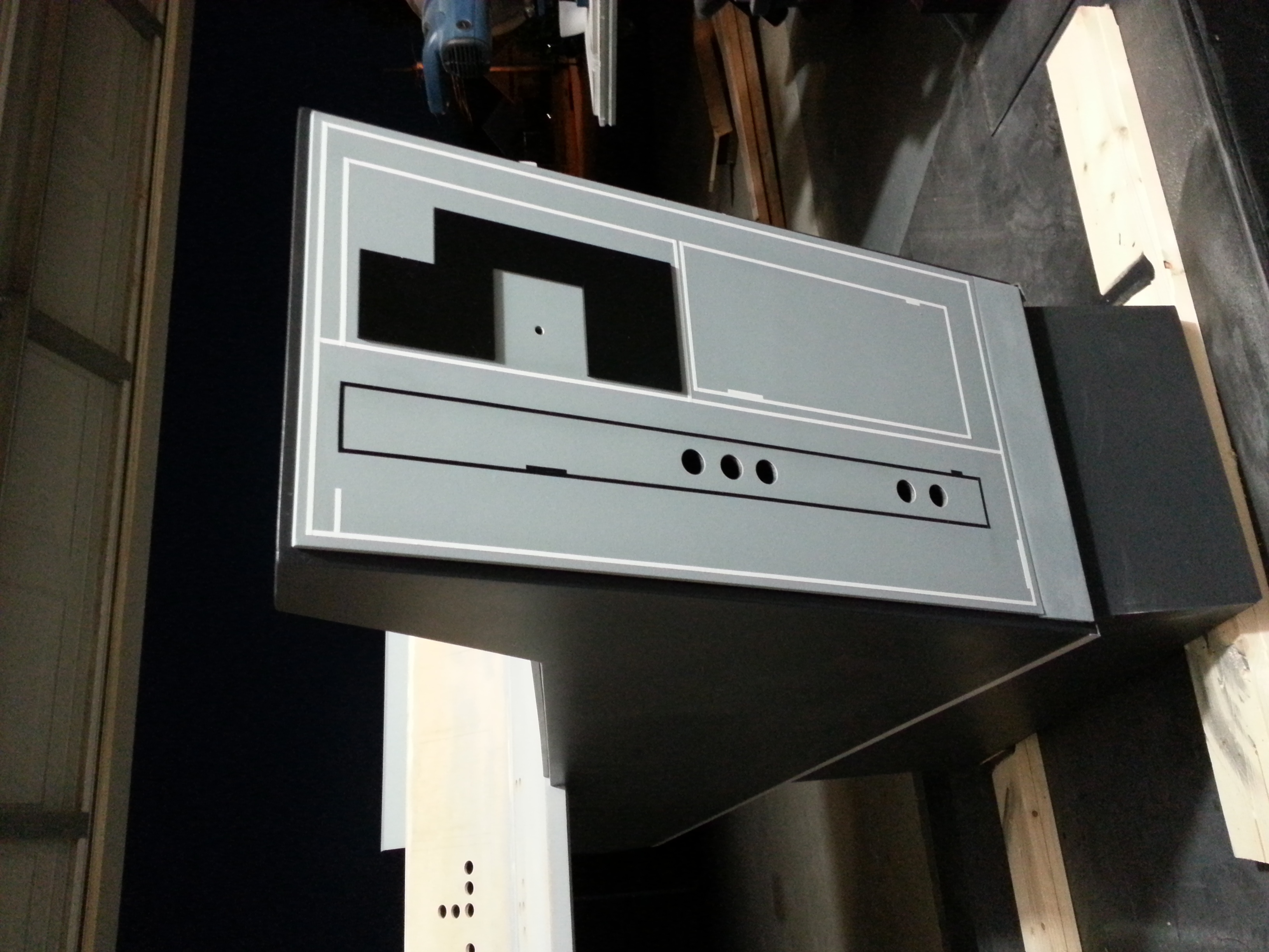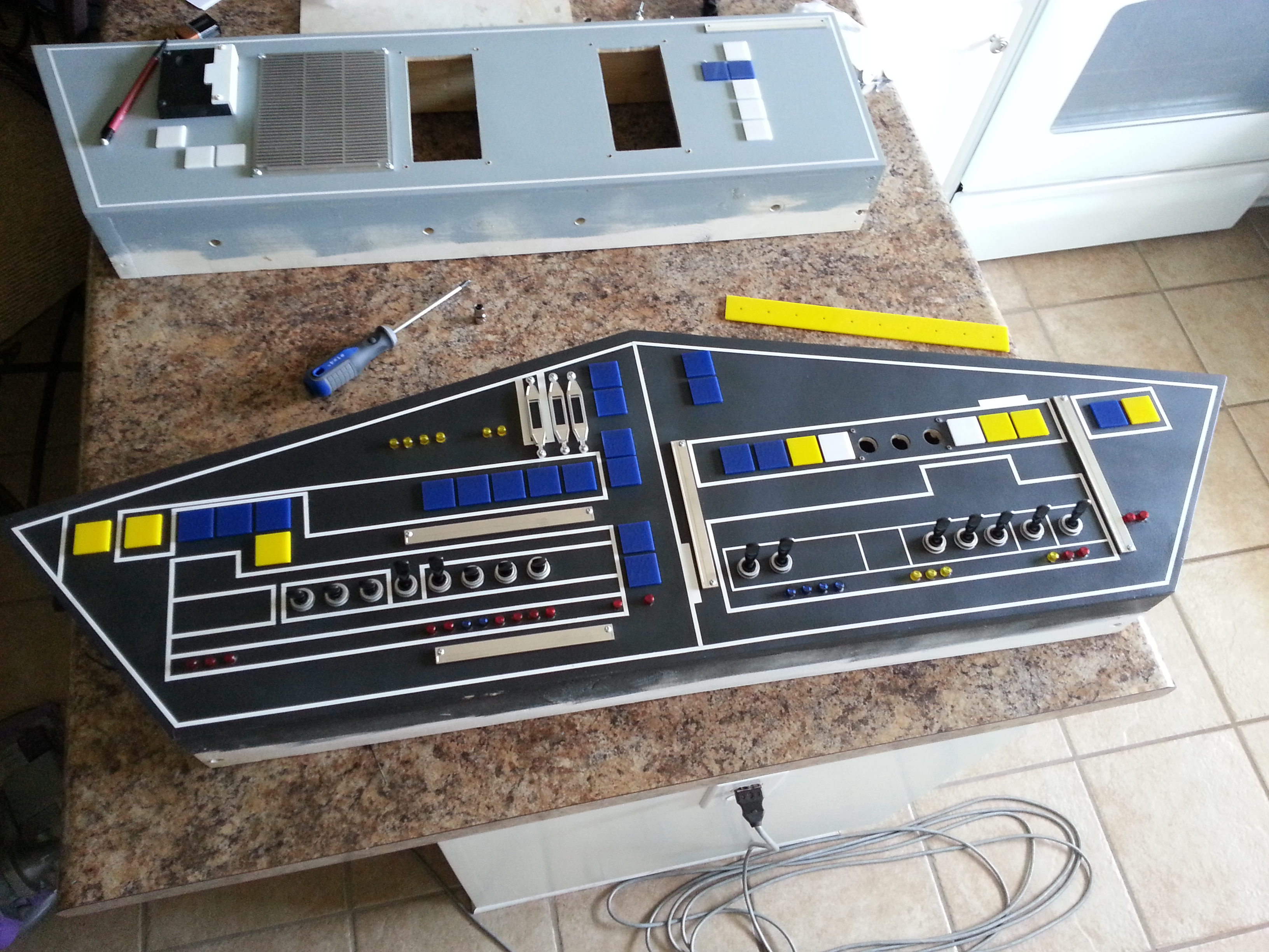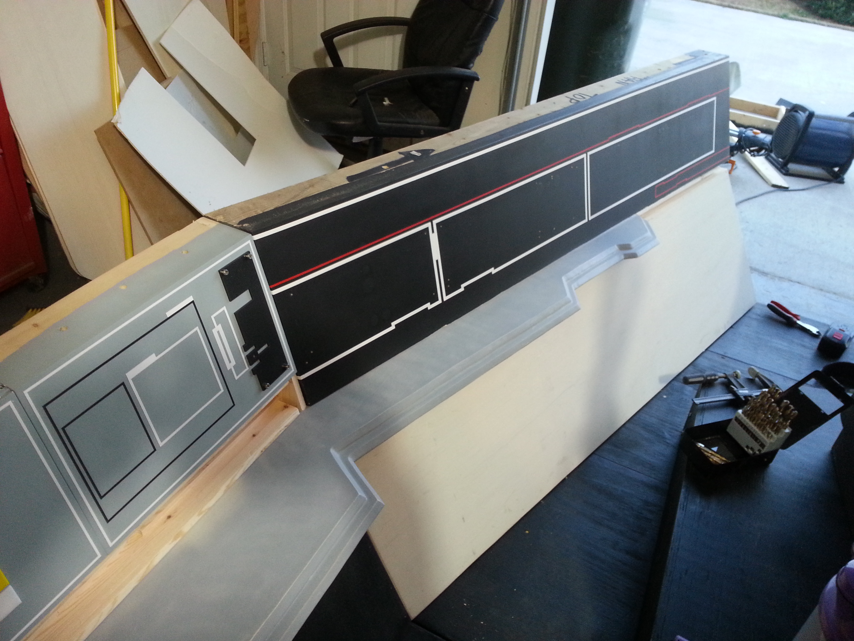 After our last big show, the team sat down and, after seeing how well the backlit tiles looked, decided to go ahead and make a screen accurate reproduction or the ESB cockpit. Most of us were not happy with a hybrid ANH/ESB cockpit. We also felt it was time to replace the aging center console with a CNC version. So we opened the books, scanned the internet and started looking for as many reference pics as we could find. Another HUGE change was the decision to go ahead and add the 12″ I originally removed from the bottom of the cockpit – just so it would fit in the garage! We’ll make it fit!