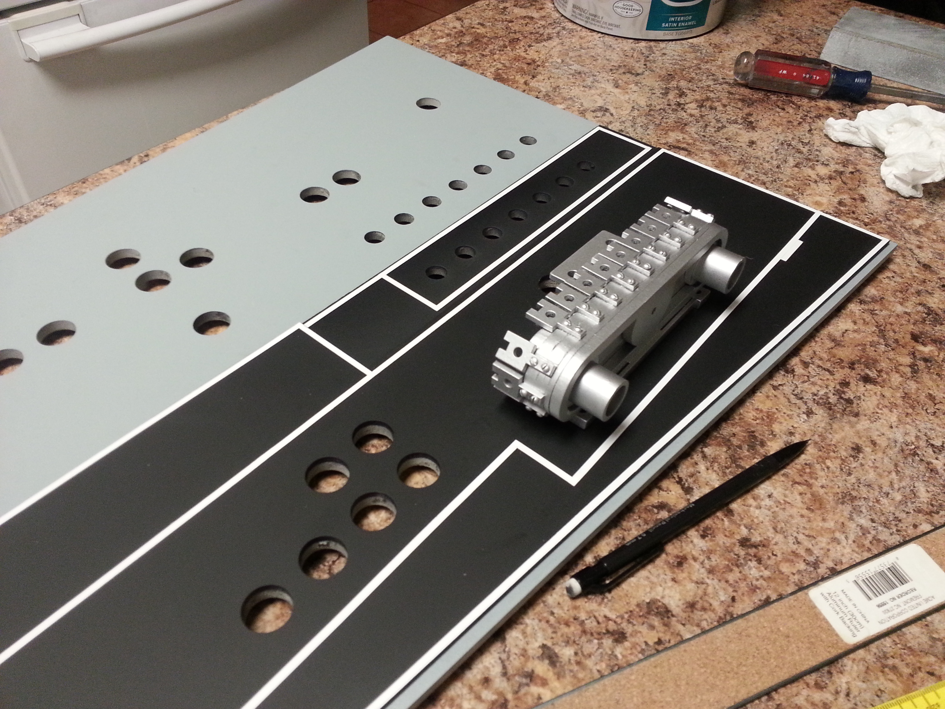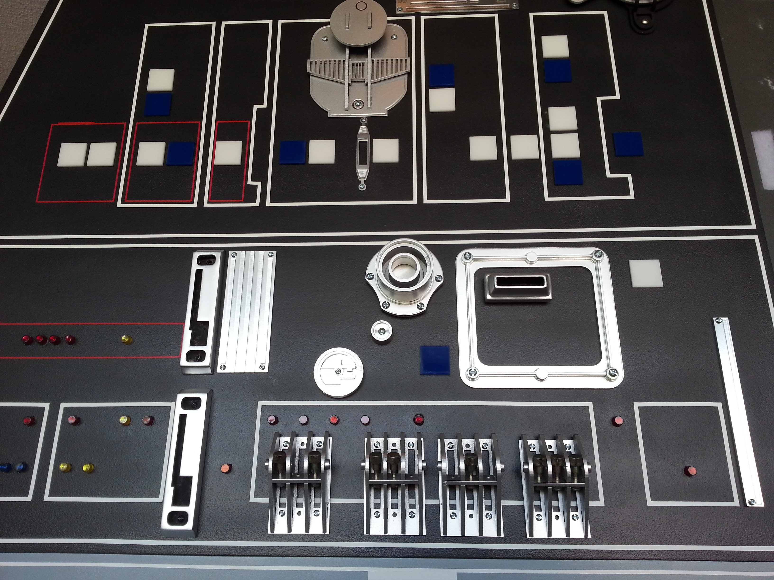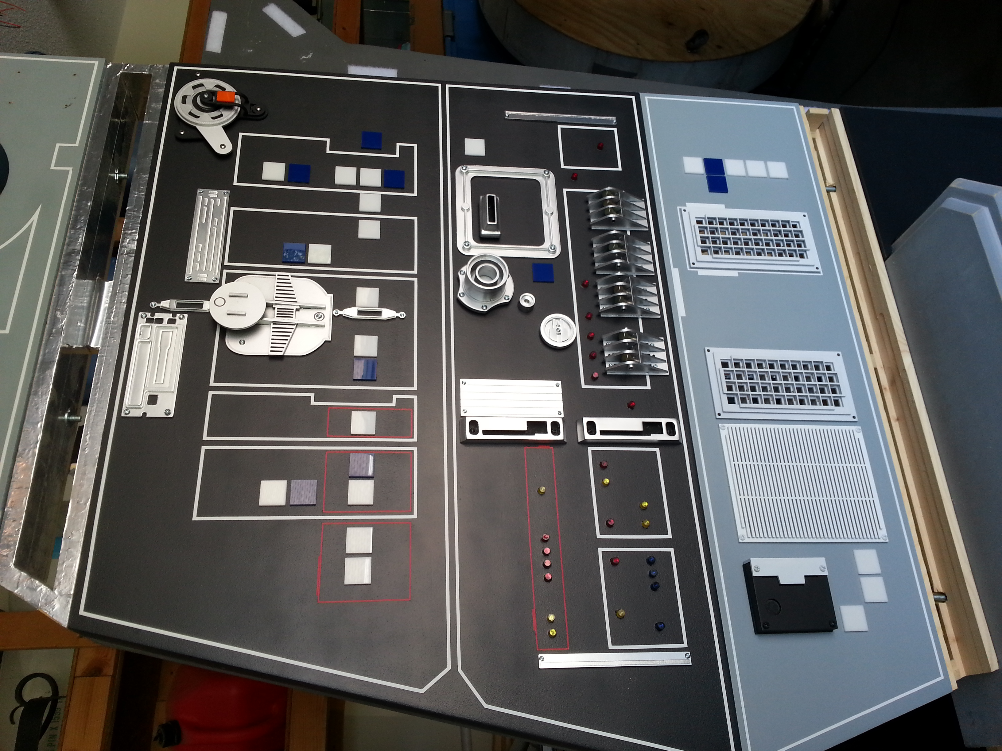 The “refit” required us to, in several cases, cut all new panels and create, from scratch, all the little details (greeblies) found on each of the panels. We’ve been VERY fortunate to have found a few of the parts the original designers used, but we plowed ahead and if we couldn’t find / identify it – build it! So, the laser cutter was put to the test and the acrylic and filler industries are having a great year!