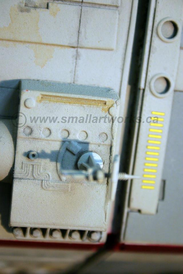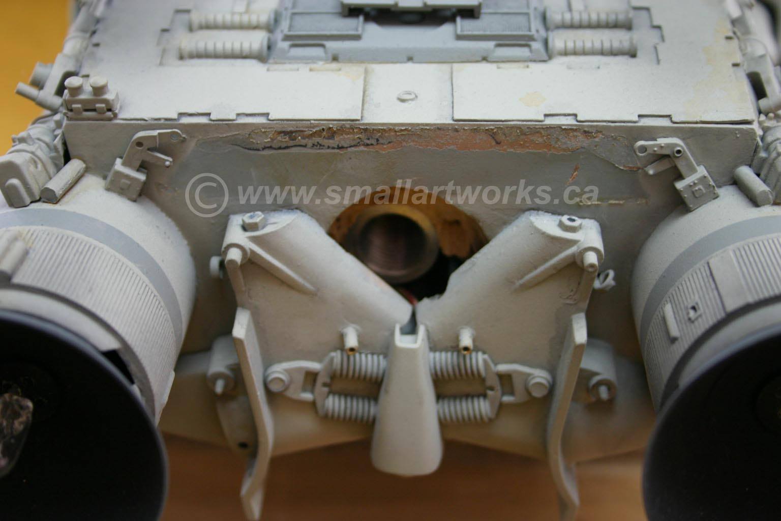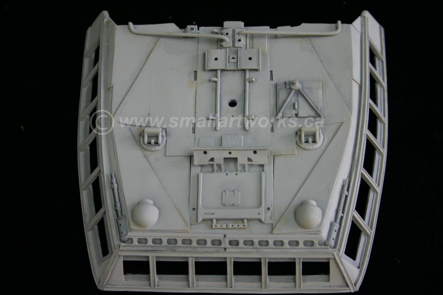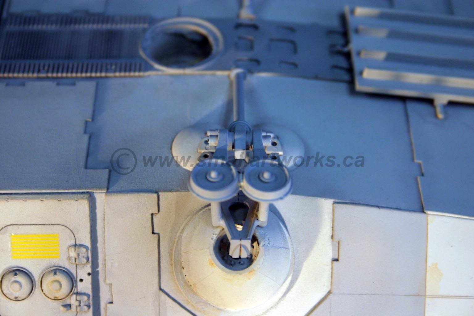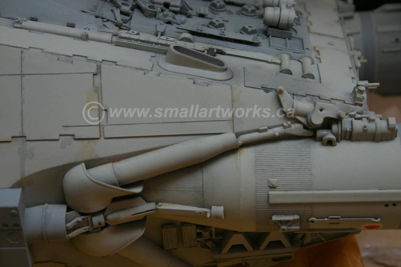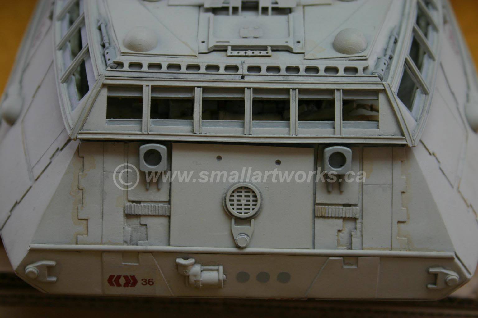 I shot these pictures of the original shuttle in 2008. It was carved from urethane foam clad in sheet plastic and detailed with hundreds of model kit parts. The model was restored a few years earlier by Ed Miarecki who had to re-dress it and repaint it after it had been used in Buck Rogers with a different paint scheme. Several parts on the model are not likely original as a result. However, these are by far the most extensive photos ever taken of the original model. Nobody else has shot it in this much detail at that time. Enjoy.