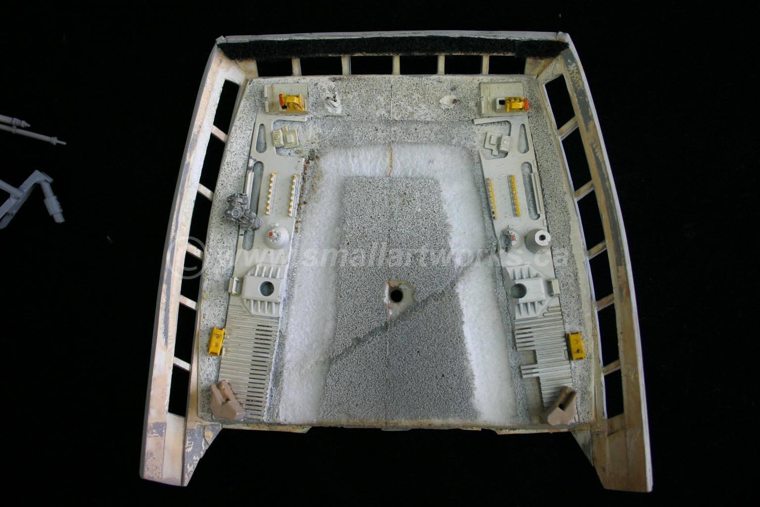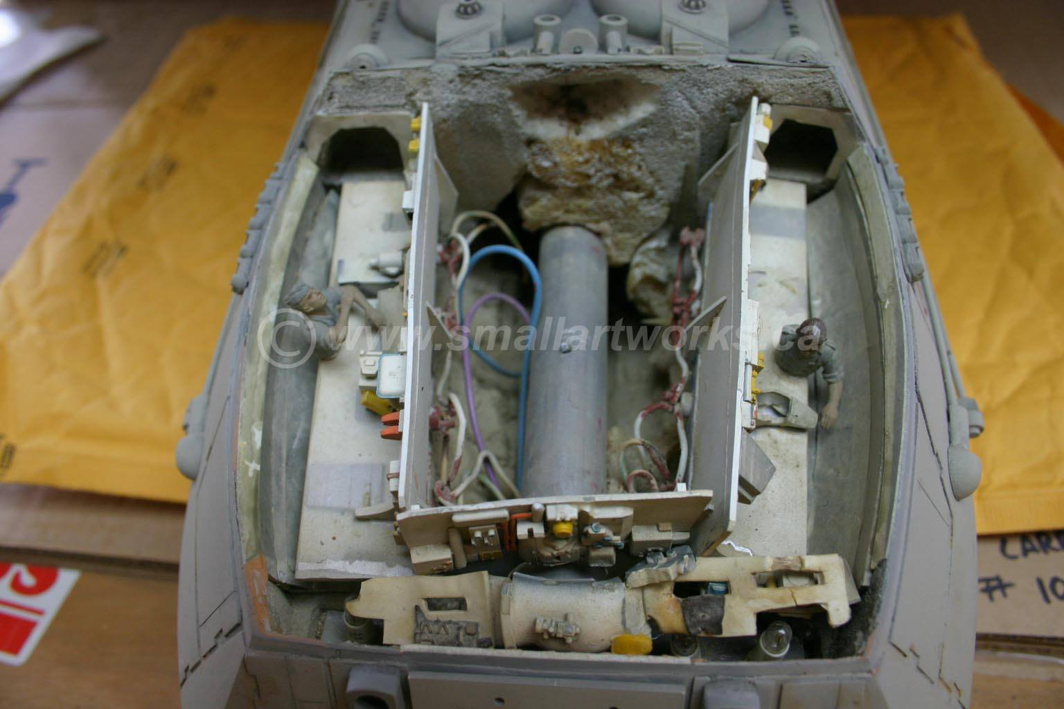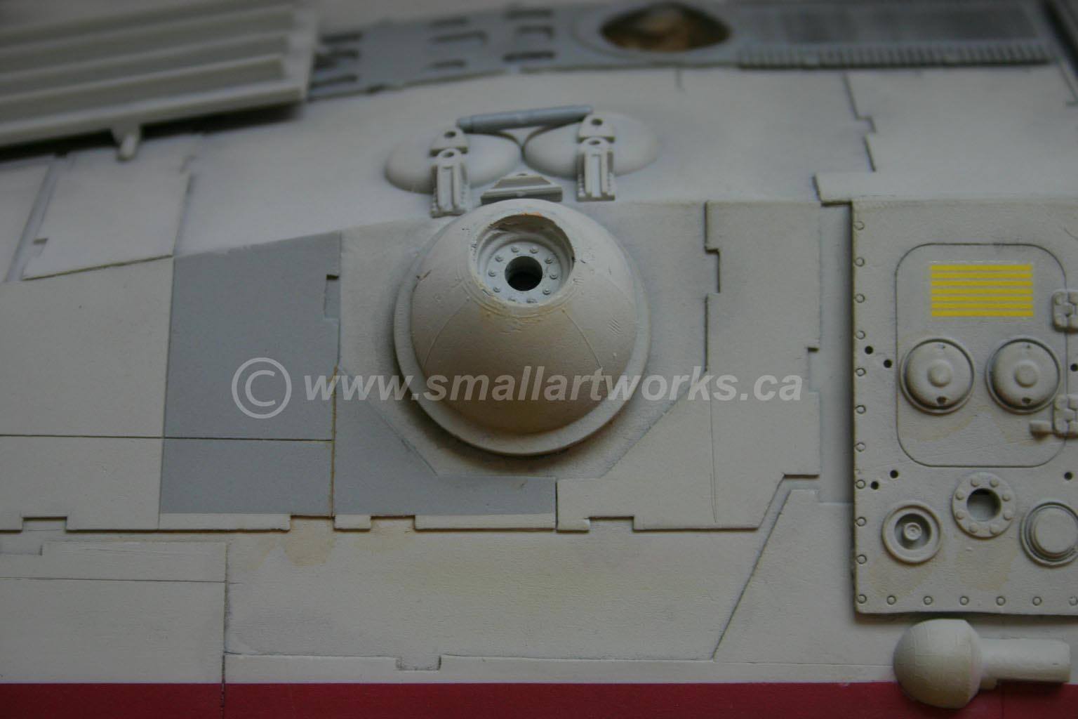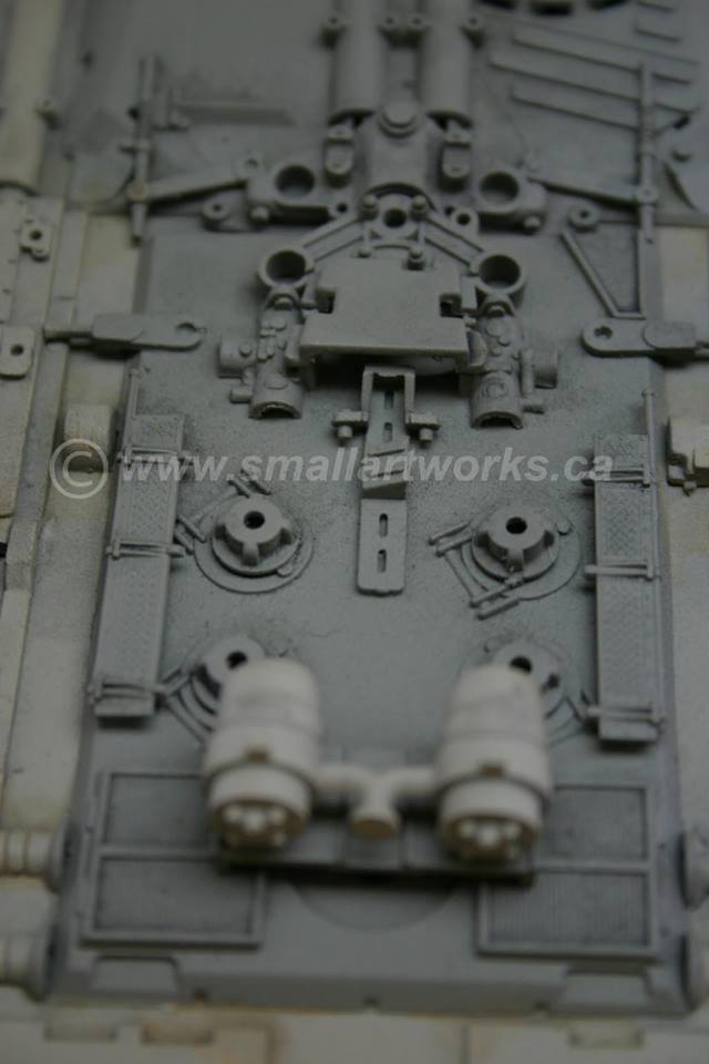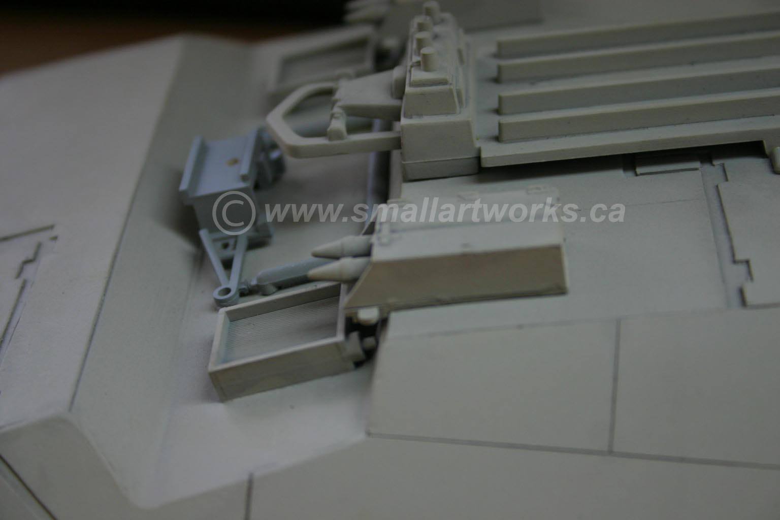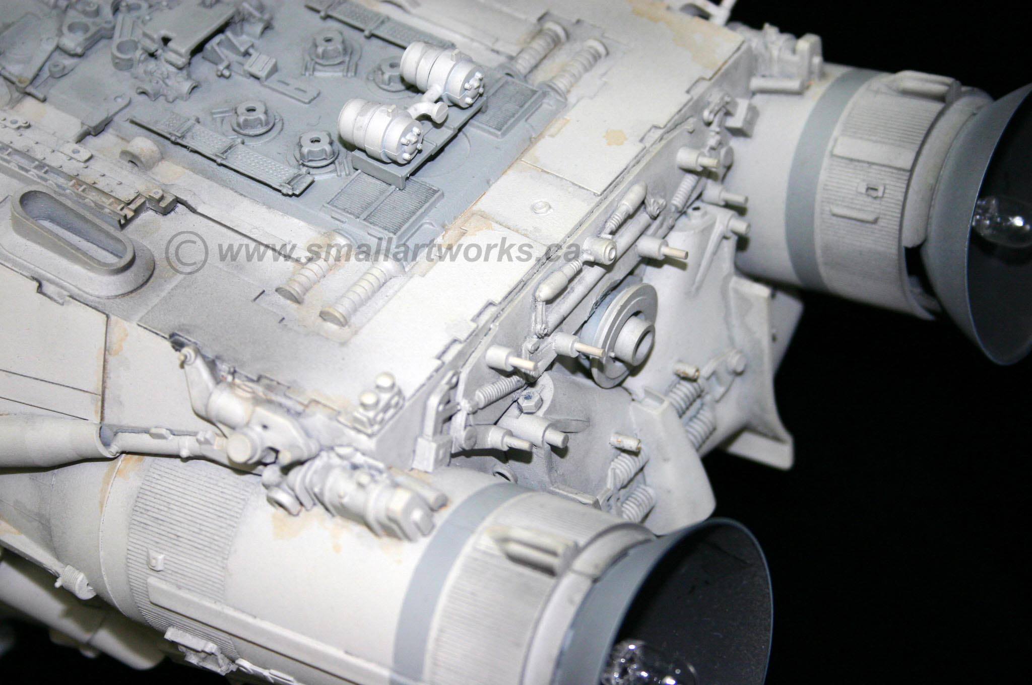 I shot these pictures of the original shuttle in 2008. It was carved from urethane foam clad in sheet plastic and detailed with hundreds of model kit parts. The model was restored a few years earlier by Ed Miarecki who had to re-dress it and repaint it after it had been used in Buck Rogers with a different paint scheme. Several parts on the model are not likely original as a result. However, these are by far the most extensive photos ever taken of the original model. Nobody else has shot it in this much detail at that time. Enjoy.