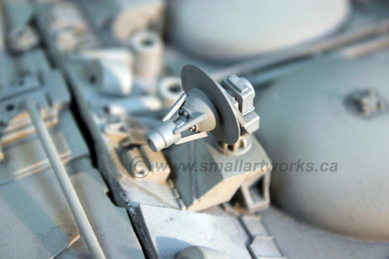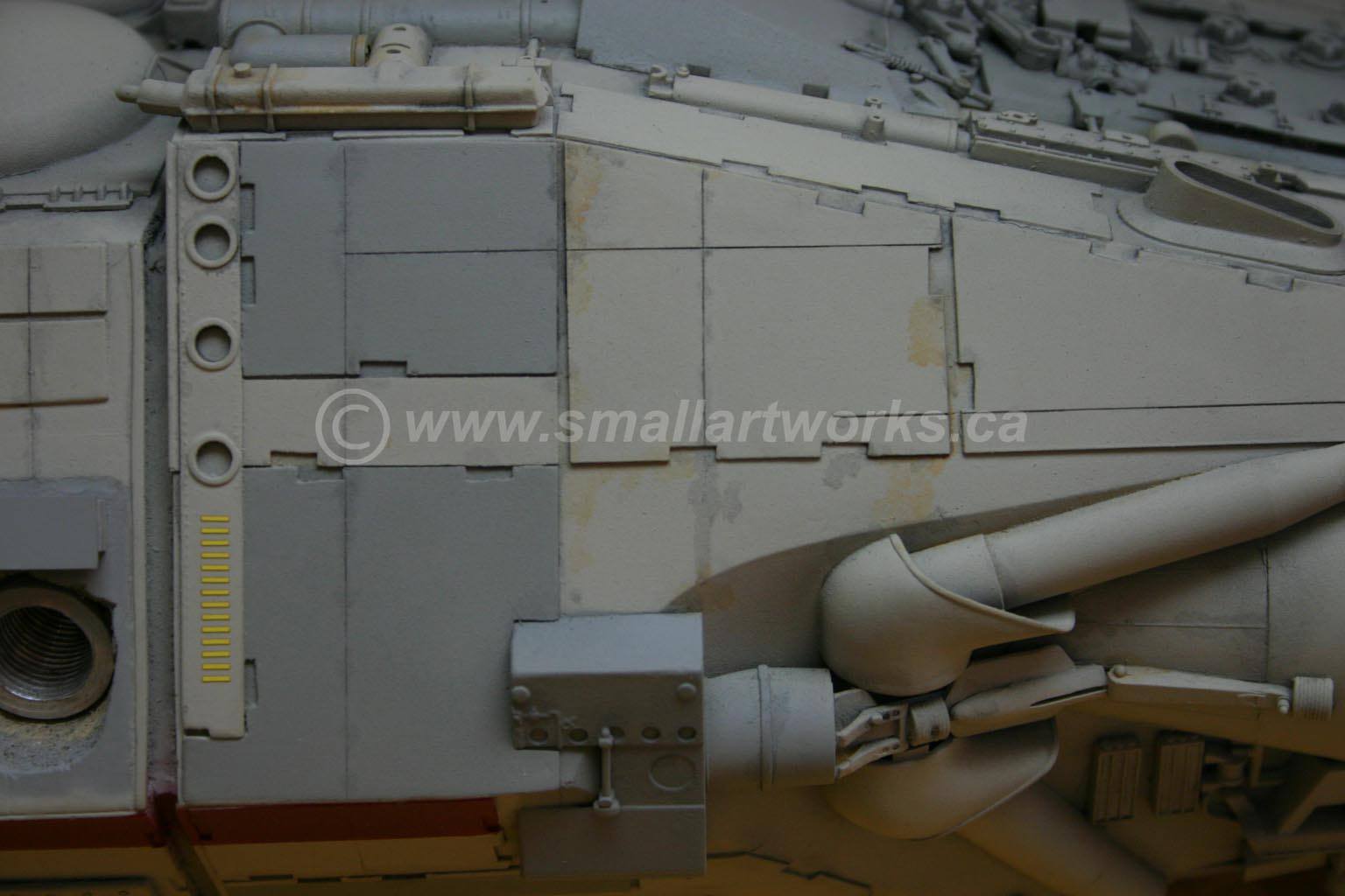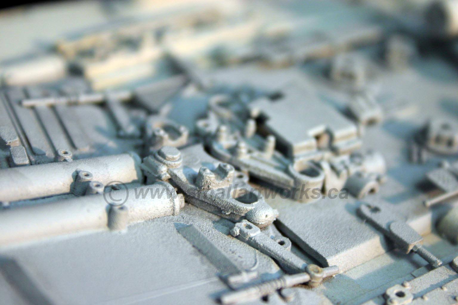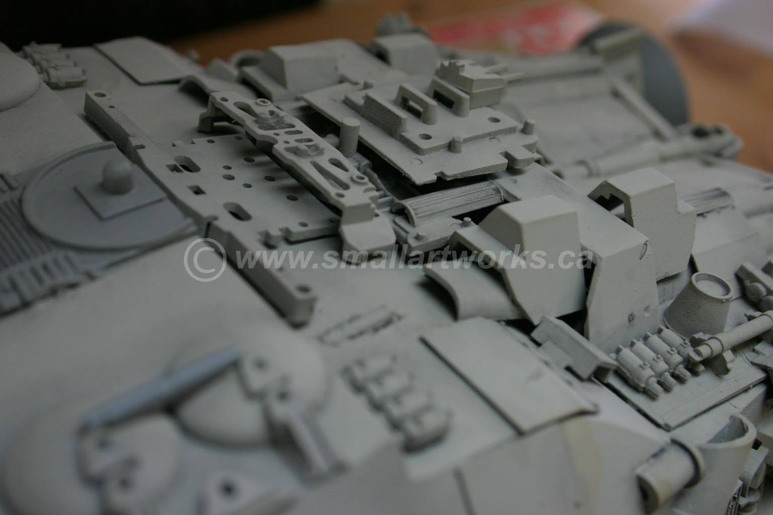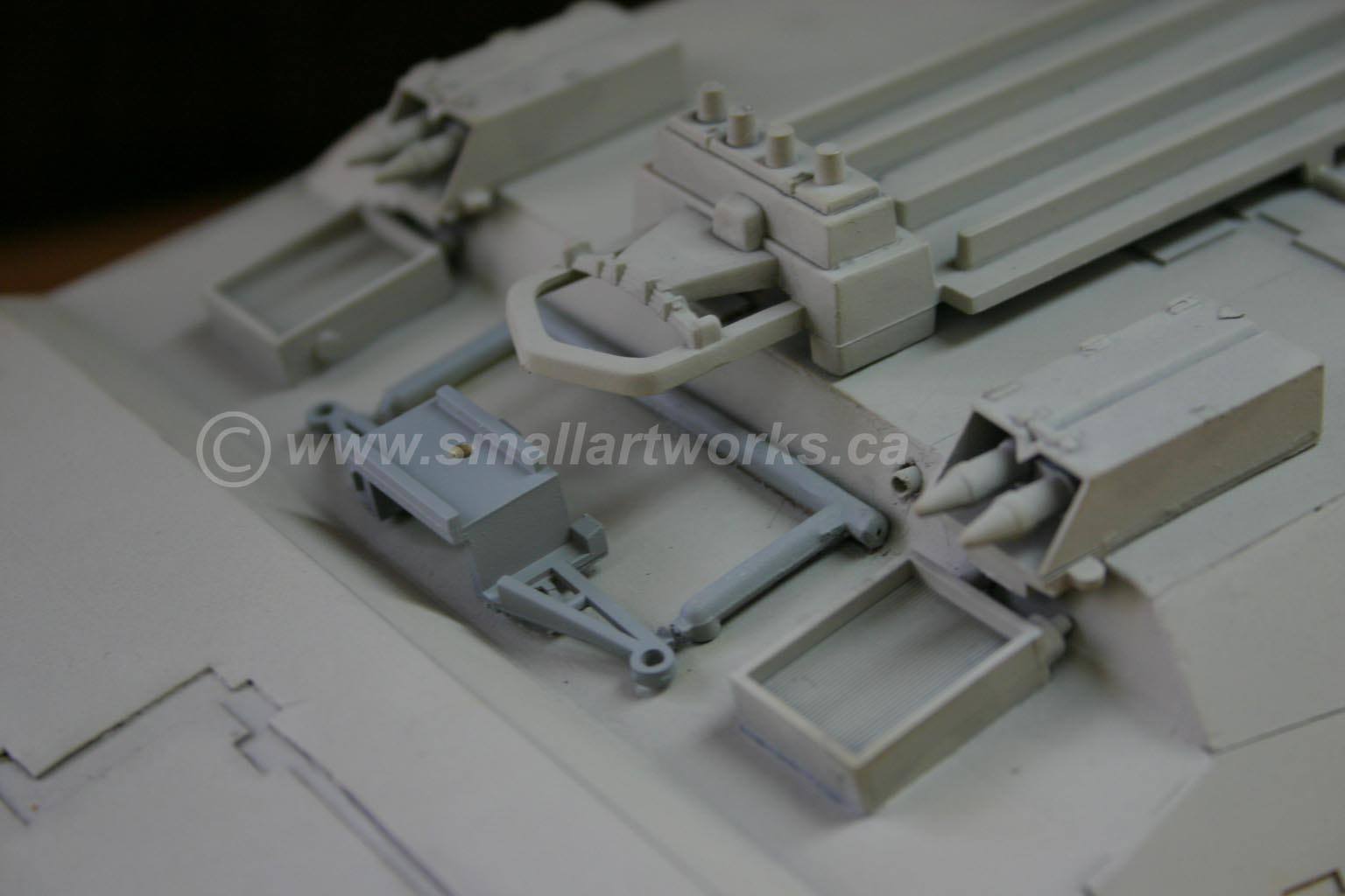 I shot these pictures of the original shuttle in 2008. It was carved from urethane foam clad in sheet plastic and detailed with hundreds of model kit parts. The model was restored a few years earlier by Ed Miarecki who had to re-dress it and repaint it after it had been used in Buck Rogers with a different paint scheme. Several parts on the model are not likely original as a result. However, these are by far the most extensive photos ever taken of the original model. Nobody else has shot it in this much detail at that time. Enjoy.