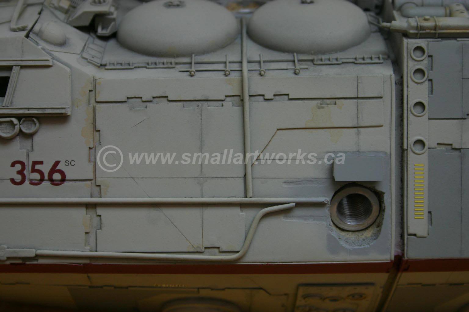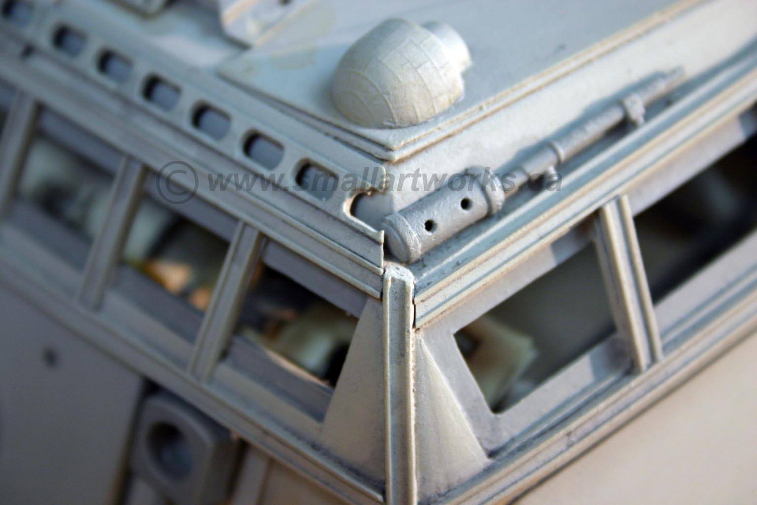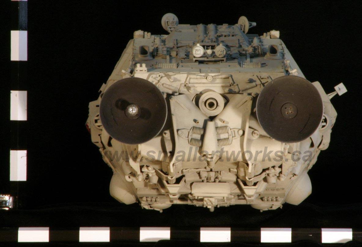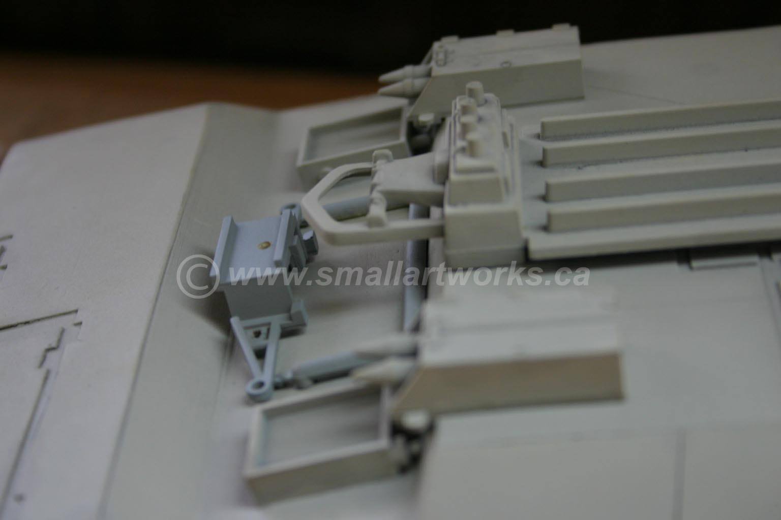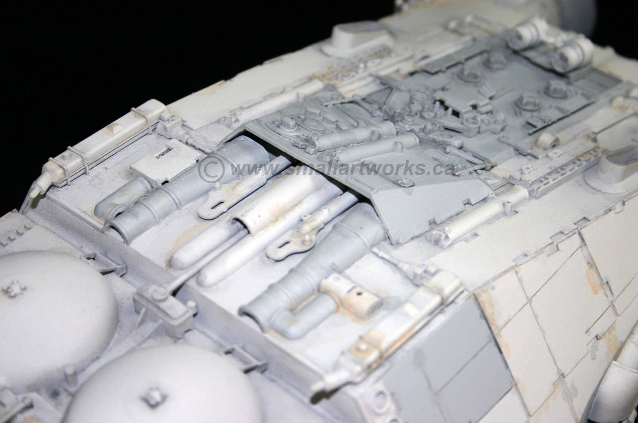I shot these pictures of the original shuttle in 2008. It was carved from urethane foam clad in sheet plastic and detailed with hundreds of model kit parts. The model was restored a few years earlier by Ed Miarecki who had to re-dress it and repaint it after it had been used in Buck Rogers with a different paint scheme. Several parts on the model are not likely original as a result. However, these are by far the most extensive photos ever taken of the original model. Nobody else has shot it in this much detail at that time. Enjoy.