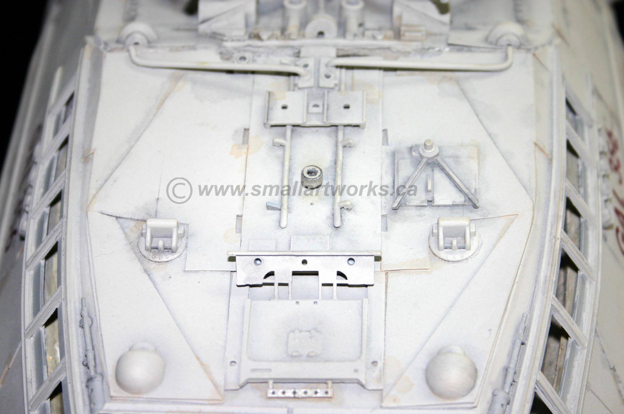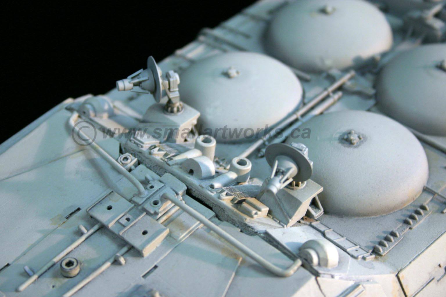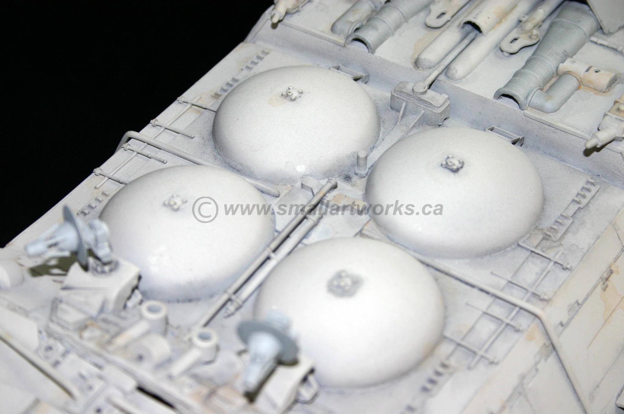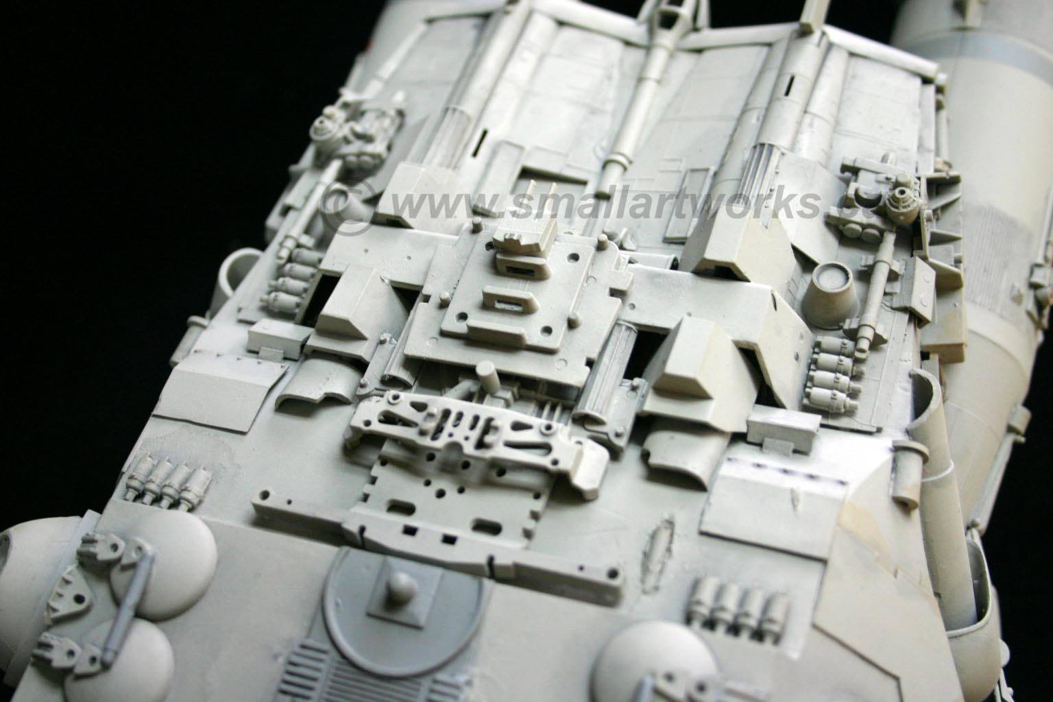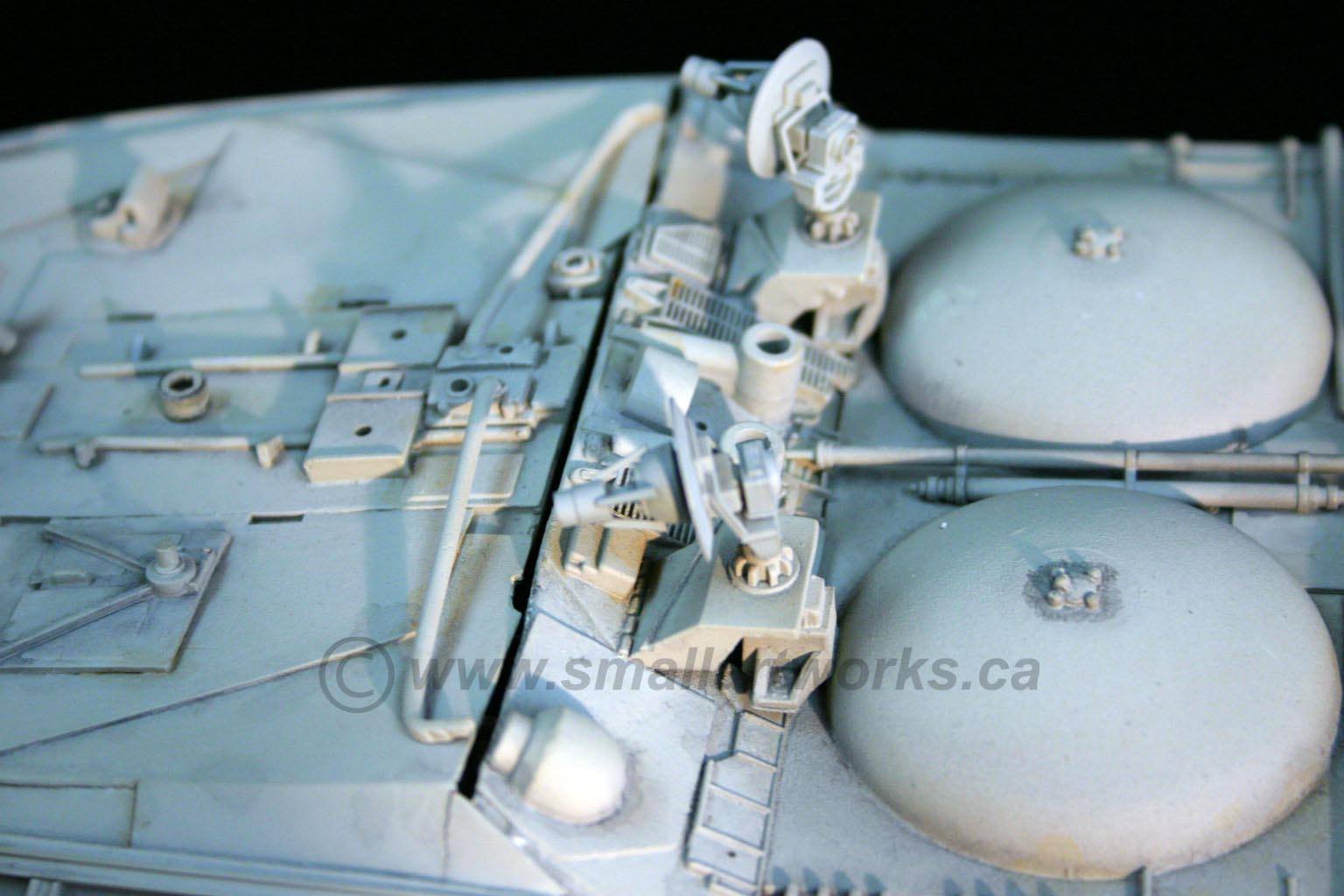 I shot these pictures of the original shuttle in 2008. It was carved from urethane foam clad in sheet plastic and detailed with hundreds of model kit parts. The model was restored a few years earlier by Ed Miarecki who had to re-dress it and repaint it after it had been used in Buck Rogers with a different paint scheme. Several parts on the model are not likely original as a result. However, these are by far the most extensive photos ever taken of the original model. Nobody else has shot it in this much detail at that time. Enjoy.