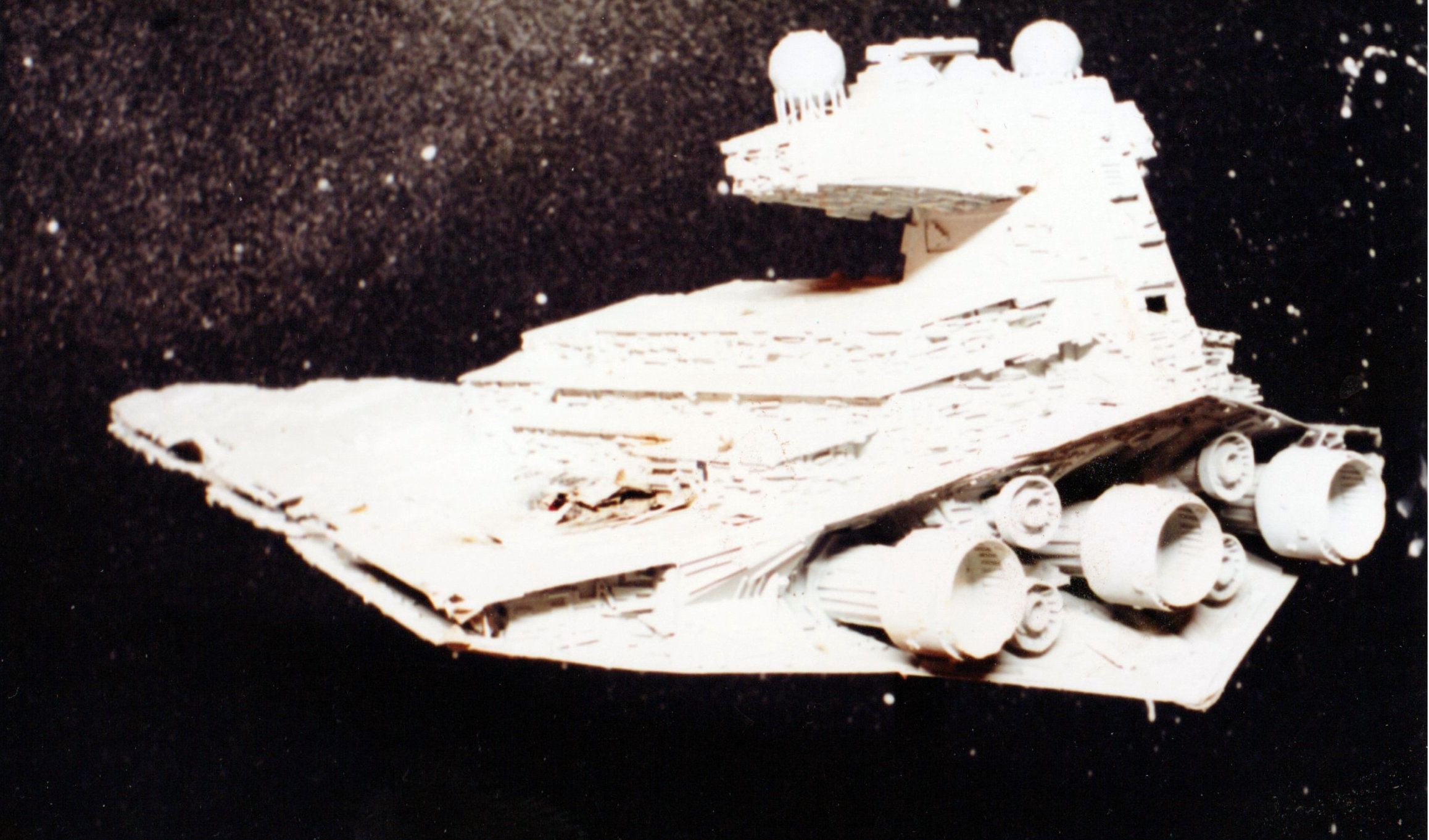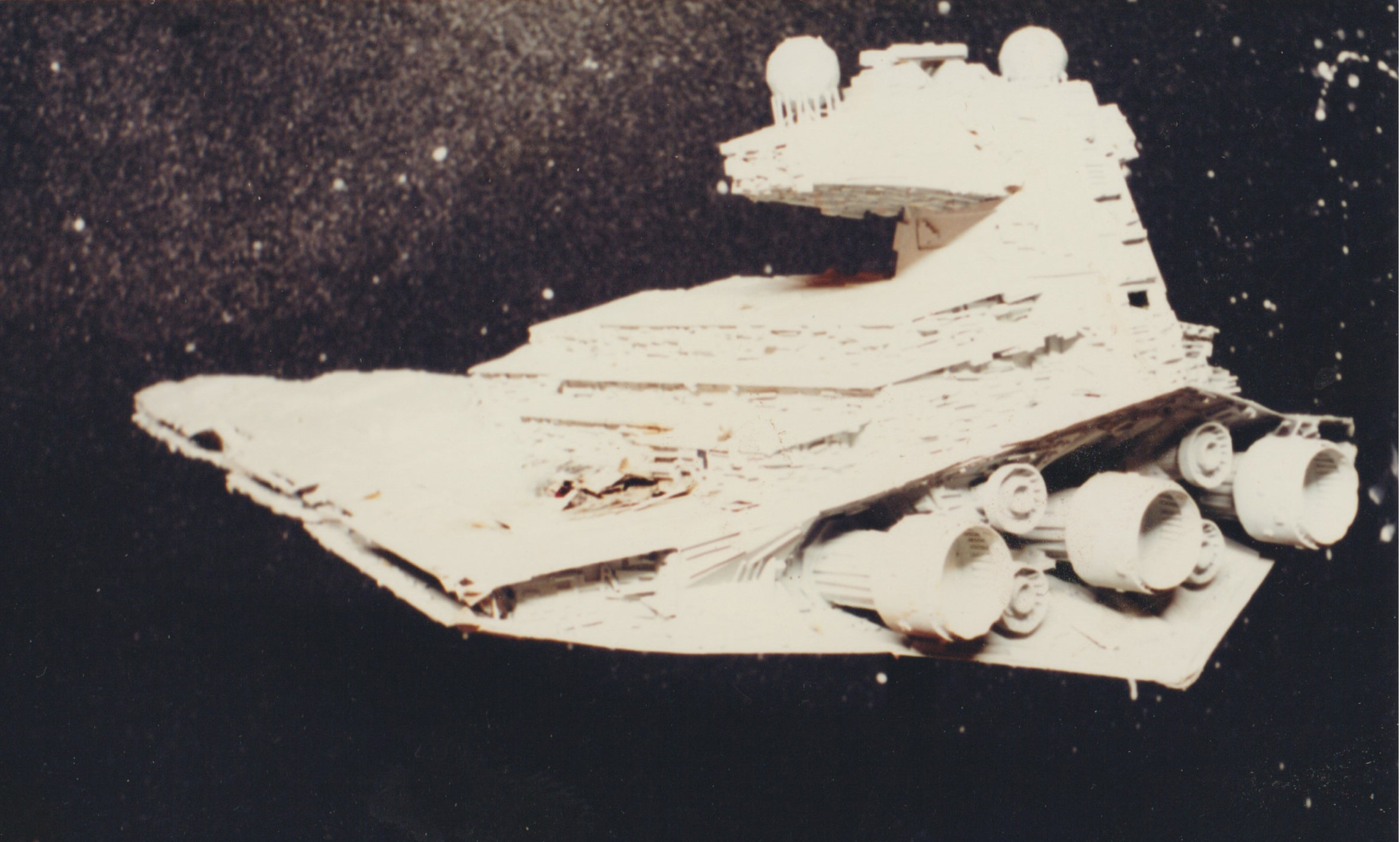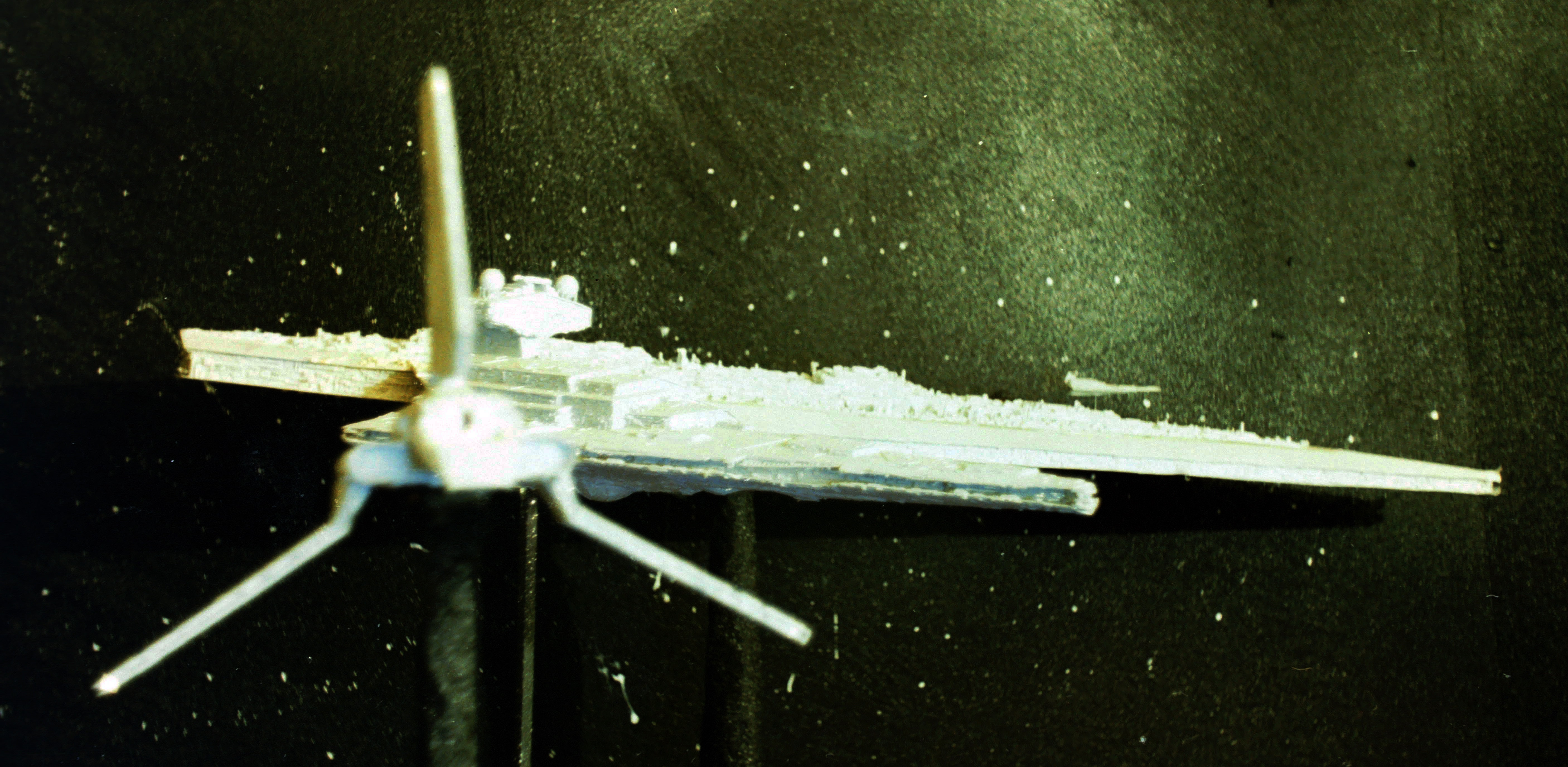 Among many other Sci-Fi models that I will show here on Modeler Magic in upcoming showings, around 1982 I built the Shuttle Tydirium, a 2 foot Star Destroyer, five 3 inch Mini Star Destroyers, a Super Star Destroyer, and I even attempted to build an 2m X-Wing (I got the body structure built and then we had to move house) It never got finished. Then the family moved again then I began working full time in 1985. Everything was stored away and collected dust for years and years. Thank goodness for digital cameras and imagery. It made life easier and kept costs down when I take thousands of photos at any one time. Then there is the instant results.. good or bad. Got my first computer in 1999 and camera. The rest is history. So much happened in between that the old S.L.R. camera caught on film.