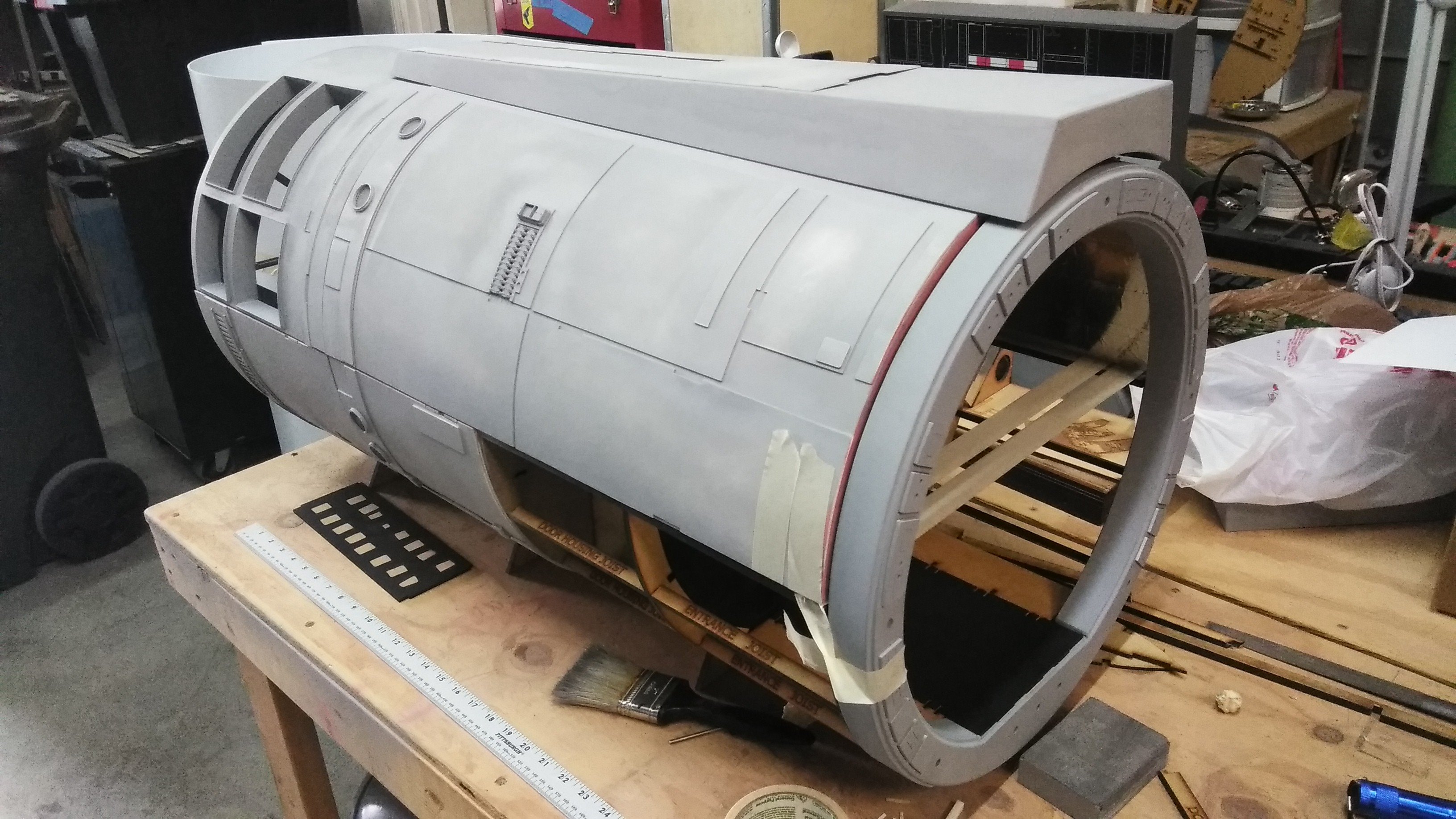 The YT-300 is in 1/6 scale. It’s been a lot of fun to work on but I am DEF ready to get back to the full scale projects. The detail work you see is a combination of 1/35 scale tanks parts and laser cut styrene and acrylic greeblies and “armor plating”. ALL the laser cut parts have been designed by me. So… lots of time spent at the computer. : )