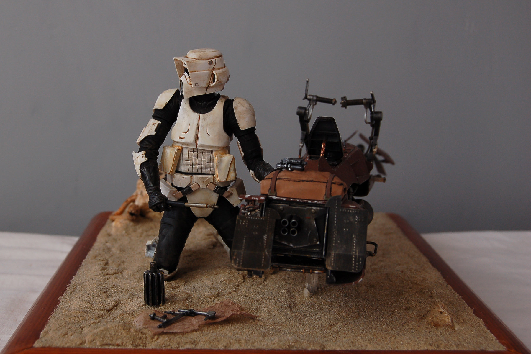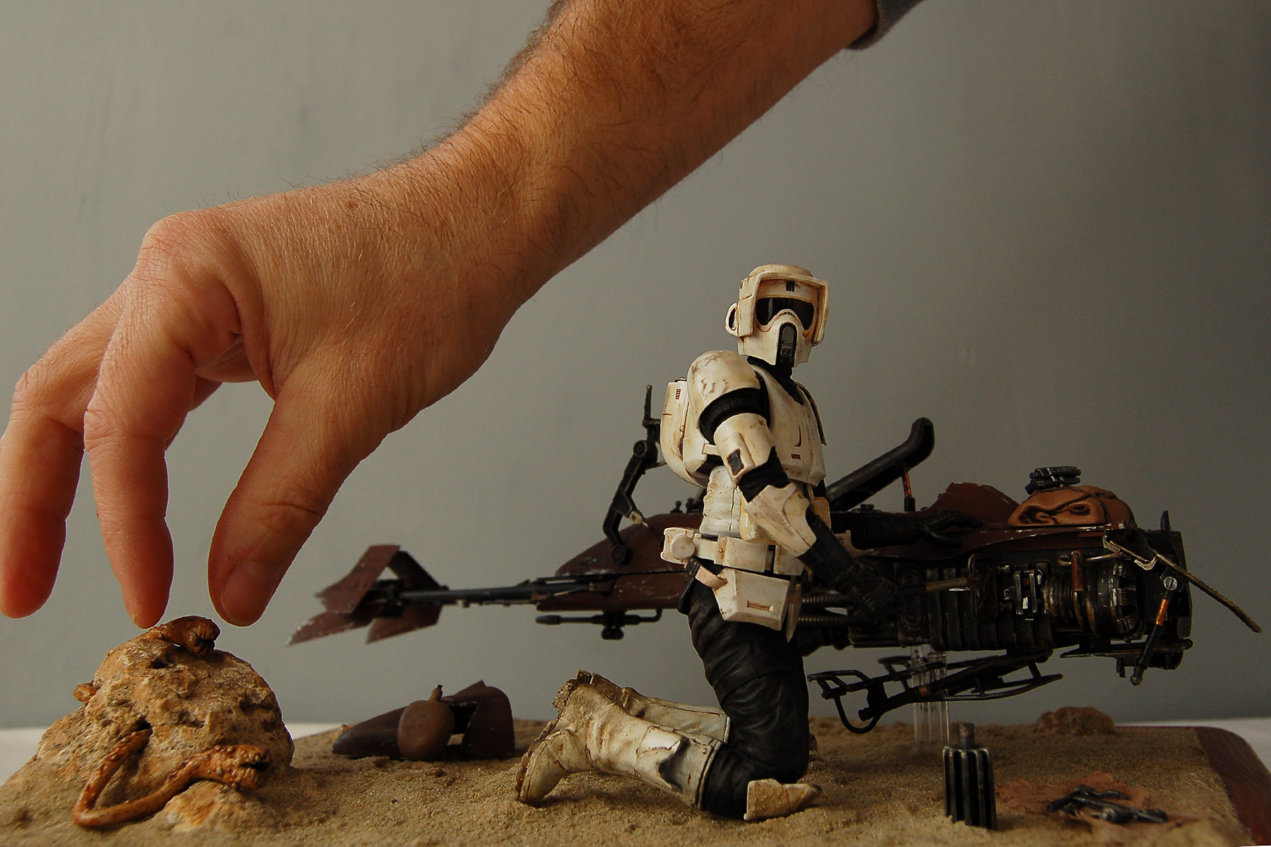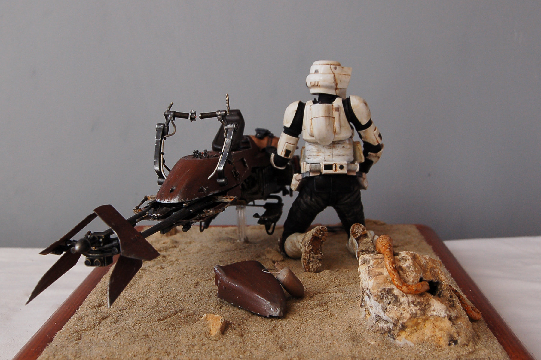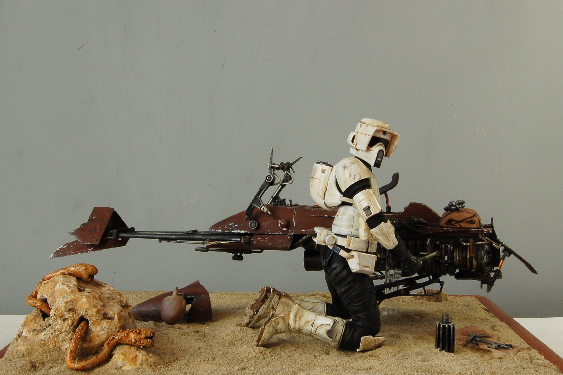 I finished another project. It is the Bandai 1/12 Scout Trooper with Speeder Bike.