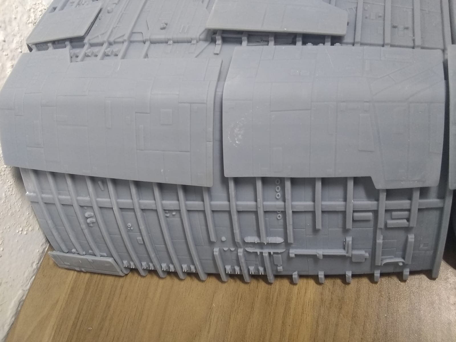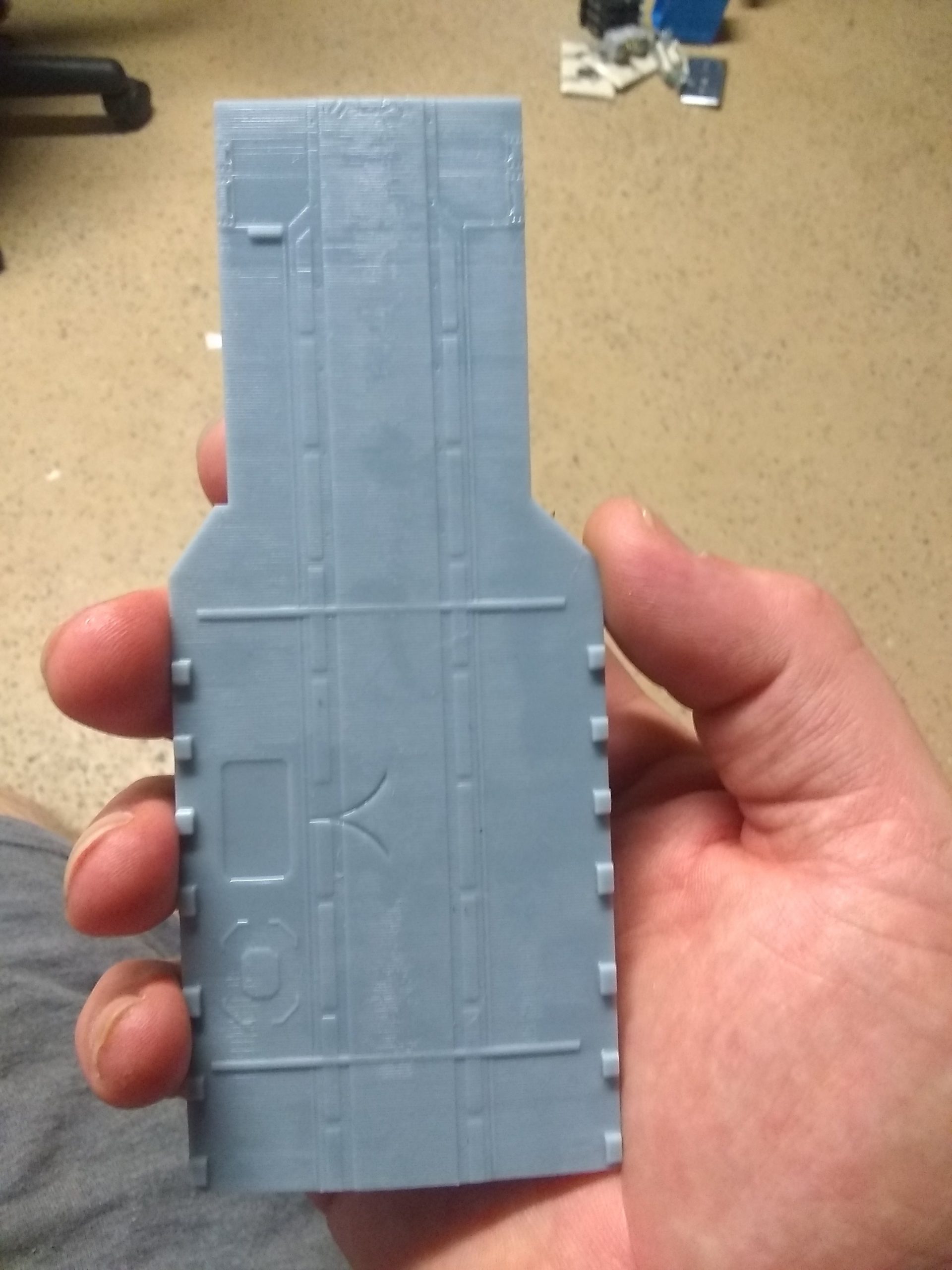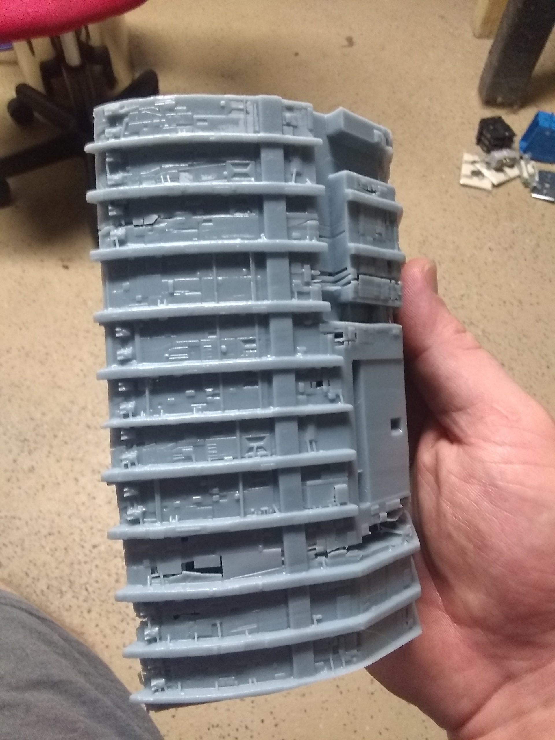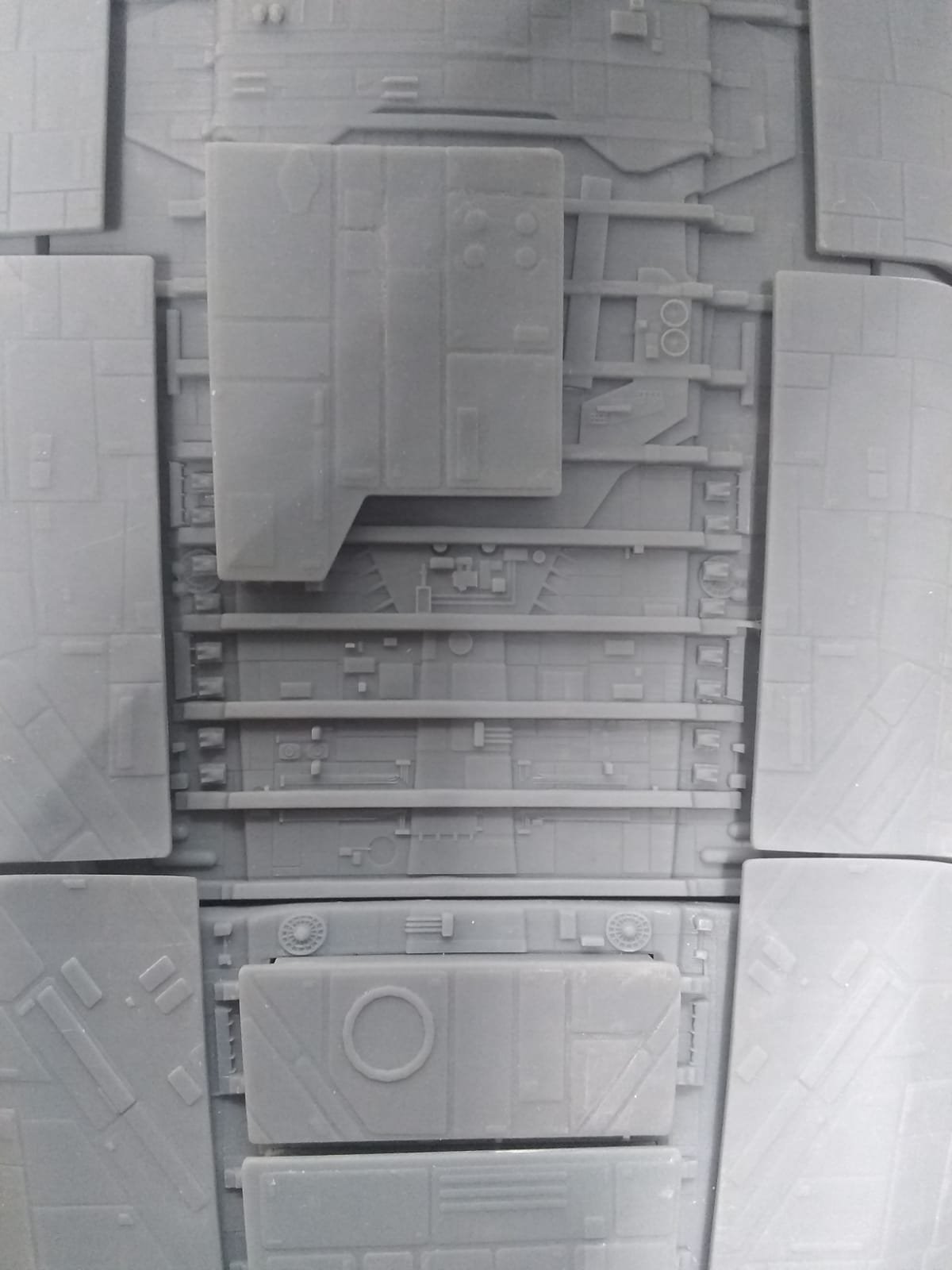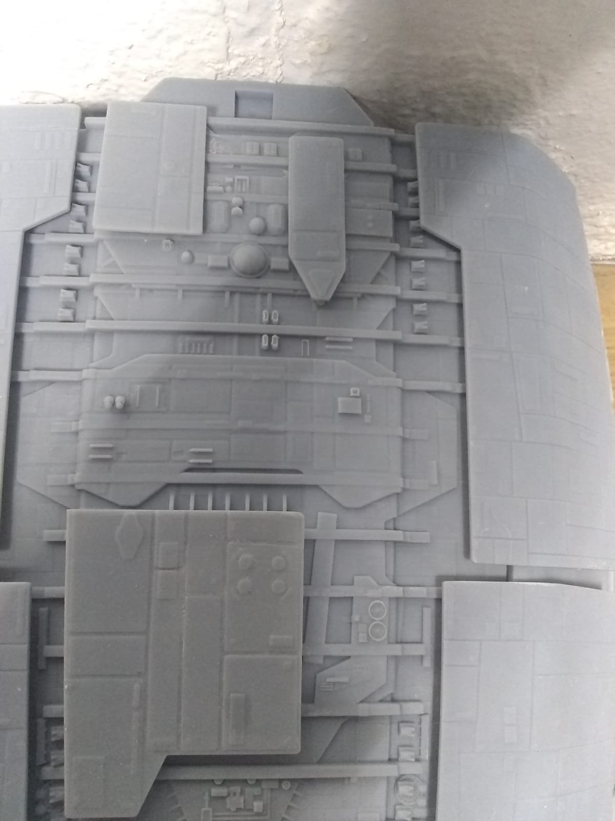First, we have been working on this project for months now, and it is coming along nicely. Tony Celliers of Dynamic Digital Creation is also involved. We are using the files he had previously cleaned up for the Galactica that he is making as a starting point for our large kit. Parts breakdowns etc will change based on printer size, and molding needs. Tony will also be assisting us with reworking the files that we were recently provided by Lee Stringer for the fully detailed landing bay interior set pieces.