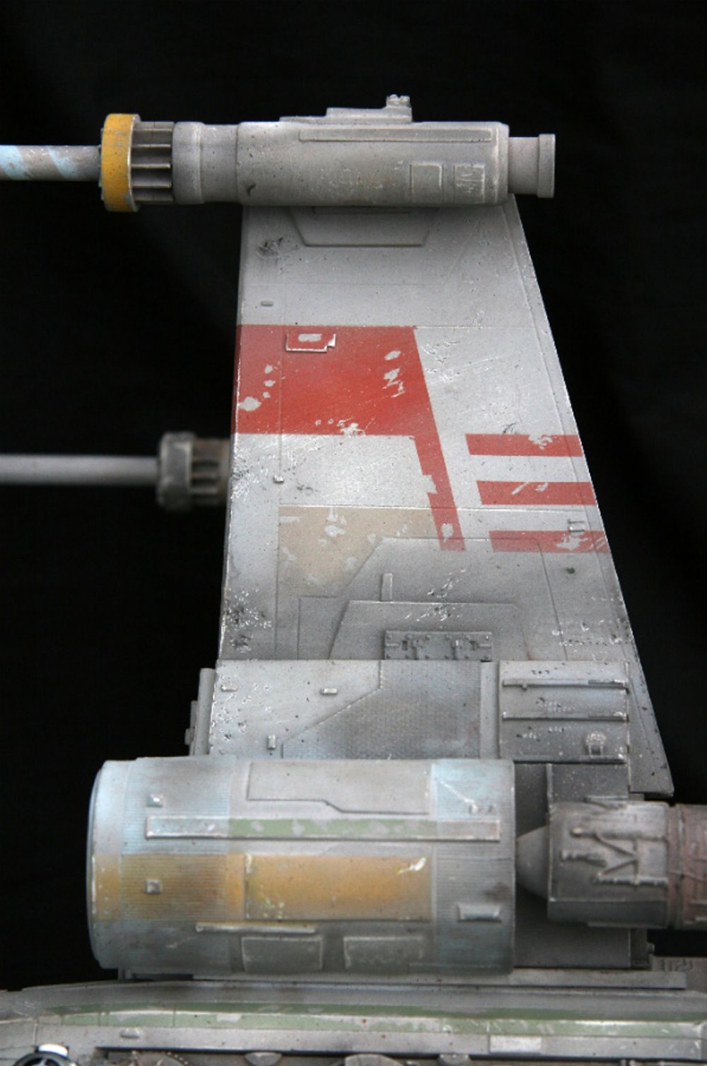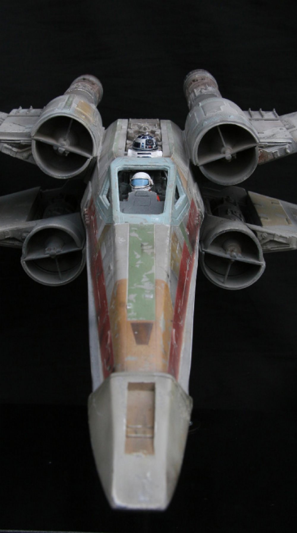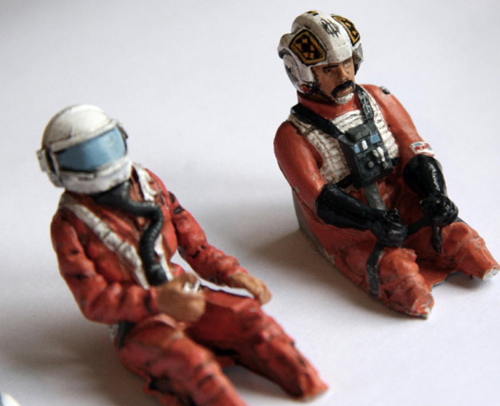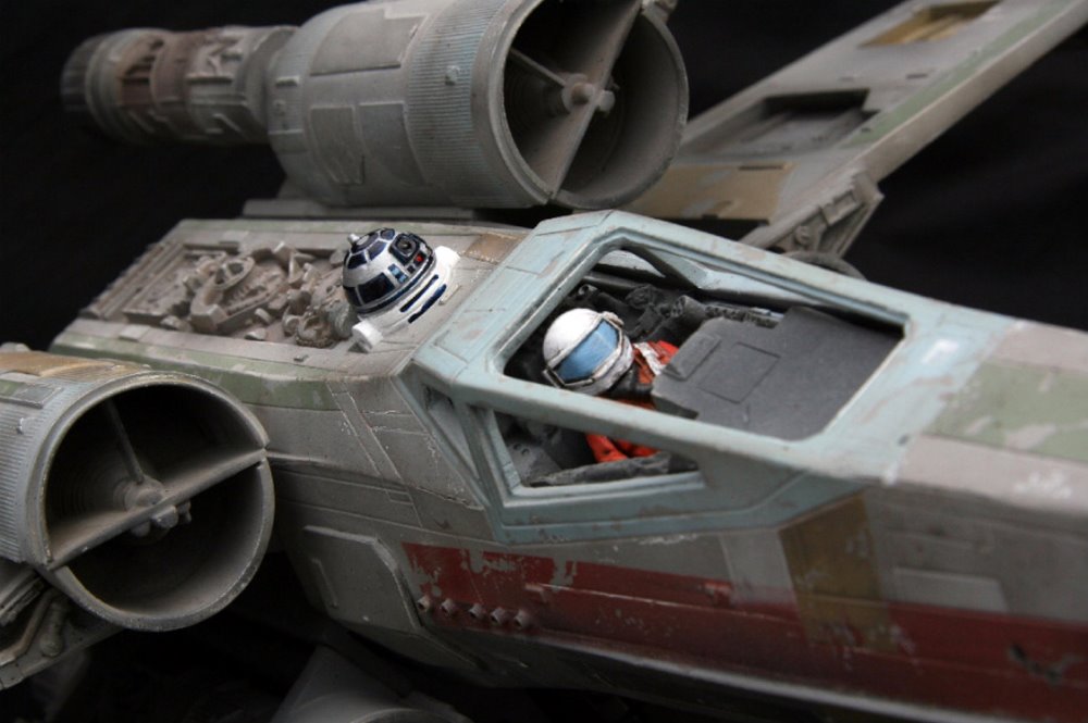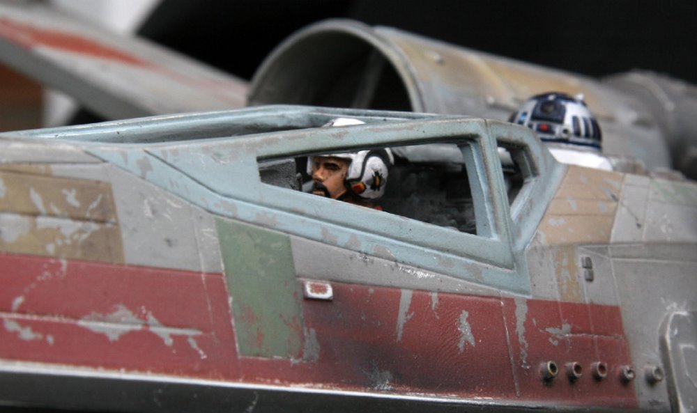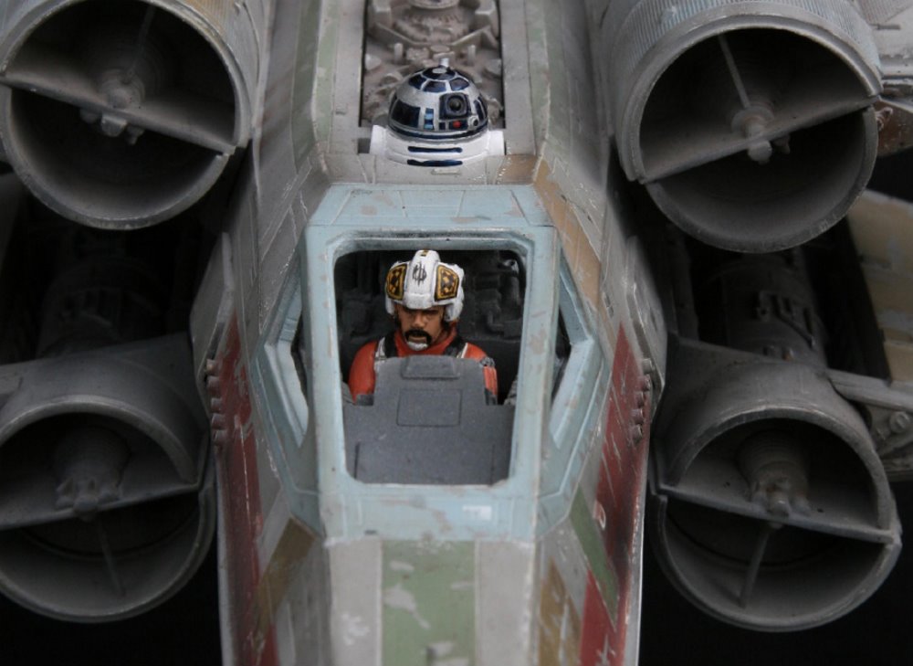 Beautifully built over a decade ago from the MSLZ22 Models (Mike Salzo) V3 Studio Scale X-Wing Kit, artist Guy Cowen made this beautiful replica from Star Wars: A New Hope… the RED 3 X-wing. Utilizing the Lucasfilm Archive RED 3 photos, Guy did an amazing job is his replication of the markings and unique look that makes this model awesome. Note the different pilot figures Guy painted that give the alternatives to the studio scale model’s display. Excellent job indeed!