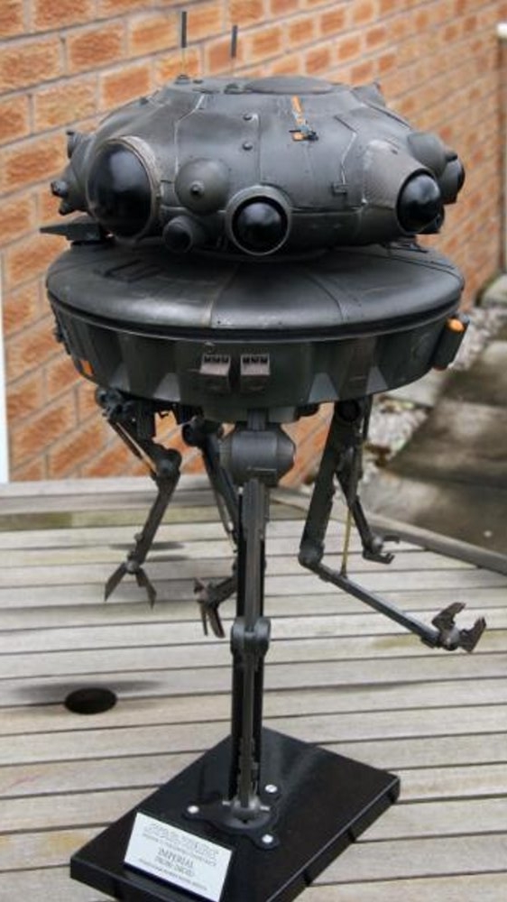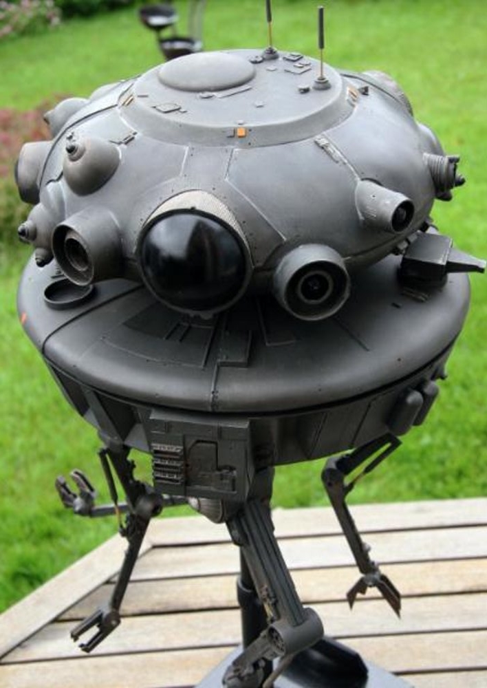 This piece was originally shown here on Modelers Miniatures & Magic back on March 9, 2009 and now updated to today’s showing standard! Artist Guy Cowen did a magnificent job bringing this studio scale Imperial Probe Droid to life. Offered today by NICE-N Model Designs, Guy Cowen surely shows how amazing this already fantastic kit can look when it is built, painted and detailed as he did this one! Outstanding!