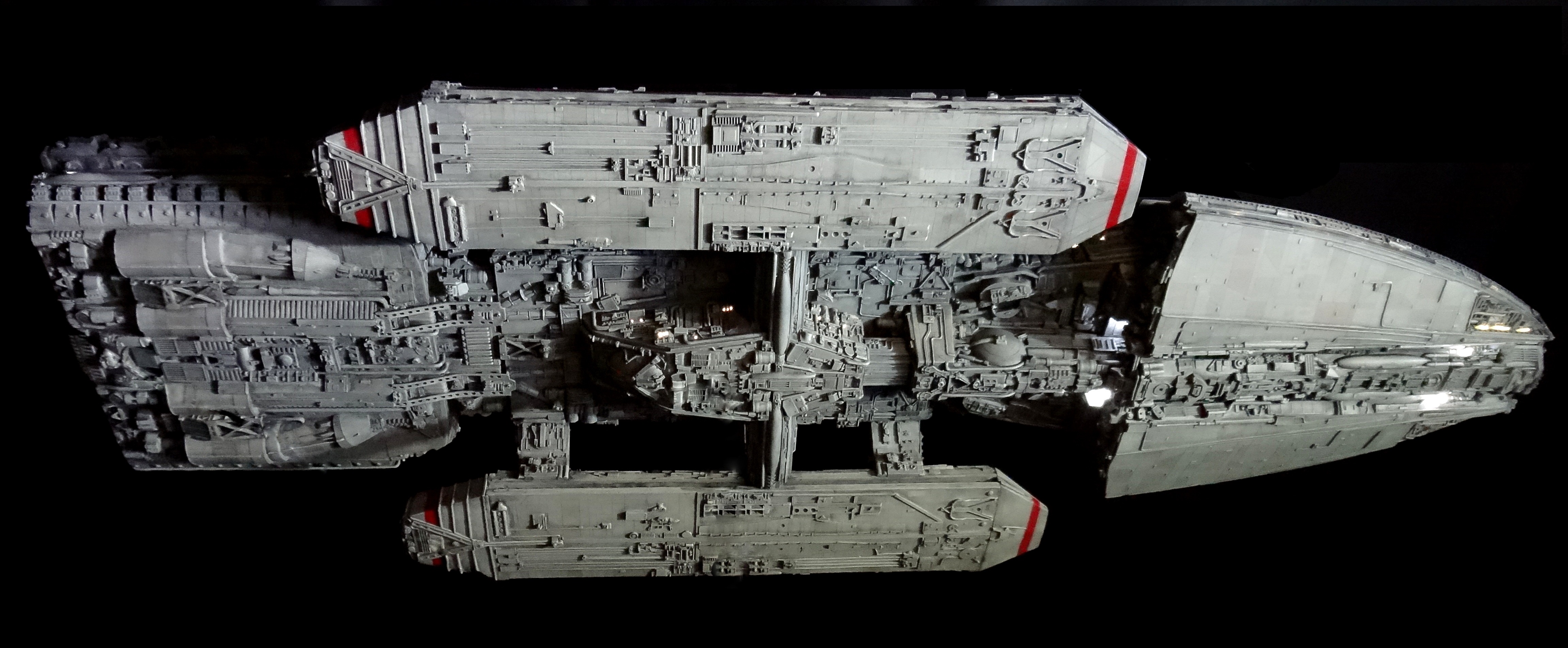 Artist Randy Cooper is well known through the art form and industry as an artist that gets things done…. beautifully done! This MSLZ22 kit of the half studio scale Galactica is completely amazing in it’s added details and lighting from Randy Neubert at VooDooFX! I almost feel as if I am looking at a filming miniature! Actually, this very much could be filmed right now! Fantastic work Randy!