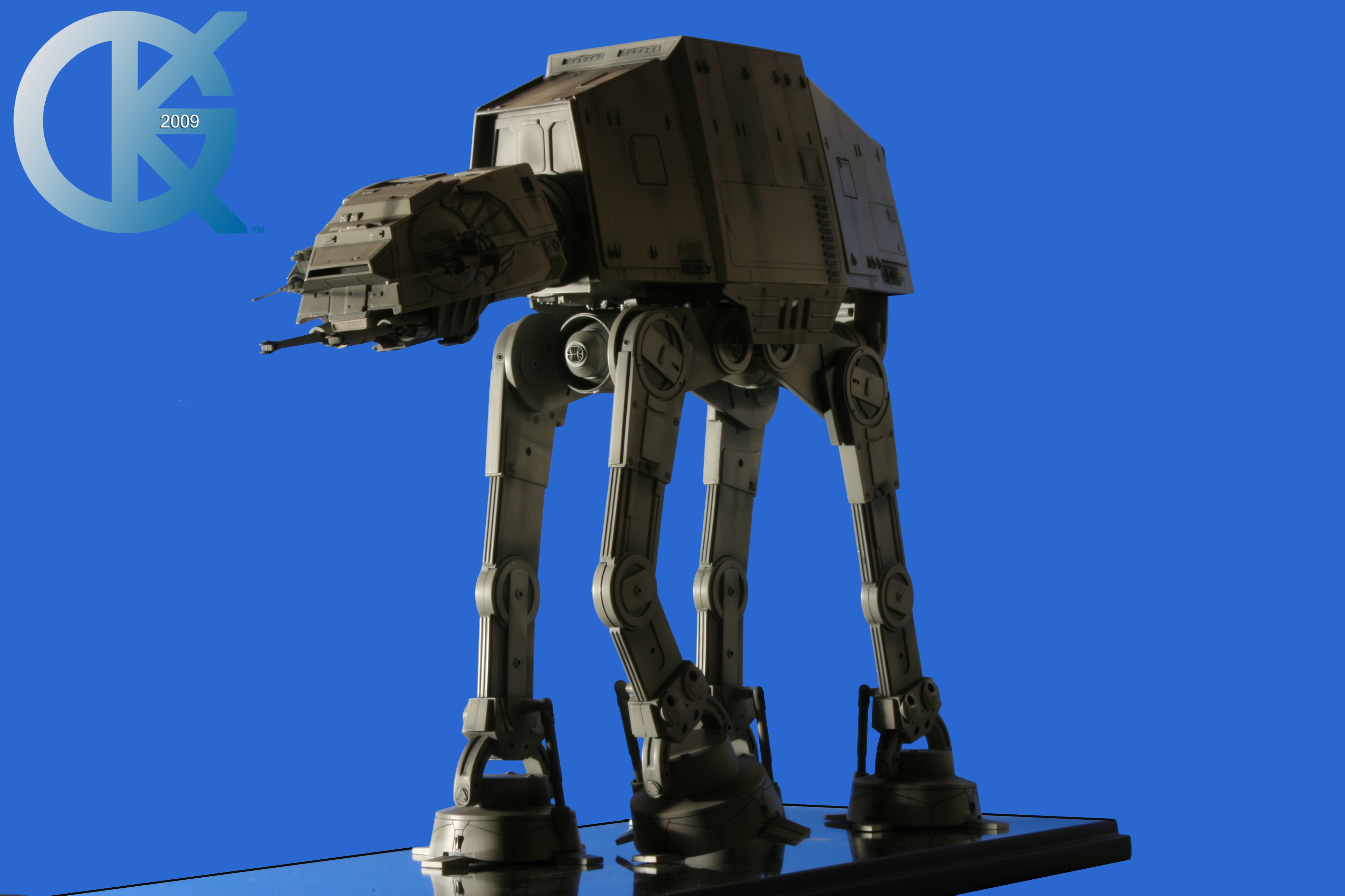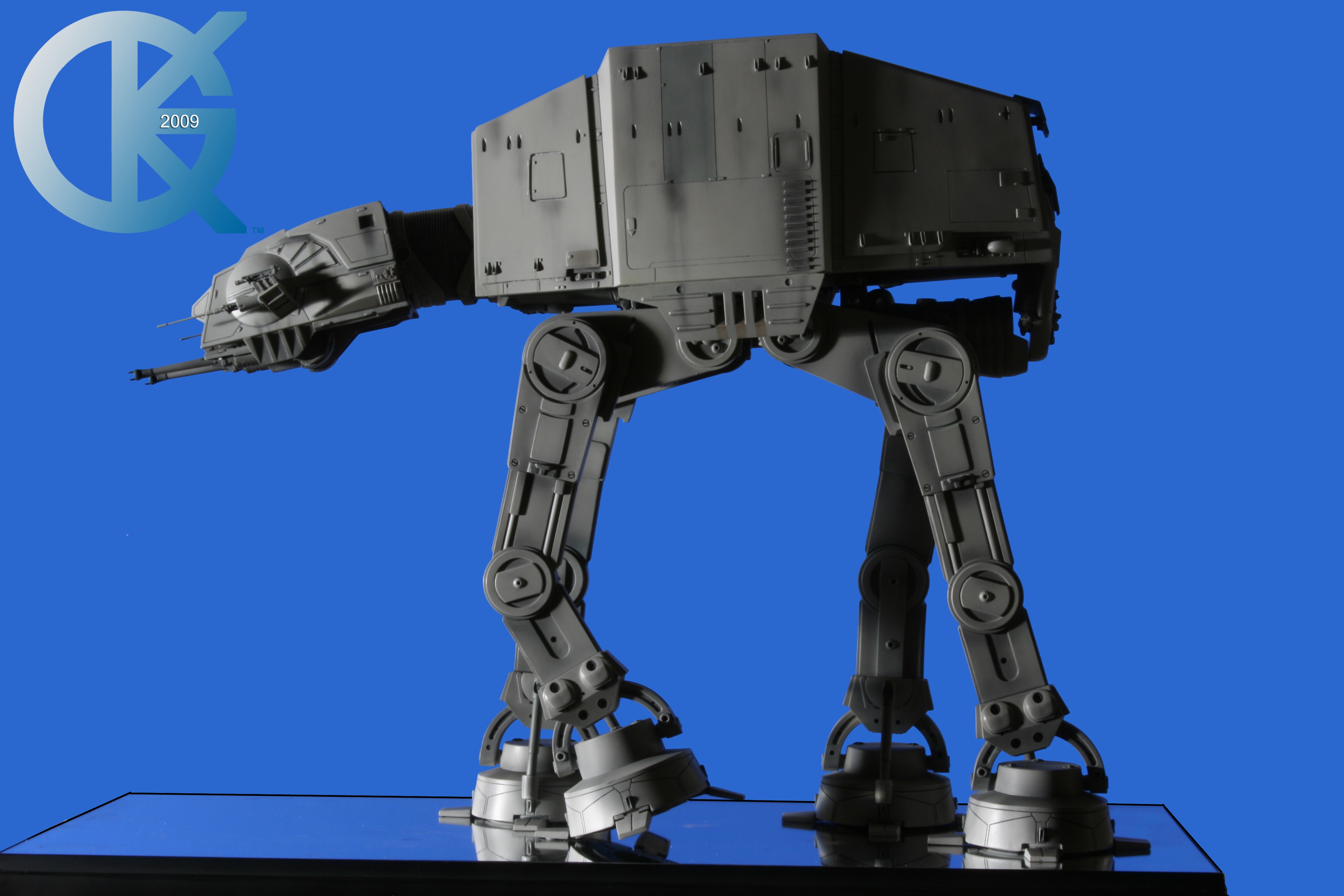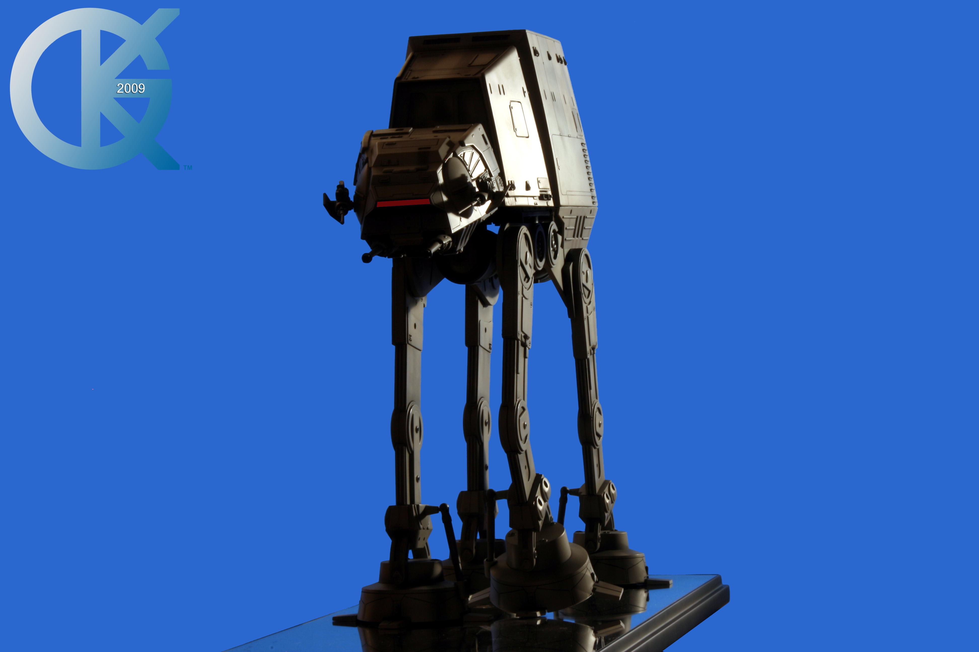 Shown here back on June 1, 2009, then sold to Hector Rosales on September 8, 2011,.. this excellent piece began life as the first Master Replicas studio scale AT-AT release back in 2004! I loved having this piece in the collection. Though not lit, it really showed well. I took Blue Screen Photos of the AT-AT with a blue screen draped table, making the table disappear as I idealized the blue screen effect for all to utilize the model itself in composites. I even removed the mirrored base in one photo just for fun..lol. This is exactly how it looked straight from the packaging. Since it didn’t come with a lighting option for the front head window, I couldn’t resist “Photoshopping” the ominous looking “red glowing color” into the single eye view port as it was seen in The Empire Strikes Back. That stated, this replica is of the original 19-inch high filming miniatures as seen in The Empire Strikes Back and measures approximately 23-inches x 9-inches x 19-inches. It came with an acrylic cover that finished the model display nicely. I am in hopes Hector loves this piece even today. Due to it’s rarity, it is valued today (2020/02) up to, and possibly over $5,000 USD. A great investment this continues to be.