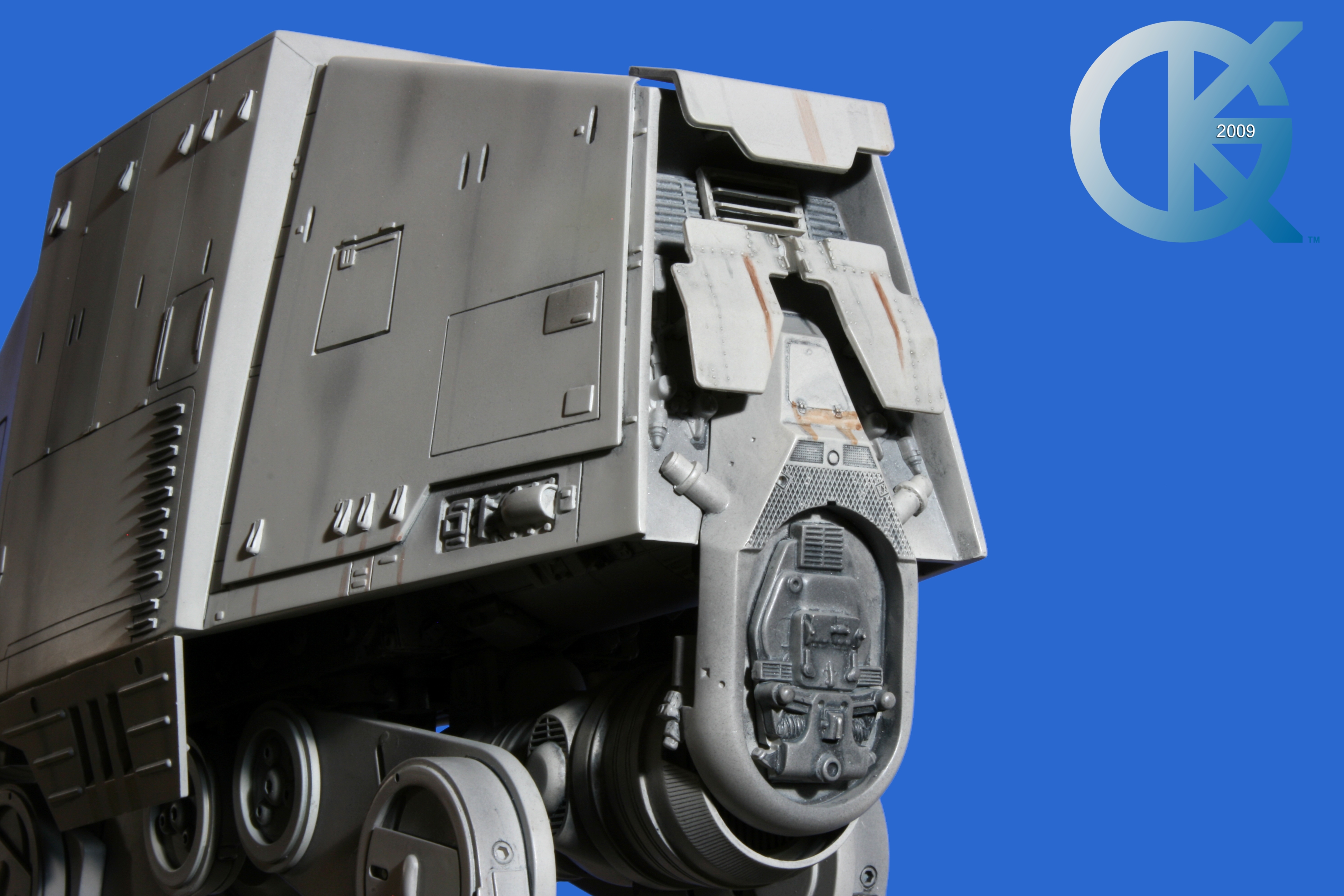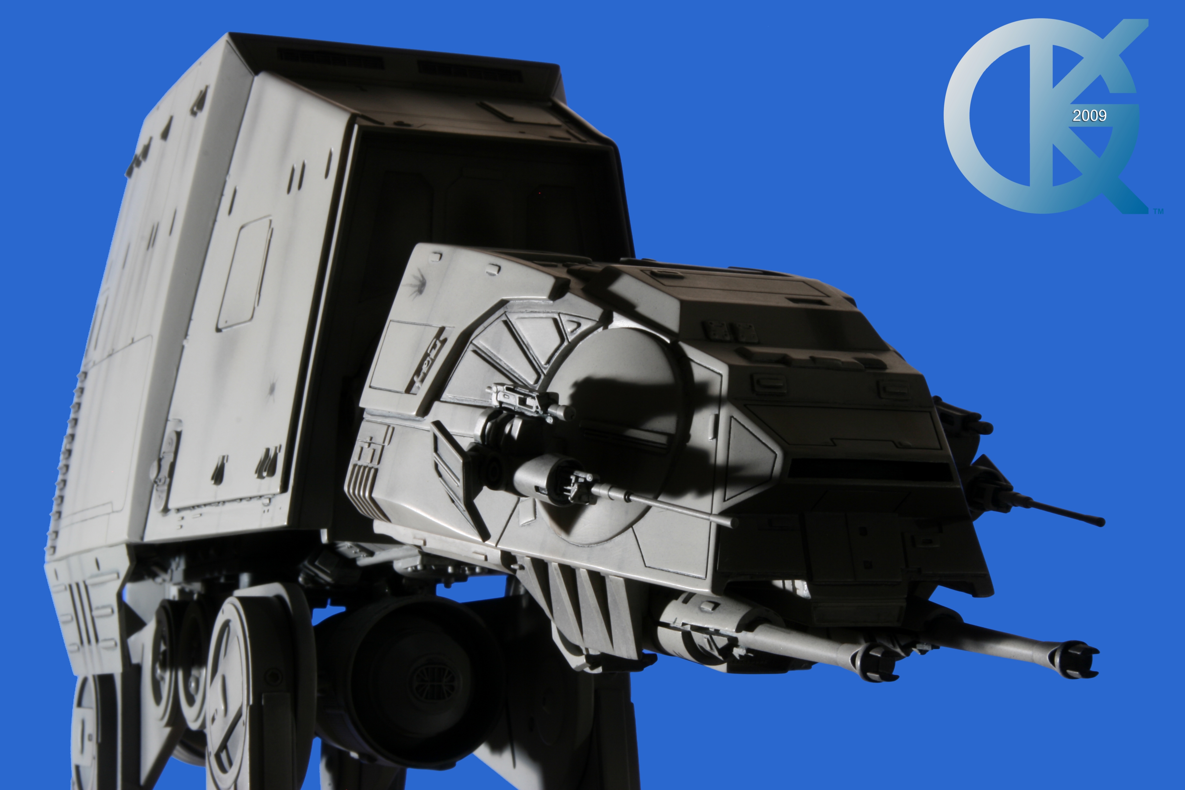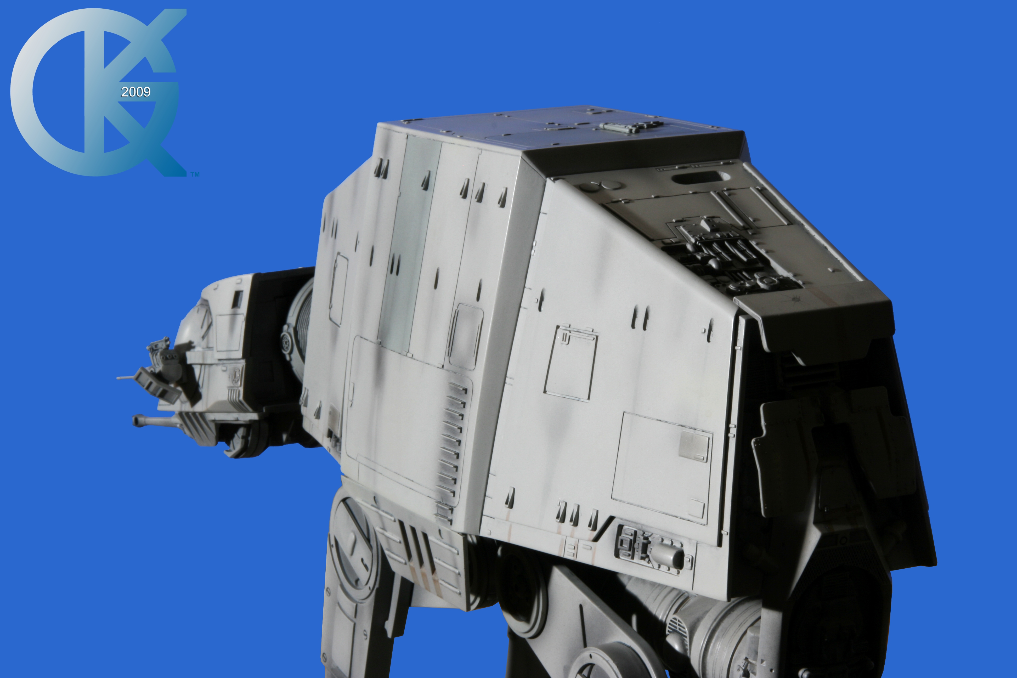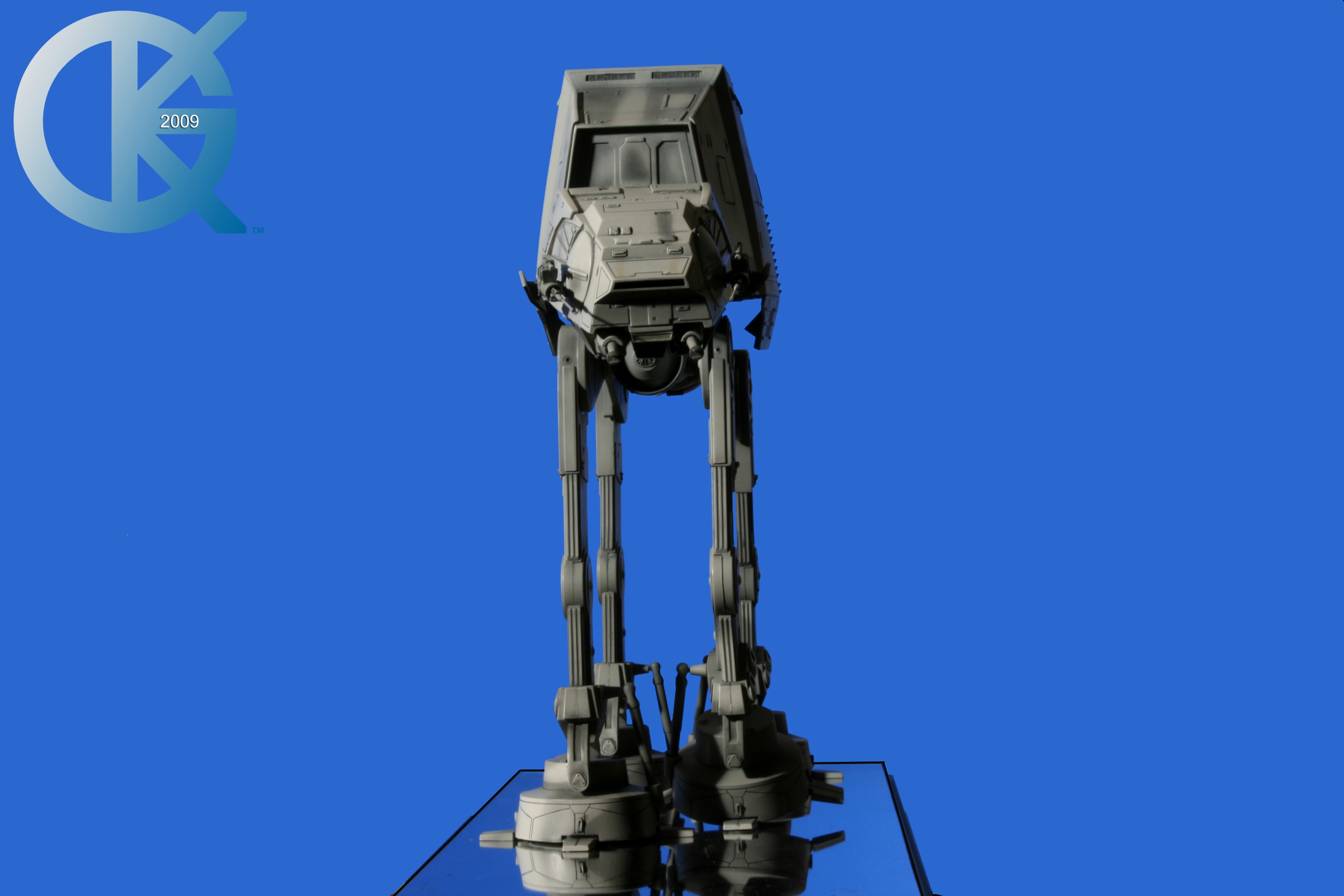 Shown here back on June 1, 2009, then sold to Hector Rosales on September 8, 2011,.. this excellent piece began life as the first Master Replicas studio scale AT-AT release back in 2004! I loved having this piece in the collection. Though not lit, it really showed well. I took Blue Screen Photos of the AT-AT with a blue screen draped table, making the table disappear as I idealized the blue screen effect for all to utilize the model itself in composites. I even removed the mirrored base in one photo just for fun..lol. This is exactly how it looked straight from the packaging. Since it didn’t come with a lighting option for the front head window, I couldn’t resist “Photoshopping” the ominous looking “red glowing color” into the single eye view port as it was seen in The Empire Strikes Back. That stated, this replica is of the original 19-inch high filming miniatures as seen in The Empire Strikes Back and measures approximately 23-inches x 9-inches x 19-inches. It came with an acrylic cover that finished the model display nicely. I am in hopes Hector loves this piece even today. Due to it’s rarity, it is valued today (2020/02) up to, and possibly over $5,000 USD. A great investment this continues to be.