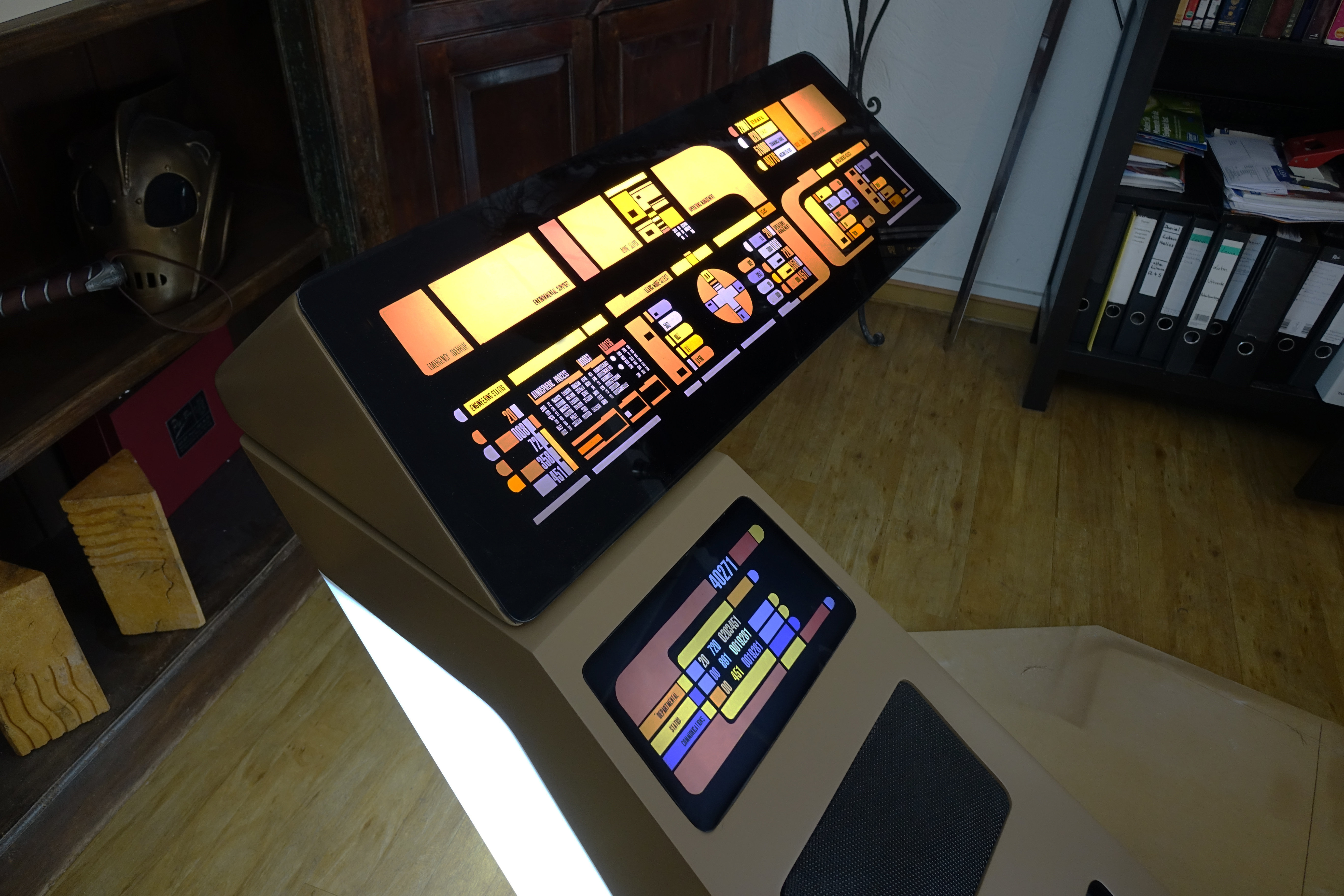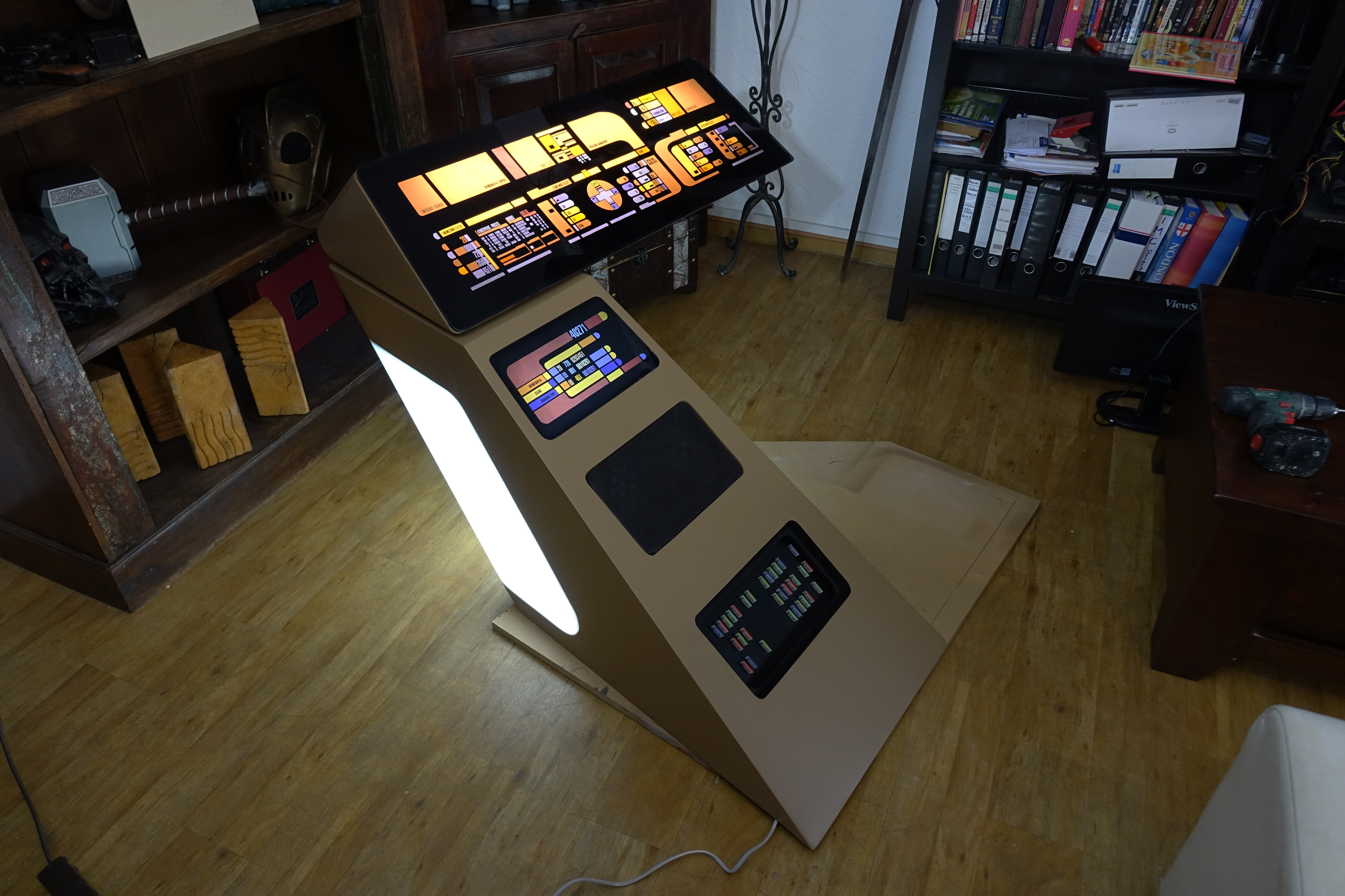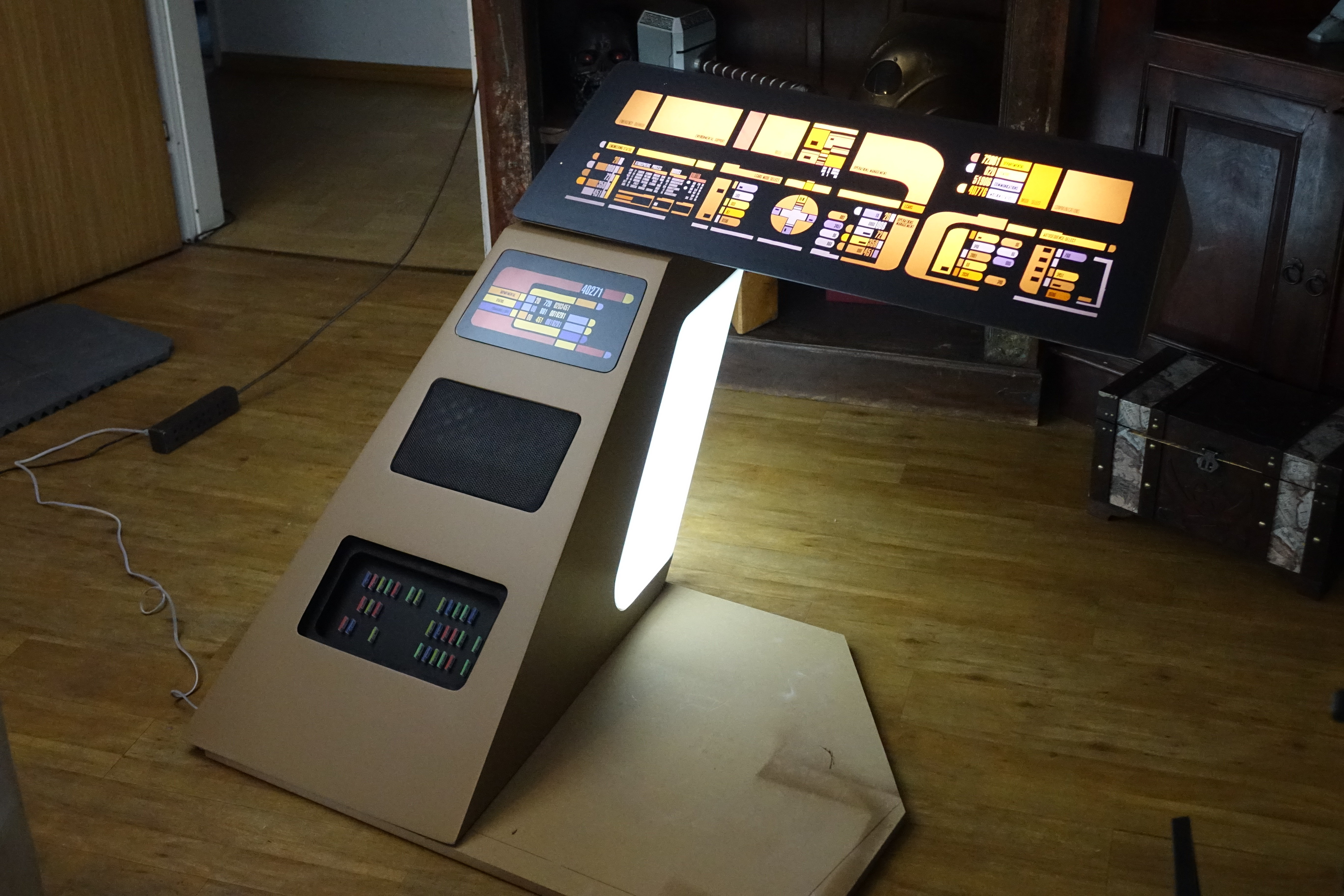 For this build I had the incredible chance to work with the Original LCARs foil used for Commander Data’s Enterprise 1701-D Console that was used over all Seasons: CLICK HERE to View. We did a 3D Recreation of the station with all the measurements based on this photos: CLICK HERE to View.