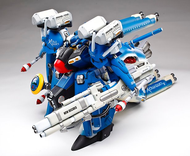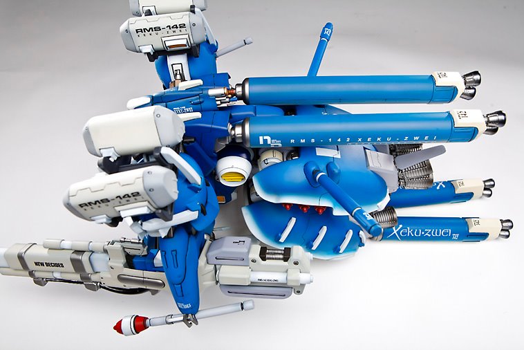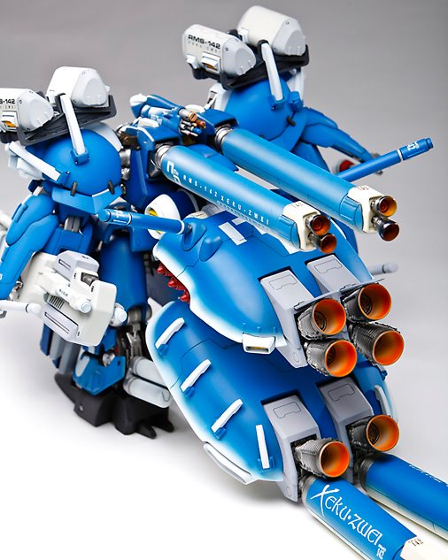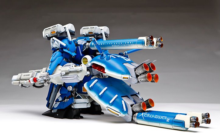 Here is a commission piece I did a few years ago. The is the 1/100 Xeku Zwei from G-System shop. This is a very large kit for 1/100. It is roughly 2 feet long 10 inches high and weighs about 5 pounds. It took me about 200 hours to complete and my client loved it. I liked it so much I am doing another one for myself.