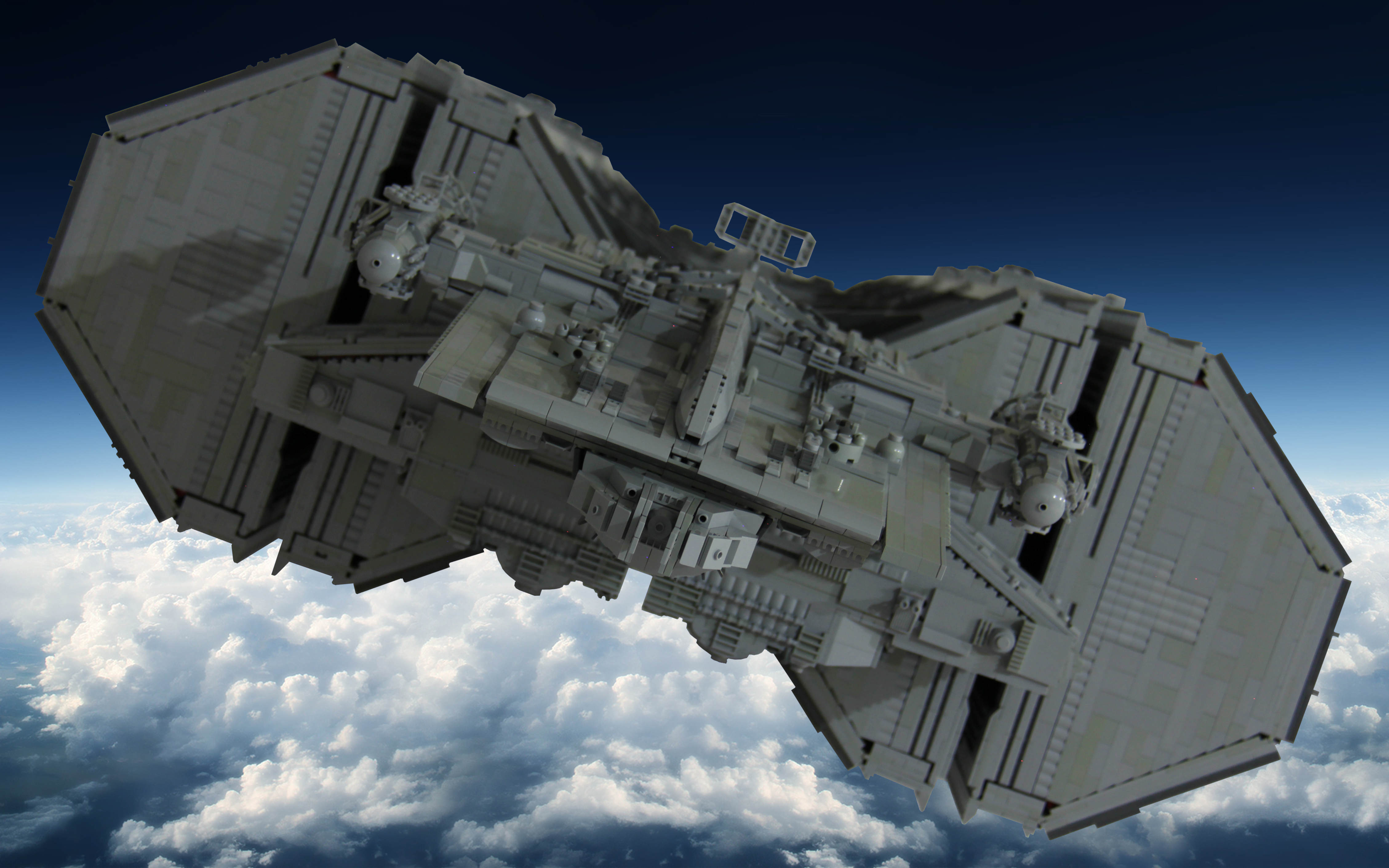 Unlike most ships in the fleet the Gemini Freighters are armed with turbo lasers, point diverters and electromagnetic defense shields, these defenses used primarily to protect the slow moving freighters from pirates and the occasional Cylon raiding party.