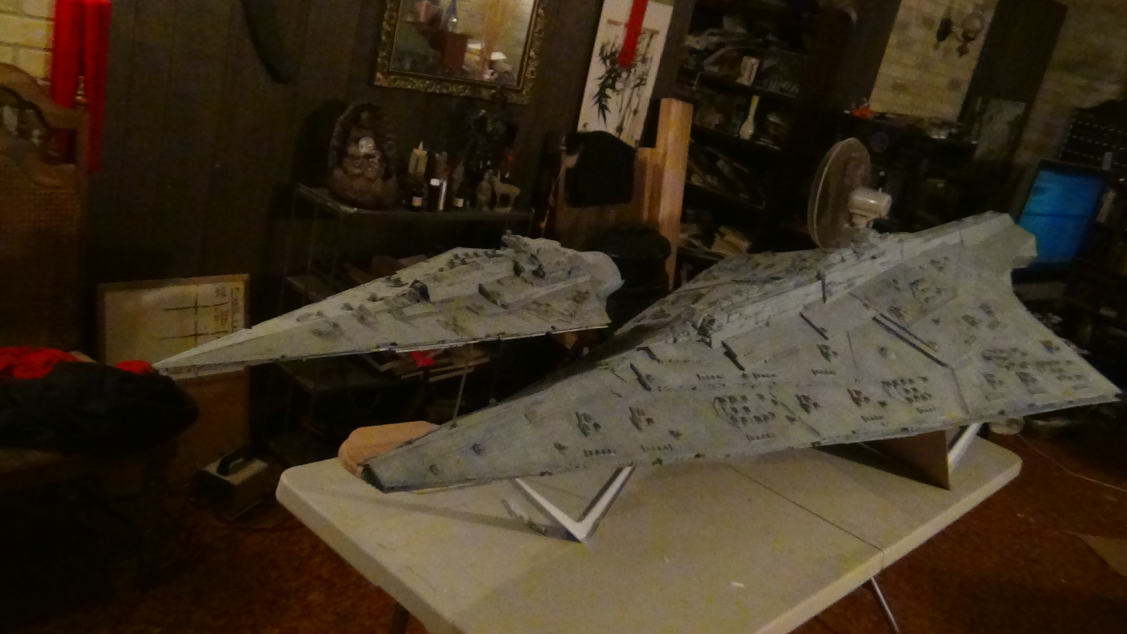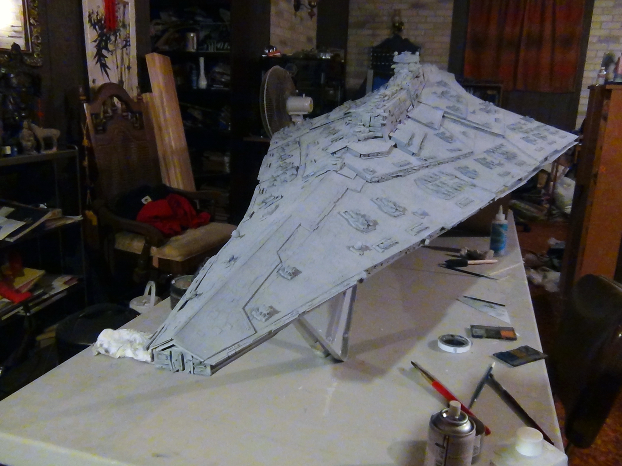 The ASSERTOR was hand carved from Styrene sheets. The turbo Lasers were printed using a 3dTouch Printer.