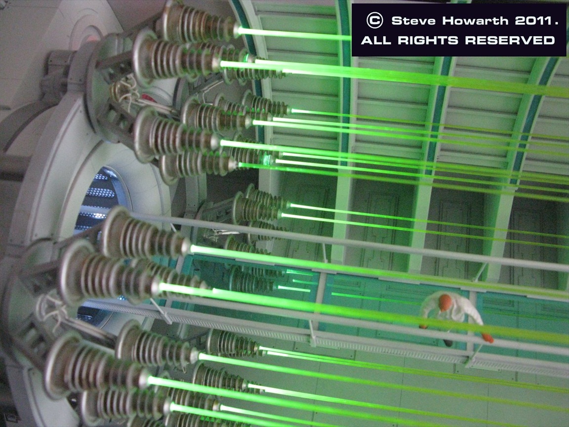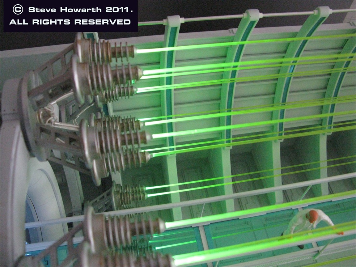 The QUANTUM BEAMS after a slow build-up, eventually rotate fast enough to cut a tunnel in space time. the traveler goes into the past or into the future, depending on which end he enters the space (across the gantry). It could be a one way trip, or, a set date could be arranged whereby the machine is activated and a portal appears for our traveler. I have a film idea for this too.