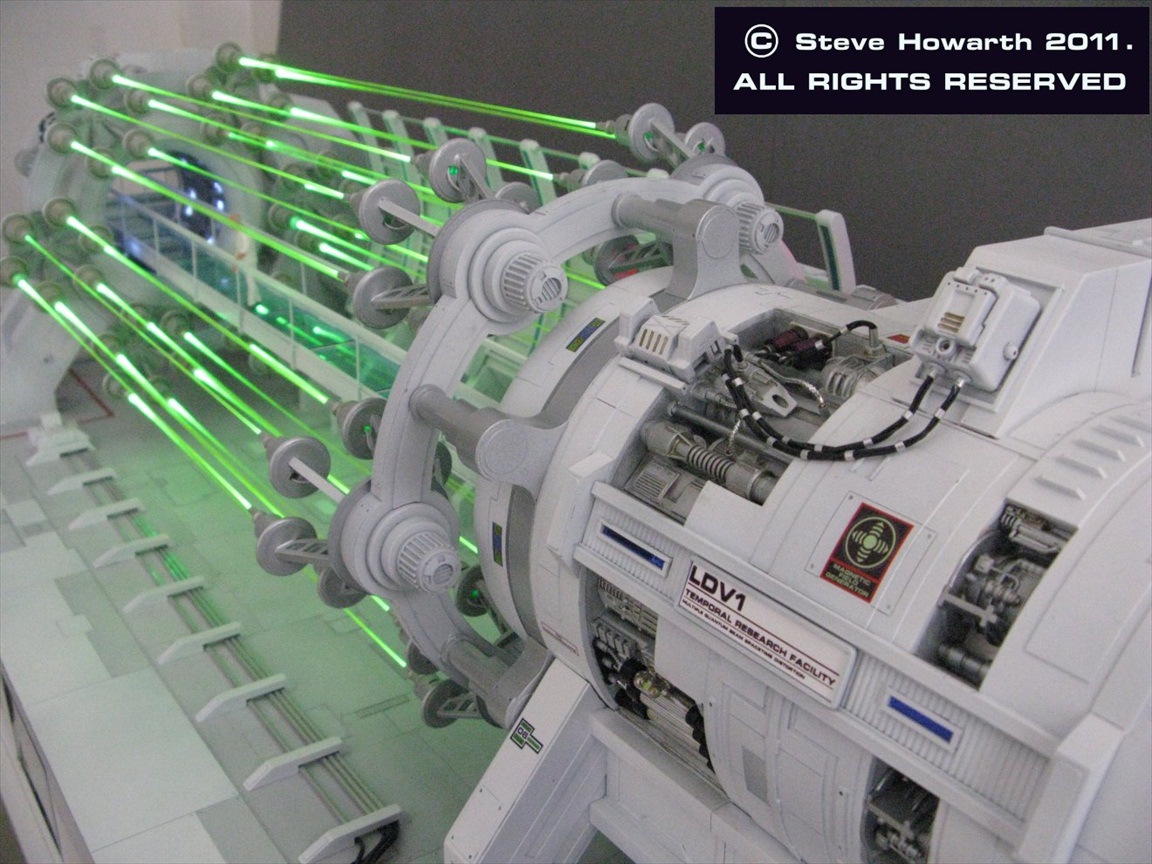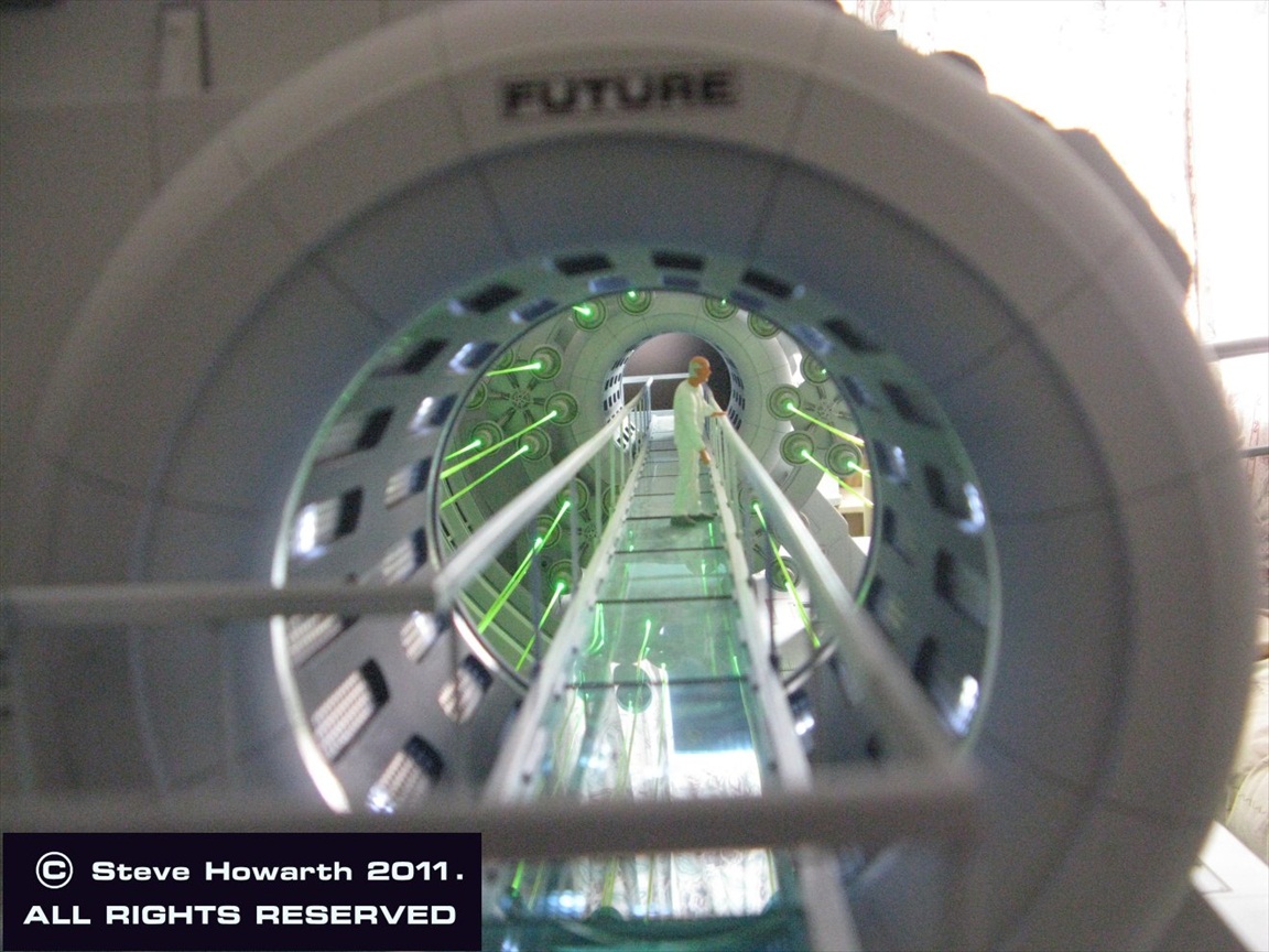 The Time Machine was originally conceived and designed for a childrens TV show of mine and was a more whimsical design.As I developed it, it moved away from that and got more serious. I wanted it to look like it could actually do what it was supposed to do and so has that test-bed science feel, like that of the Hadron Collider, more interested in function than form and aesthetics.