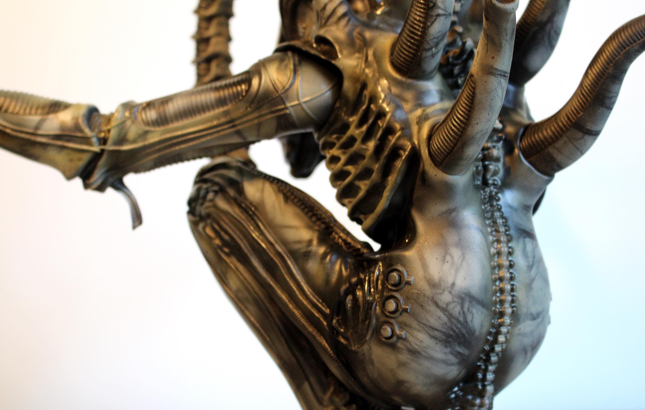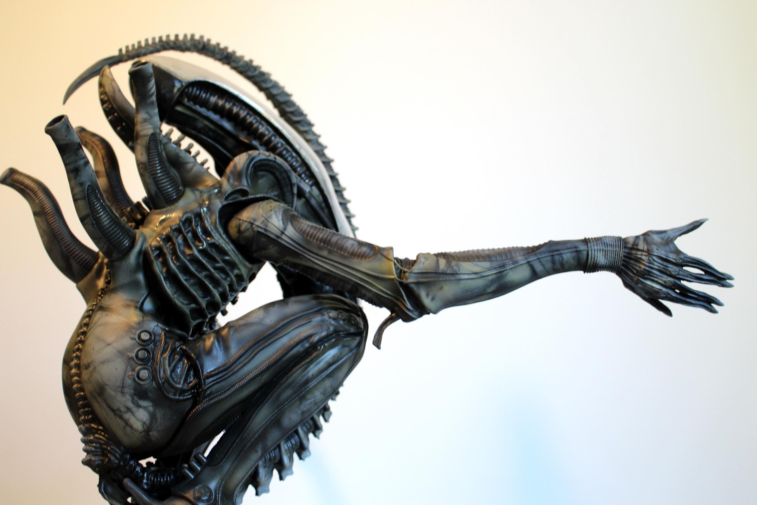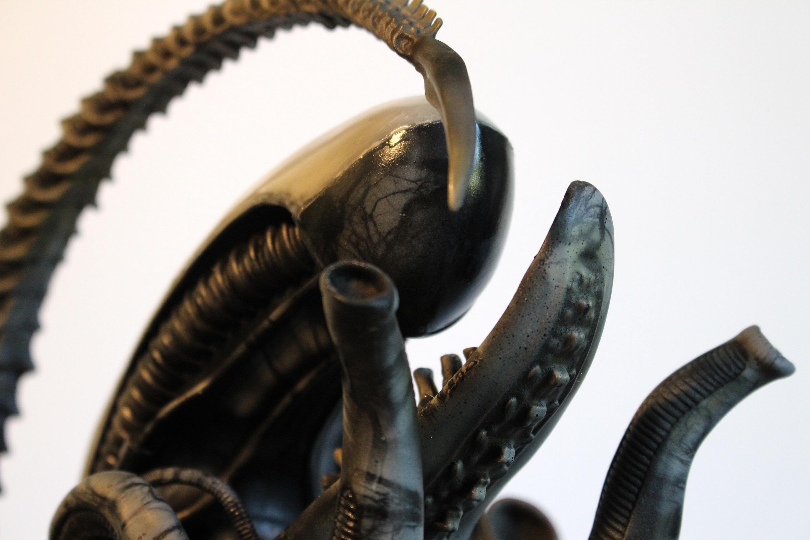 This amazing and huge 1/4 ALIEN from Timeslip Creations (mastered by Bill Weiger) is truly something magnificent. Pair that up with artist John Simmons and this fantastic piece is what emerges! This pose of this menacing ALIEN sends shivers down my spine as I remember the creepy feeling I had in 1979 when I first saw that film. Beautiful work by all!