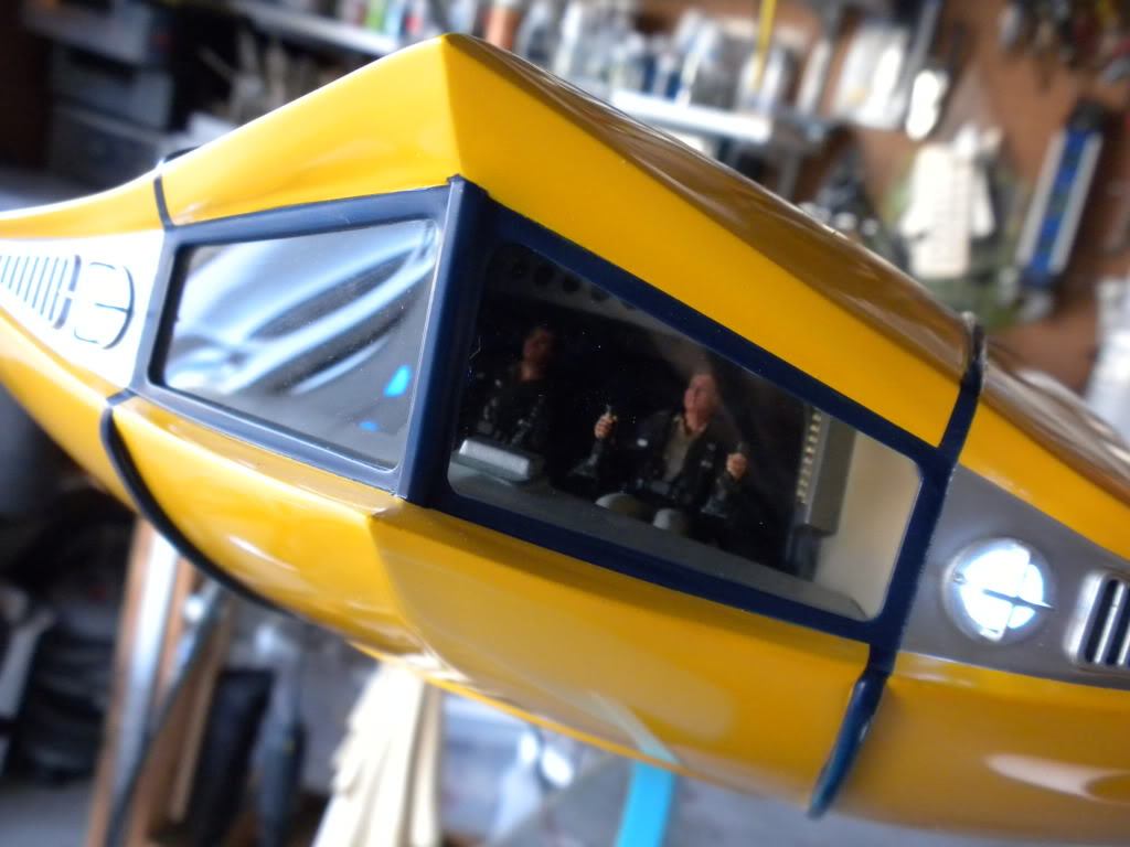 I have been watching artist Rob McFarlane as he masterfully created this piece from the MOEBIUS Models kit. Not only is it perfect, but he has the approval (as you can see in the photos) from the designer of the original Irwin Allen filming model himself…. Academy award winning Art-Director William Creber! Rob’s interior is film perfect as is his ultra smooth yellow finish on the outside hull! This is a masterpiece of pure talent from professional modeler Rob McFarlane!