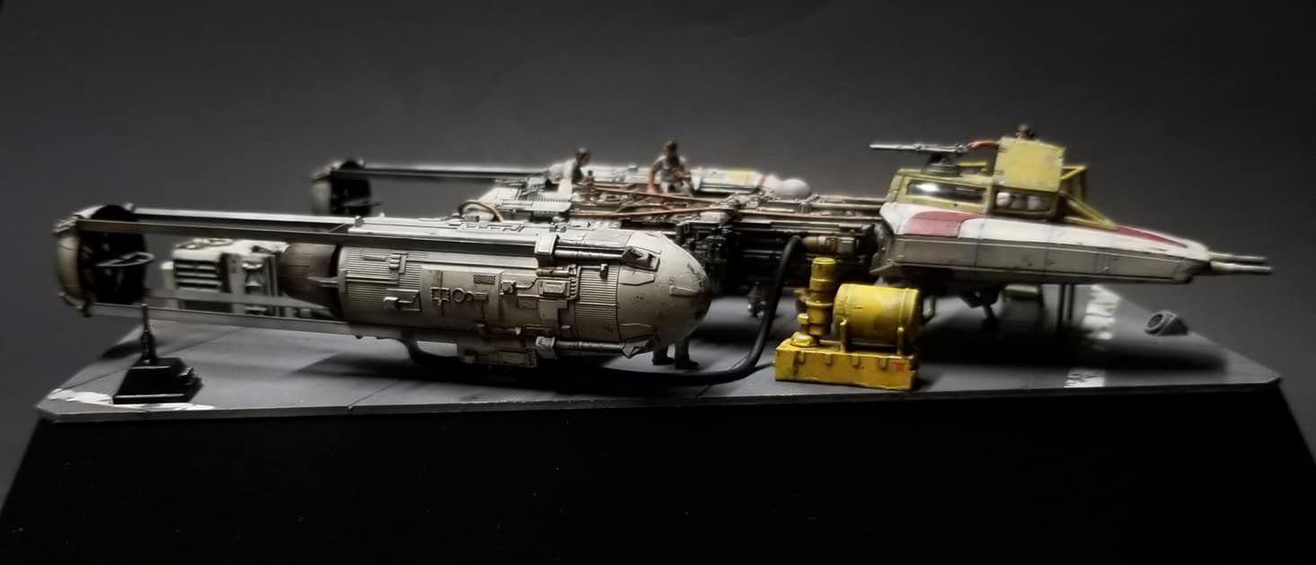 This is the War Horse, RED JAMMER, BTL-A4 Y-Wing Assault Starfighter/Bomber. I added sound effects and an LED lit Generator.