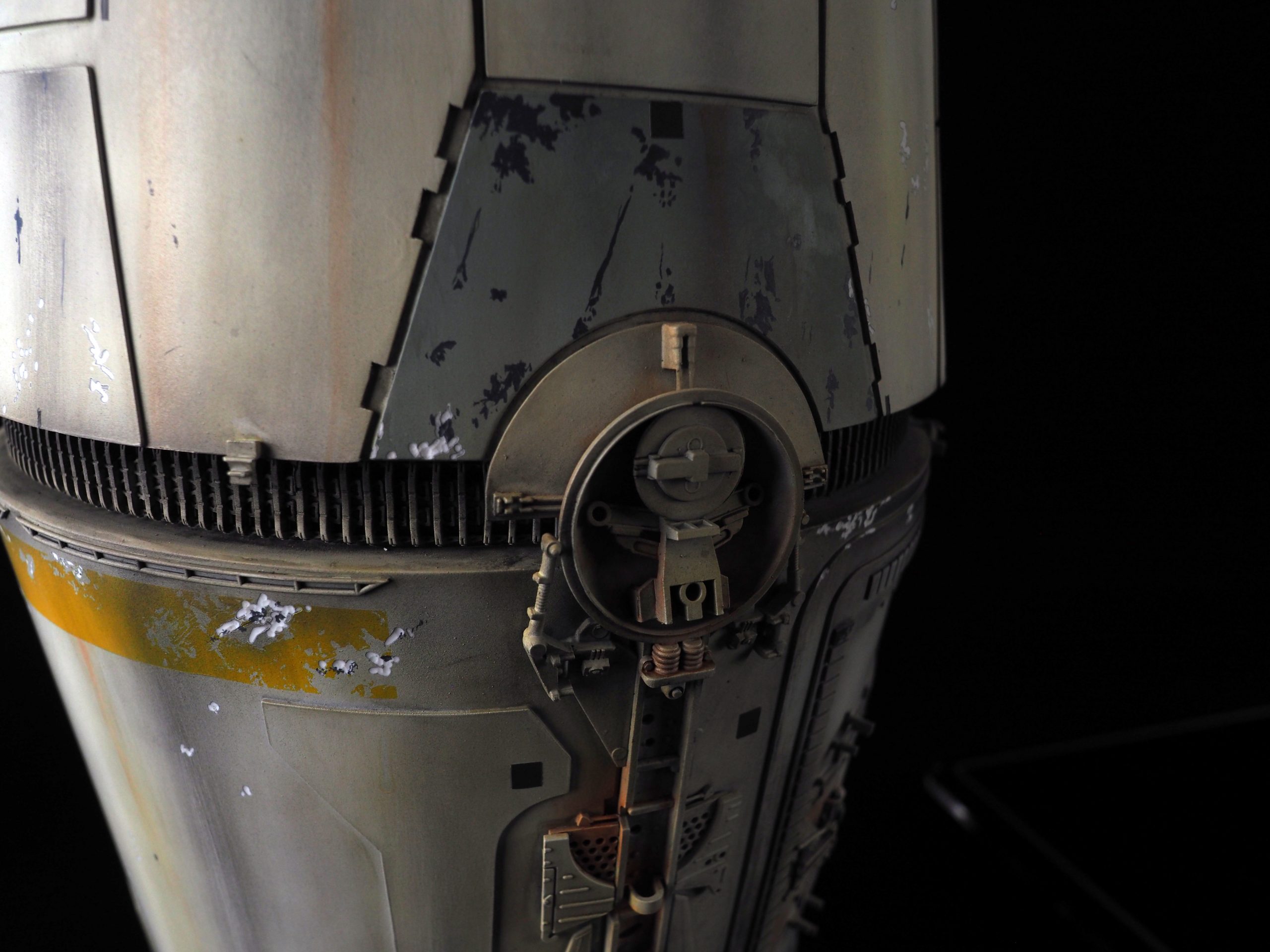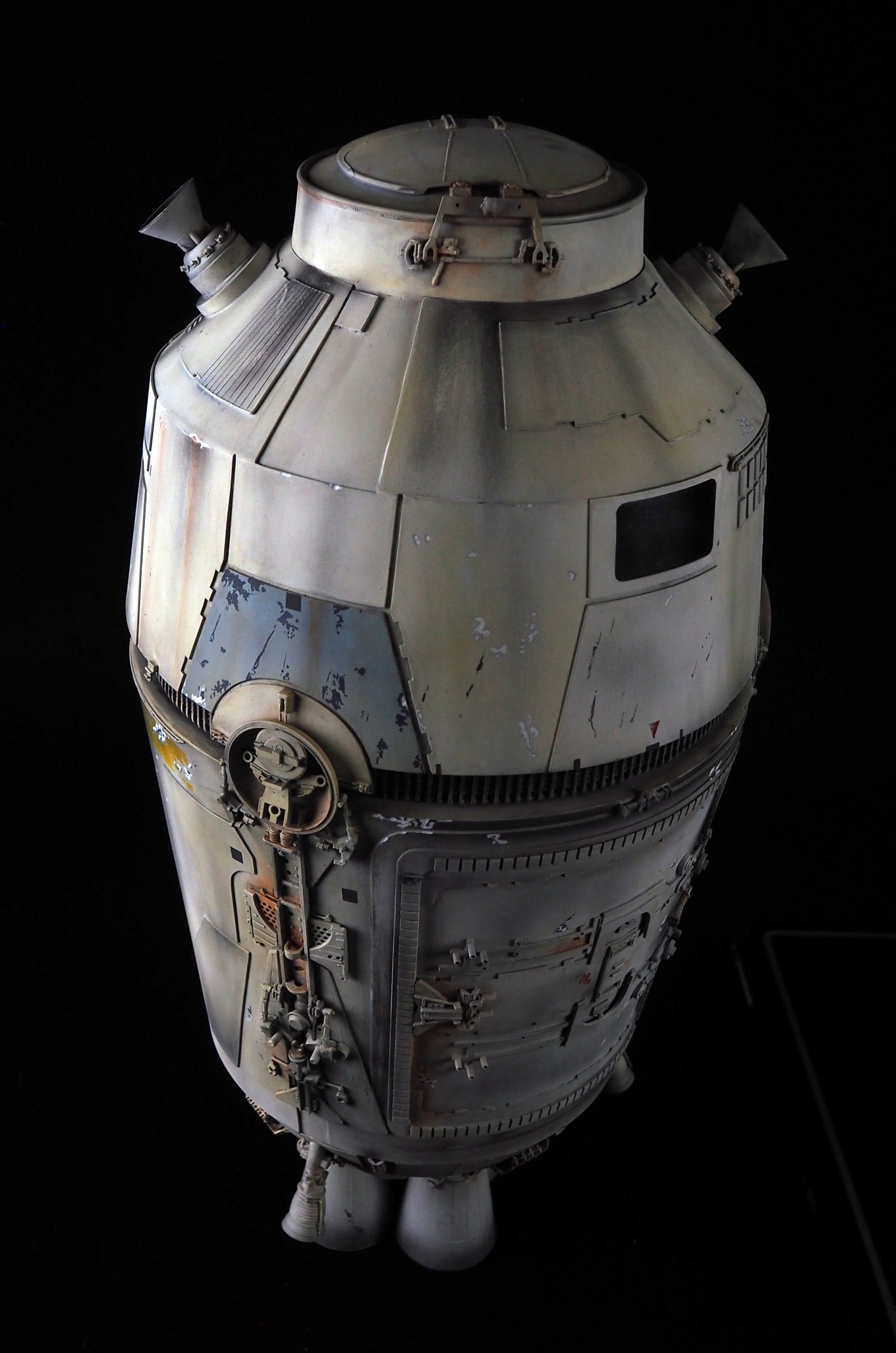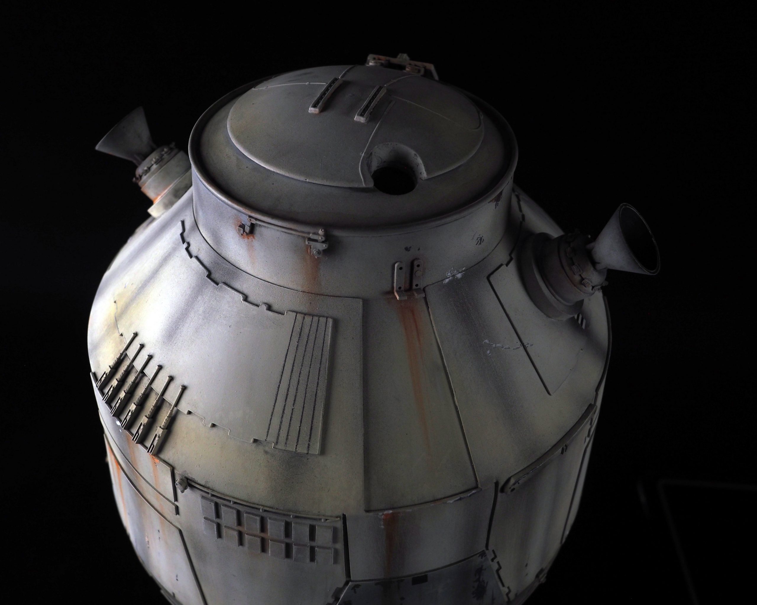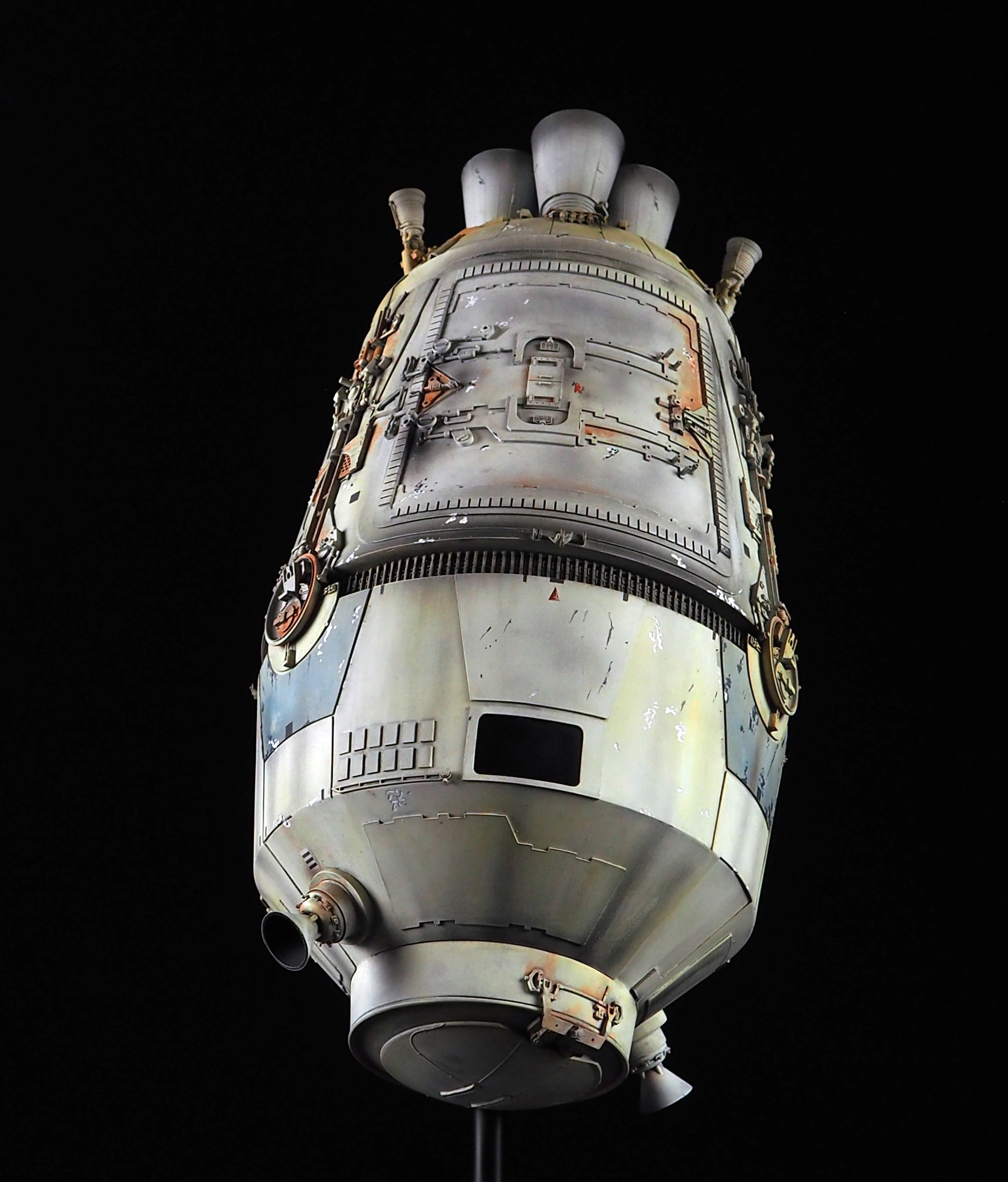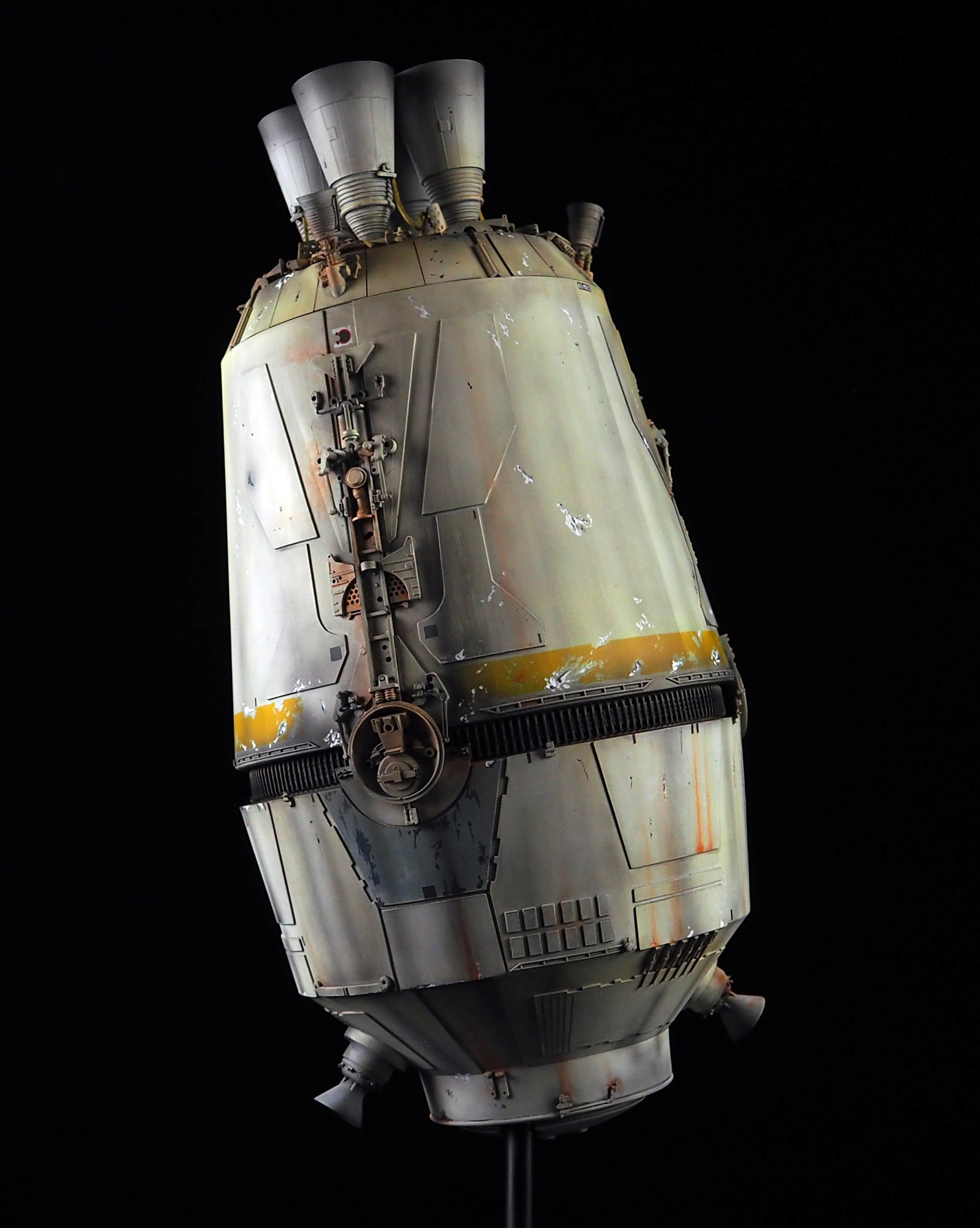 “This is a complete scratch build using zero resin. Every part is an original kit donor, which is grossly expensive and time consuming to source, but really makes the end results bulletproof. The bucket was made by skinning a skeletal framework that I purchased from Rob Bosnjak, as I was still a year away from having that 3D print capability in-house. Donor parts were trimmed a welded to each other and the styrene plating, and then everything was painted and weathered. This model features a lot of pock marked weathering which was made via a Dremel rotary tool. I can’t adequately describe how wonderful and satisfying it was to grind the paint off and expose the white styrene, as the original had been done. Dimensions and parts only happened because of the hard dedicated work of people like Craig Underwood, Ed Minto, and in this case, much like the ESB AT-ST, Quincy Cutshaw. Quincy was the first to finish a scratch built pod, and his is very much worth looking up, as his Wonderfest 2019 display was perfection. This model took four Sealabs to their graves, and now that I have put this project to rest, I feel a rare sense of total satisfaction that artists rarely get to enjoy.”