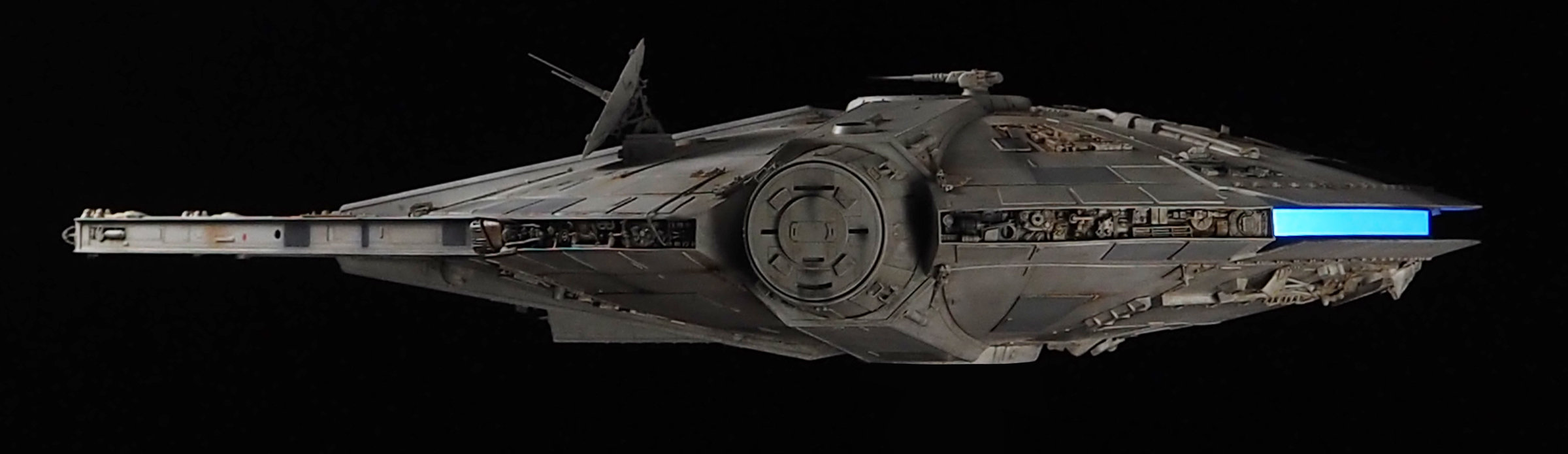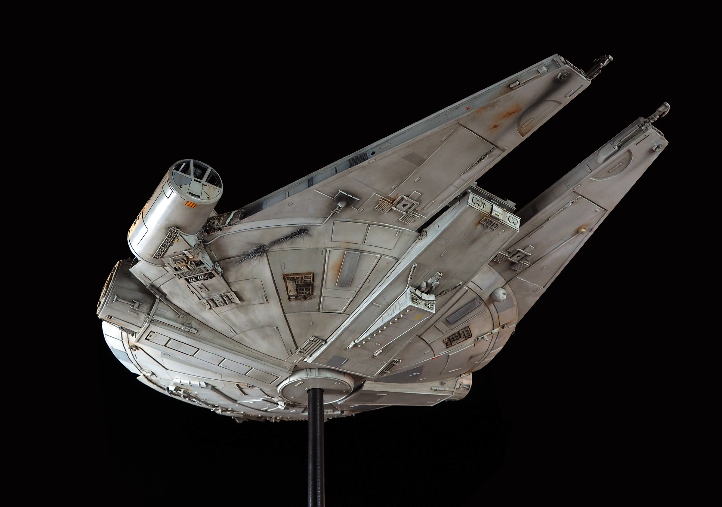 Larger than the Empire Strikes Back Studio Scale Millennium Falcon…. THIS is what dreams are made of….. the fantasy painting come to life! Artist Jason Eaton has AGAIN outdone himself with this magnificent beauty that is based on Ralph McQuarries works! Unveiled at 2017 Wonderfest this past weekend, this was yet another surprise and treat for all who attended! The line of this are precise… as Jason’s work always is! He is one of the world’s best model makers today… and it is apparent why in this piece alone. This is beautiful work!