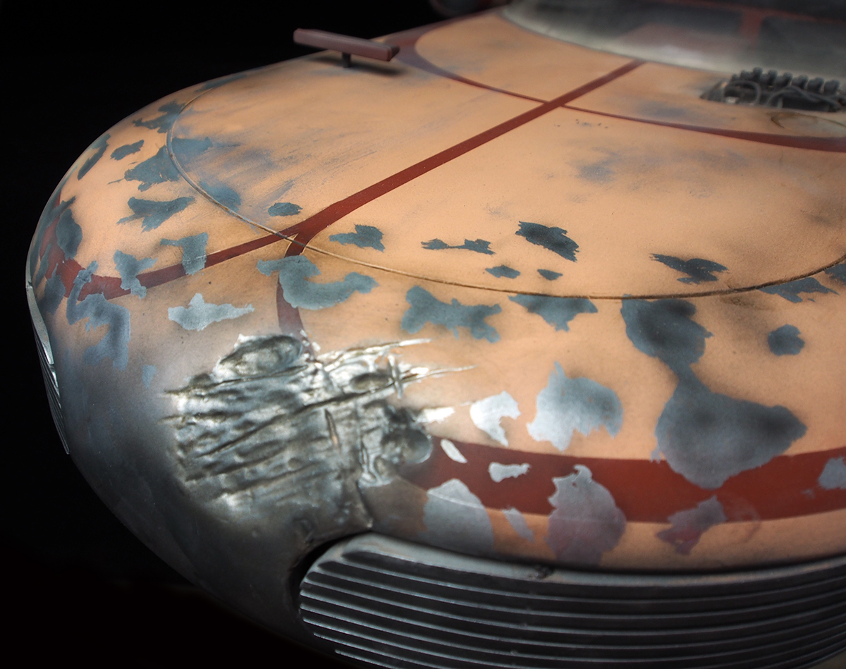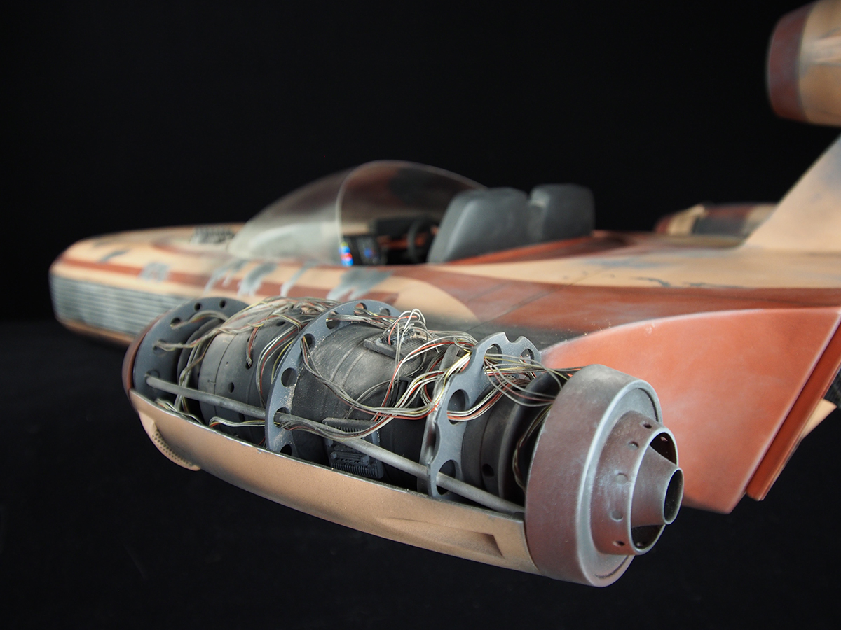 Magnificent! That is what I think out loud when I view this piece by Jason Eaton. Originally made from digital files by known artist Sean Corsini, this eventually was made into a physical studio scale kit that Jason then highly detailed to be like the original studio model… which is 1/5 scale. This piece is the exact sized used by ILM for Star Wars. Jason actually added more detail, making this piece to look more like the full sized prop…. and I love it! Beautiful work by Jason Eaton!