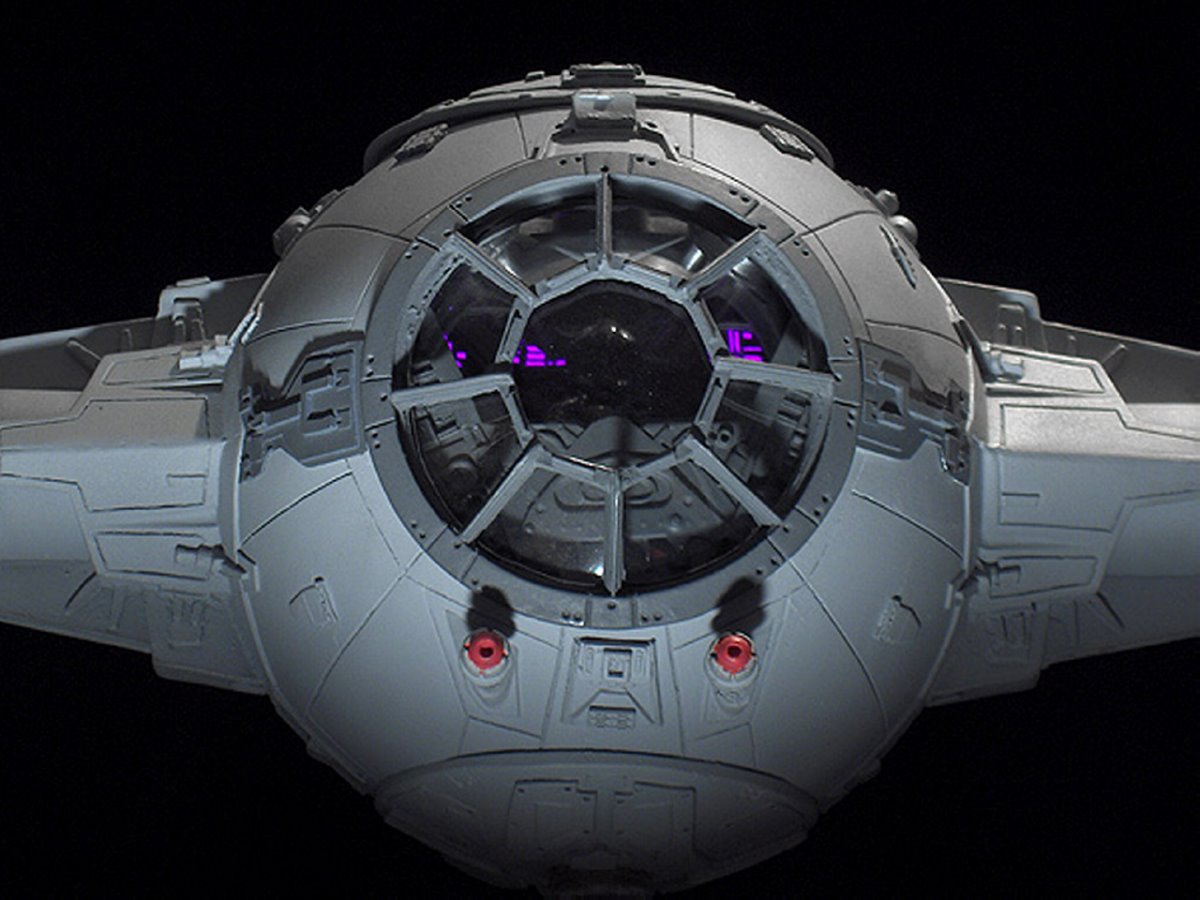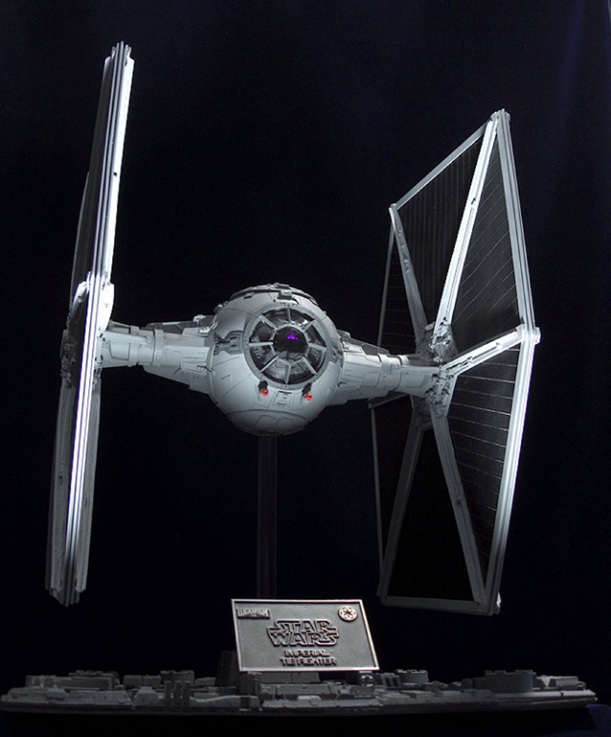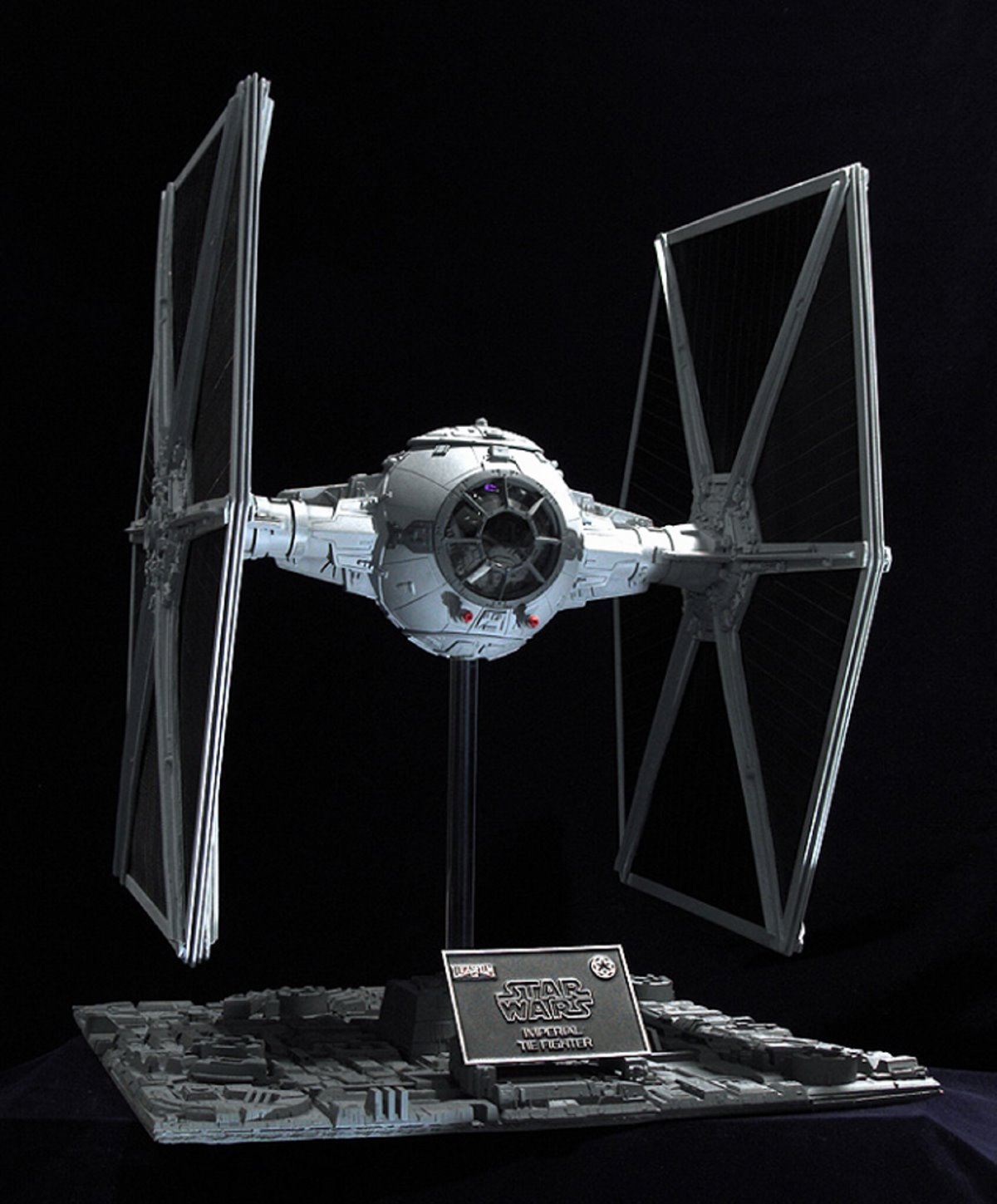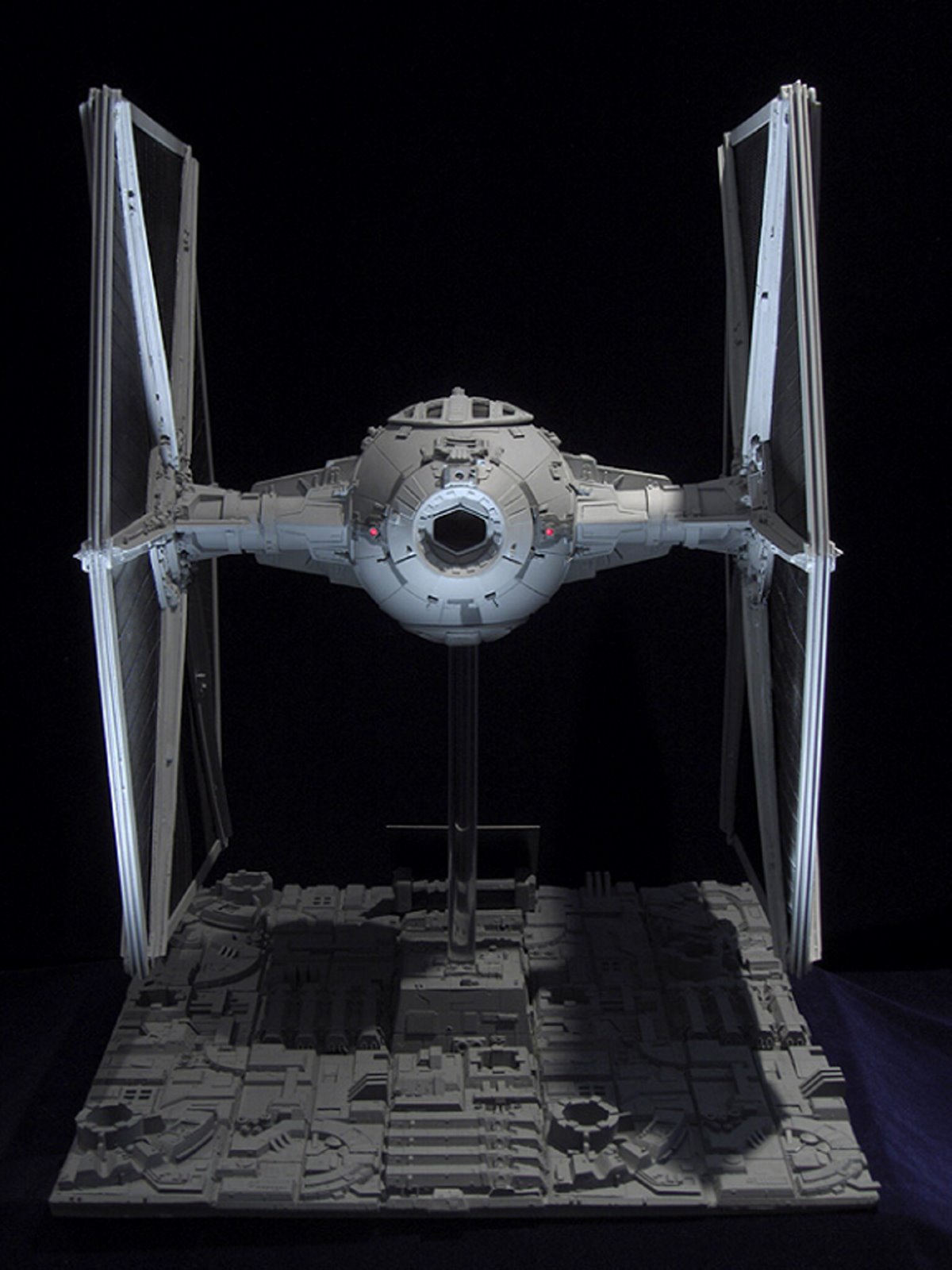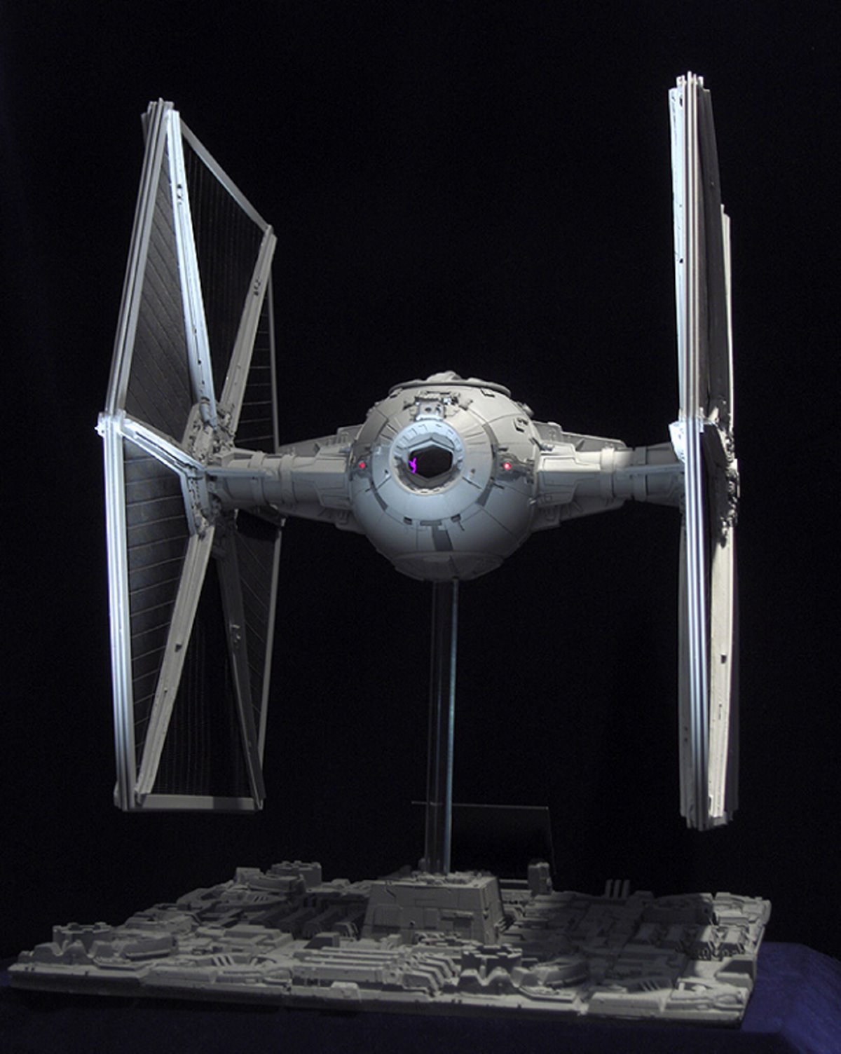 Artist Jerry Vasilatos built this beautiful piece over 11 years ago from the Nice-N Model Designs studio scale TIE Fighter Kit! I love the interior lighting he placed in it!