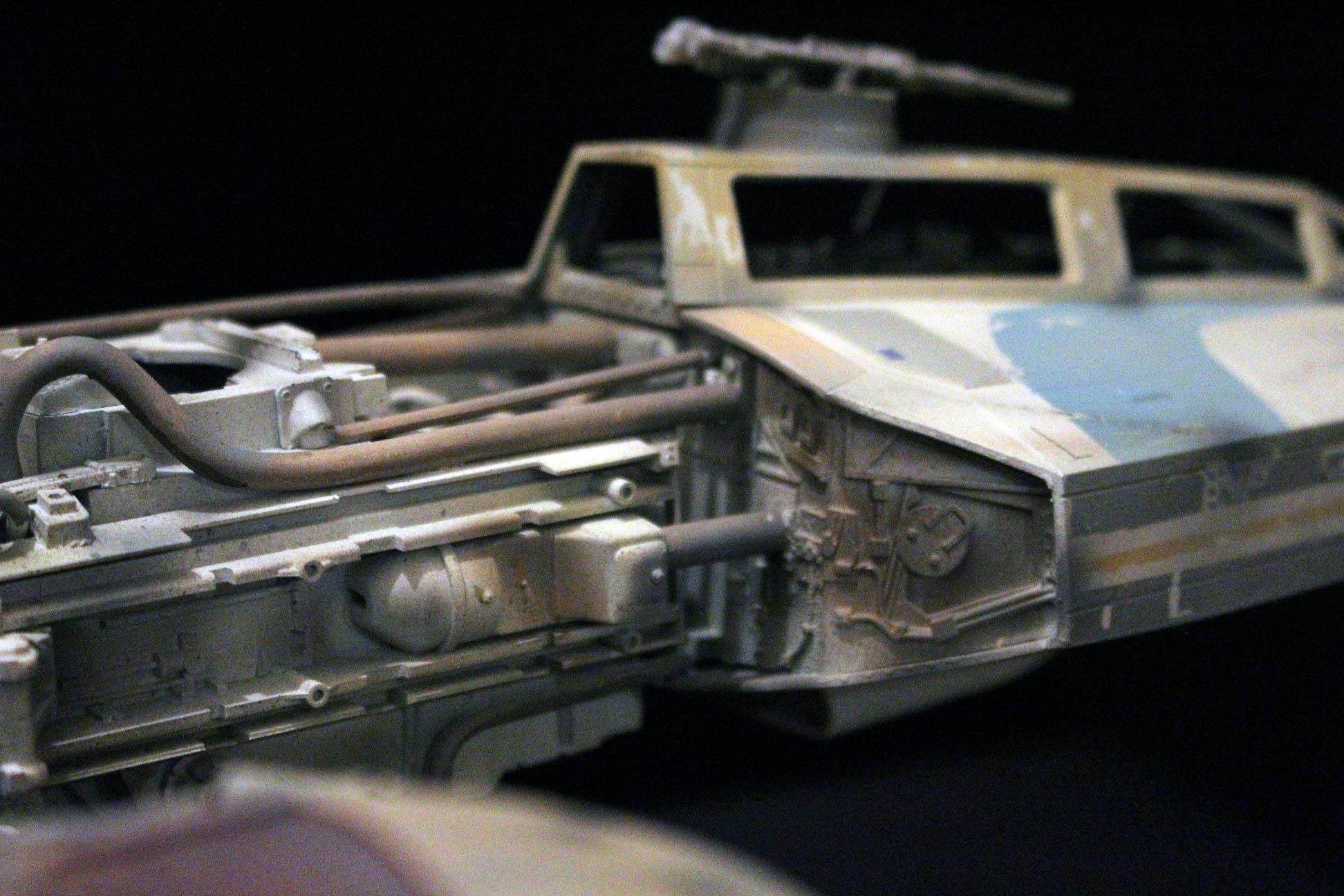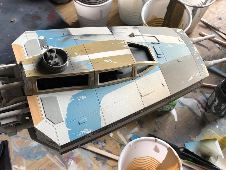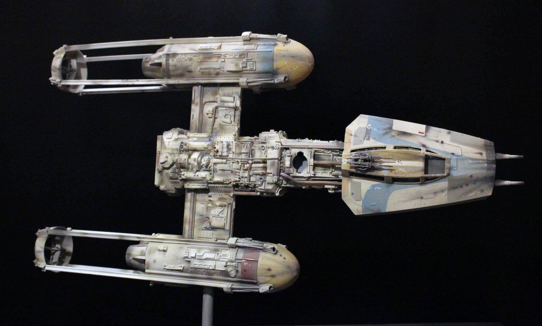 This is mixed media, one of a kind 1/24 Y-wing. The armature and cockpit were from Dave G’s open source files from the RPF. The engine fronts (the Eggs) were 3D printed by Nicholas Sagan. The greeblies were all 70’s era model kit parts either from resin or styrene. It isn’t 100% accurate to any of the studio scale original models, so I thought I’d add my own greeblies, pipe work, and paint job using archive X paints.