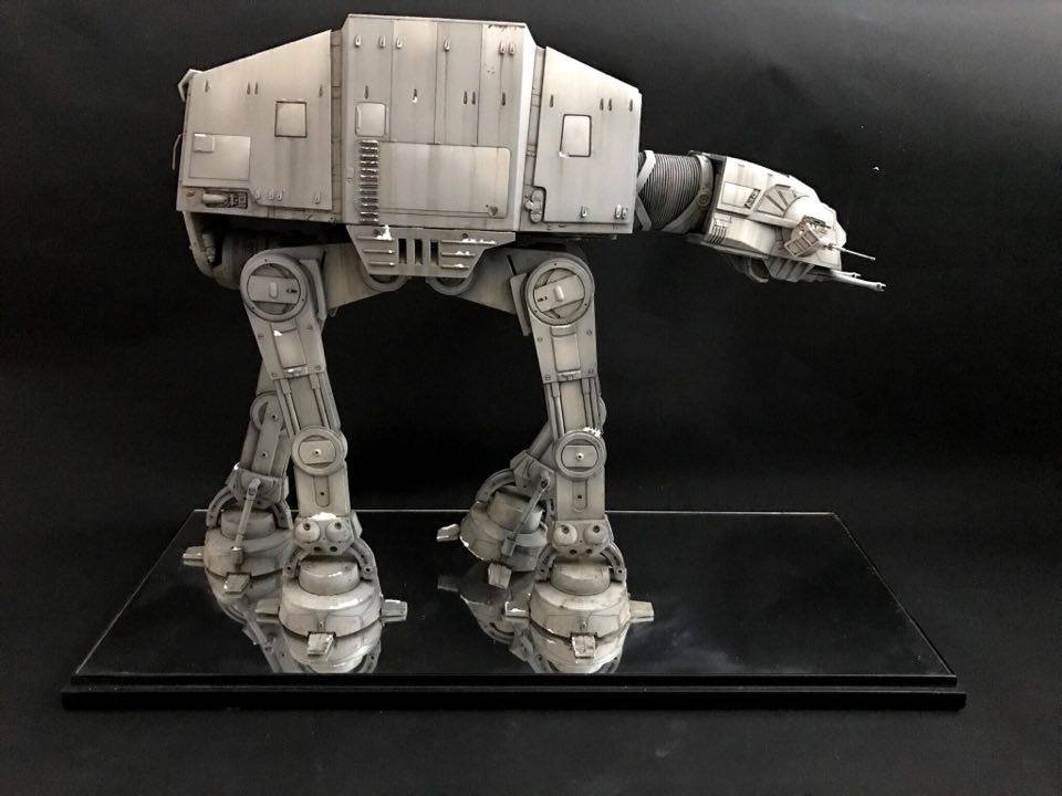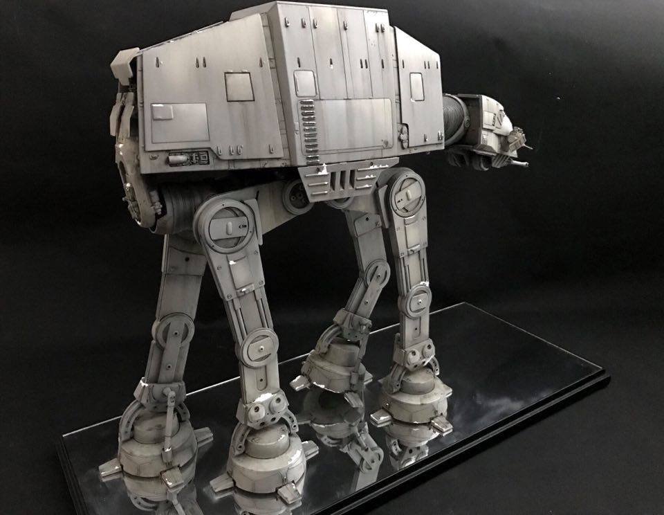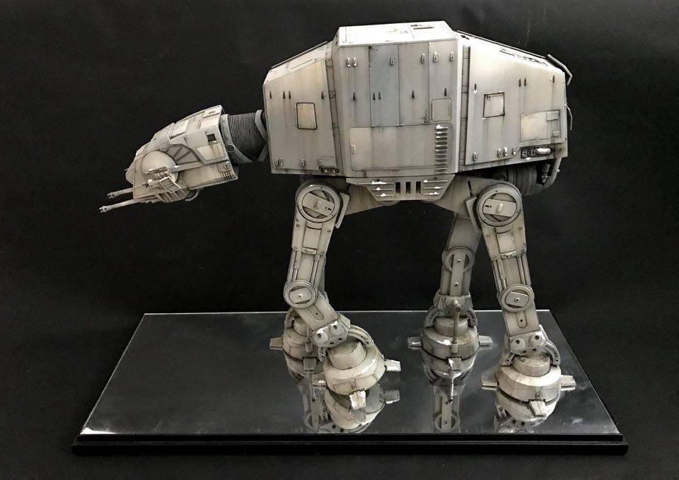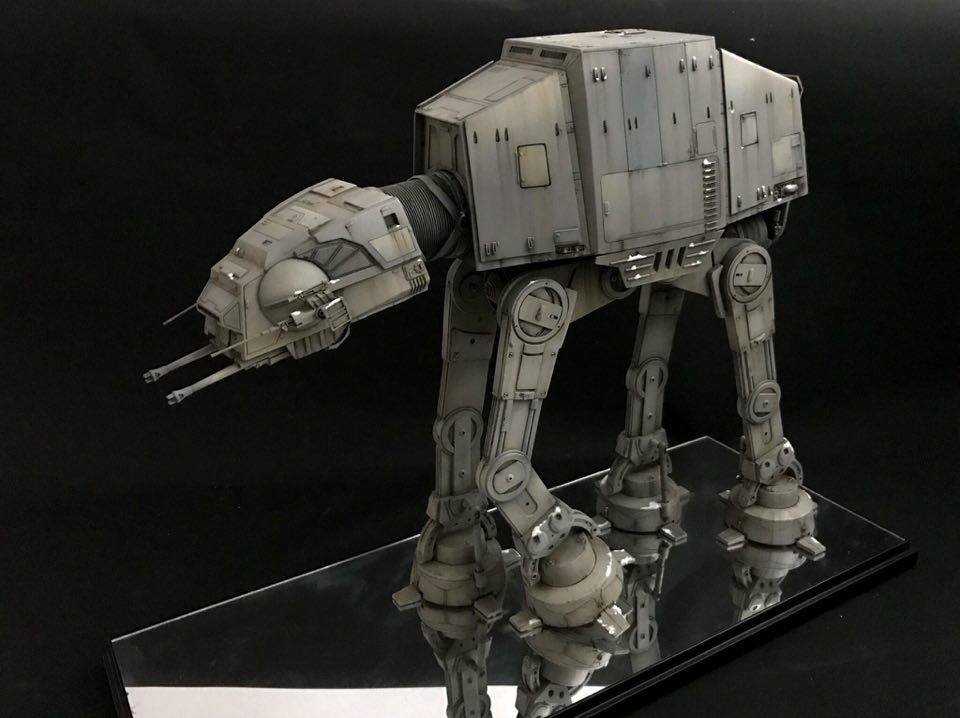 Here is yet another amazing piece by artist John Simmons… the studio scale “AT-AT” Imperial Walker as seen in Star Wars: The Empire Strikes Back. This looks like it could be the old Master Replicas released model that has been re-painted and weathered to look like those we first saw in the film. Beautiful work.