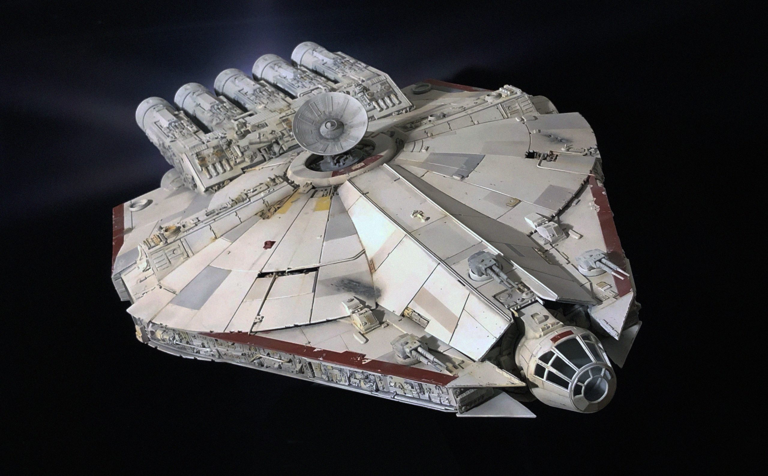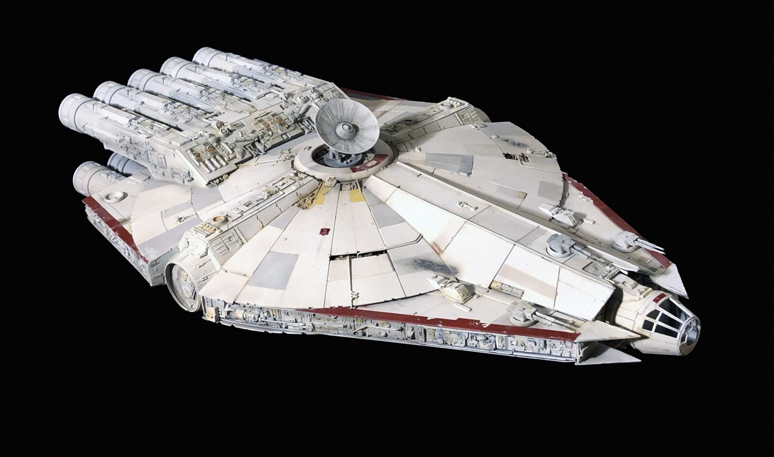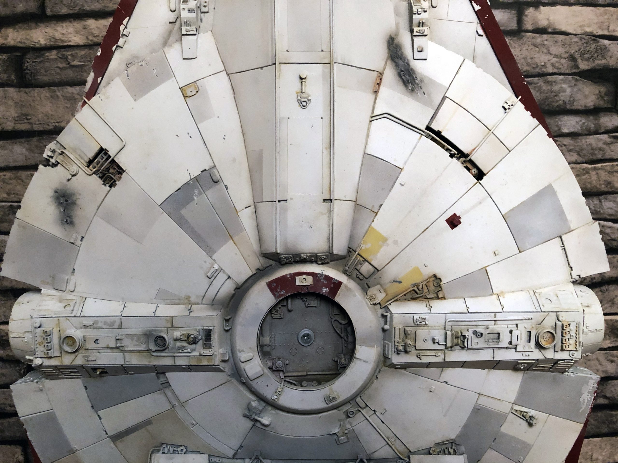 This is model is based on a sketch that appeared in The Art of Solo: A Star Wars Film book which shows an artist sketching a version of the Millennium Falcon halfway between the Pirate Ship model (which later became the Blockade Runner) & the now familiar Falcon as we know it. The artist is believed to be Joe Johnston, but he can’t remember having it taken.