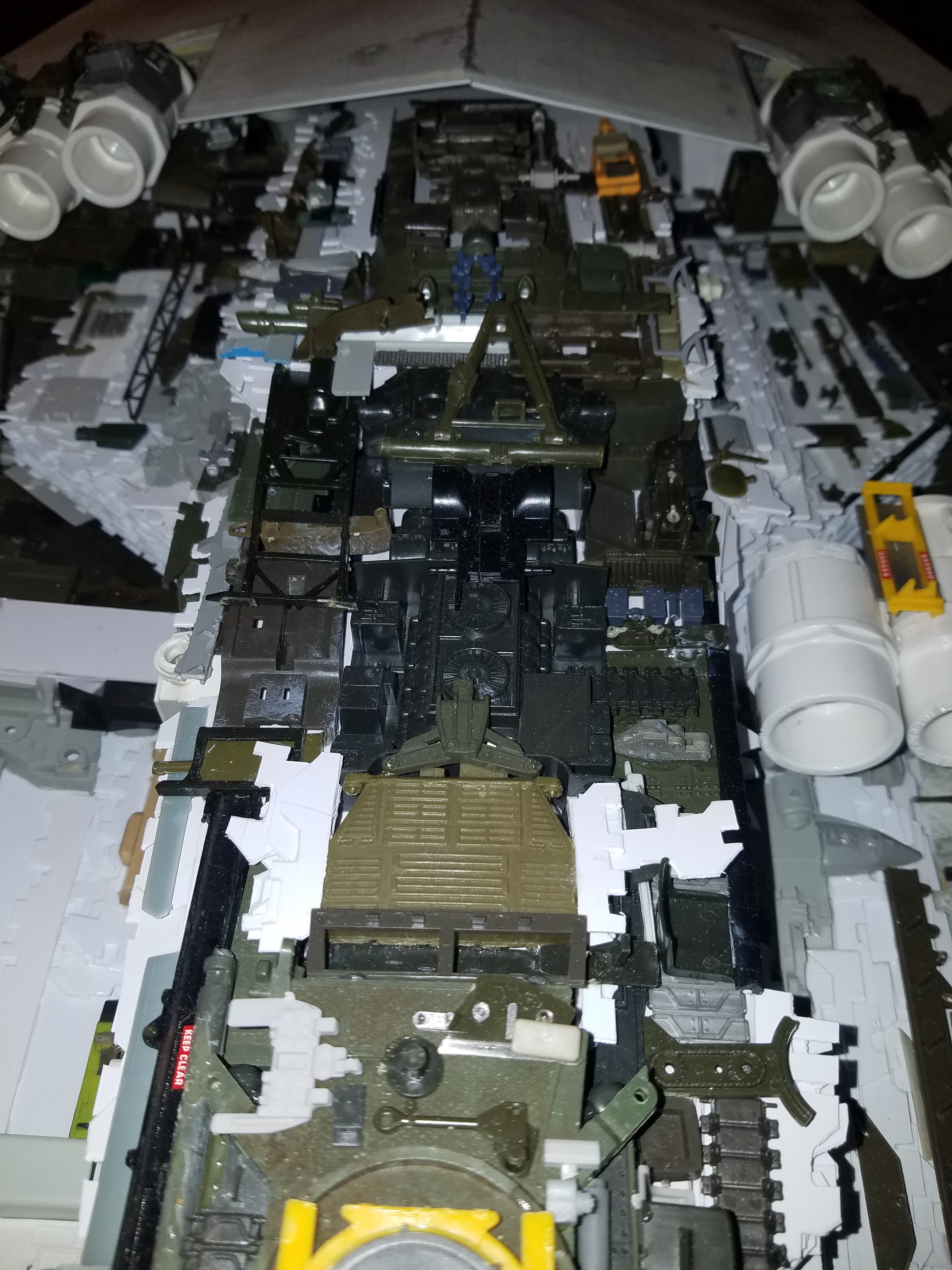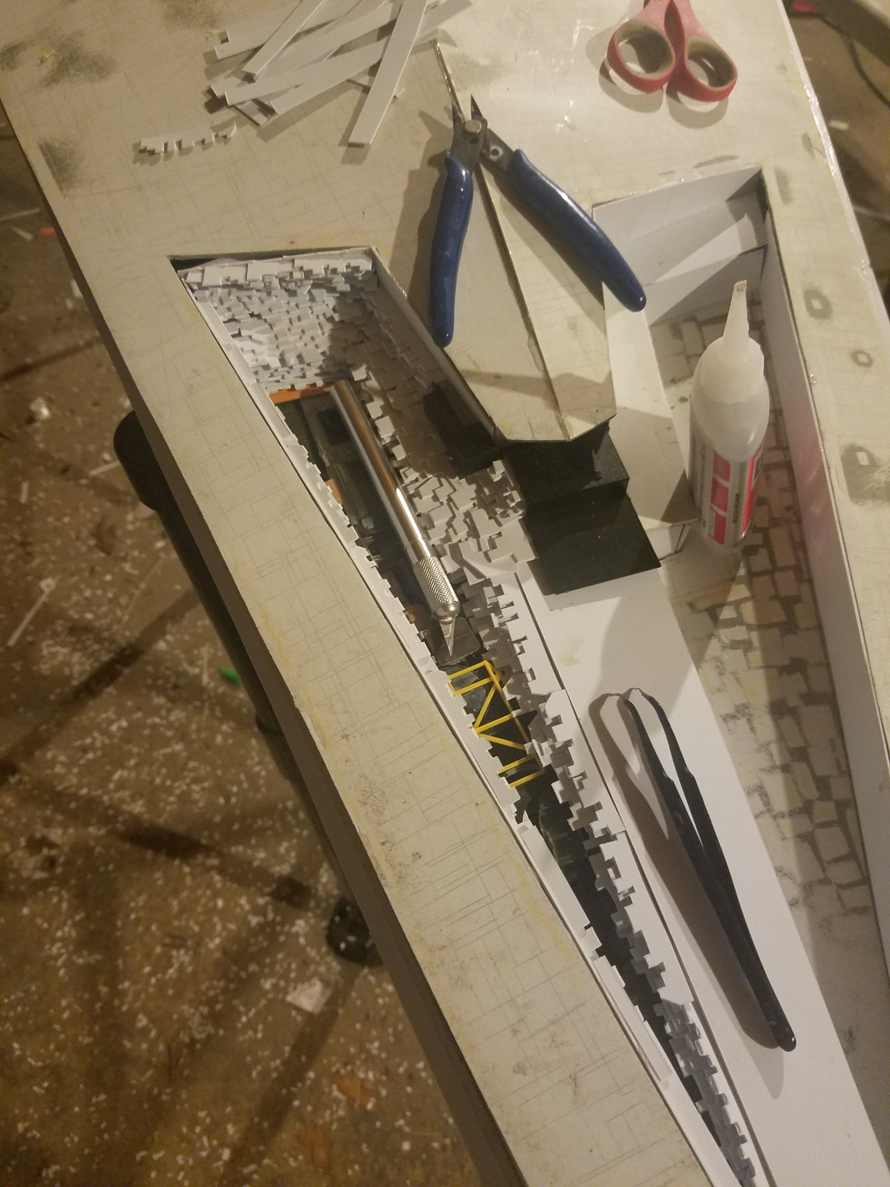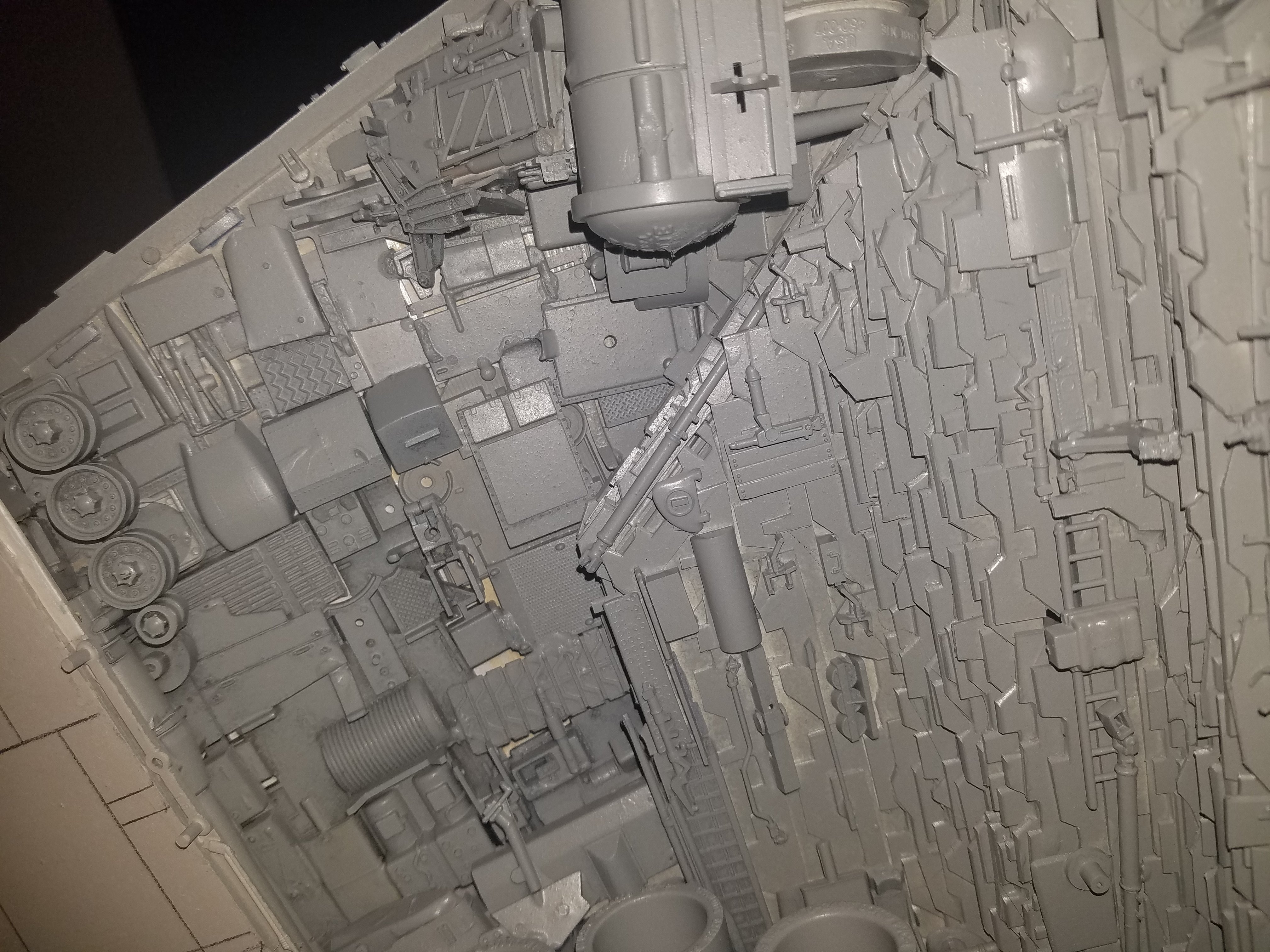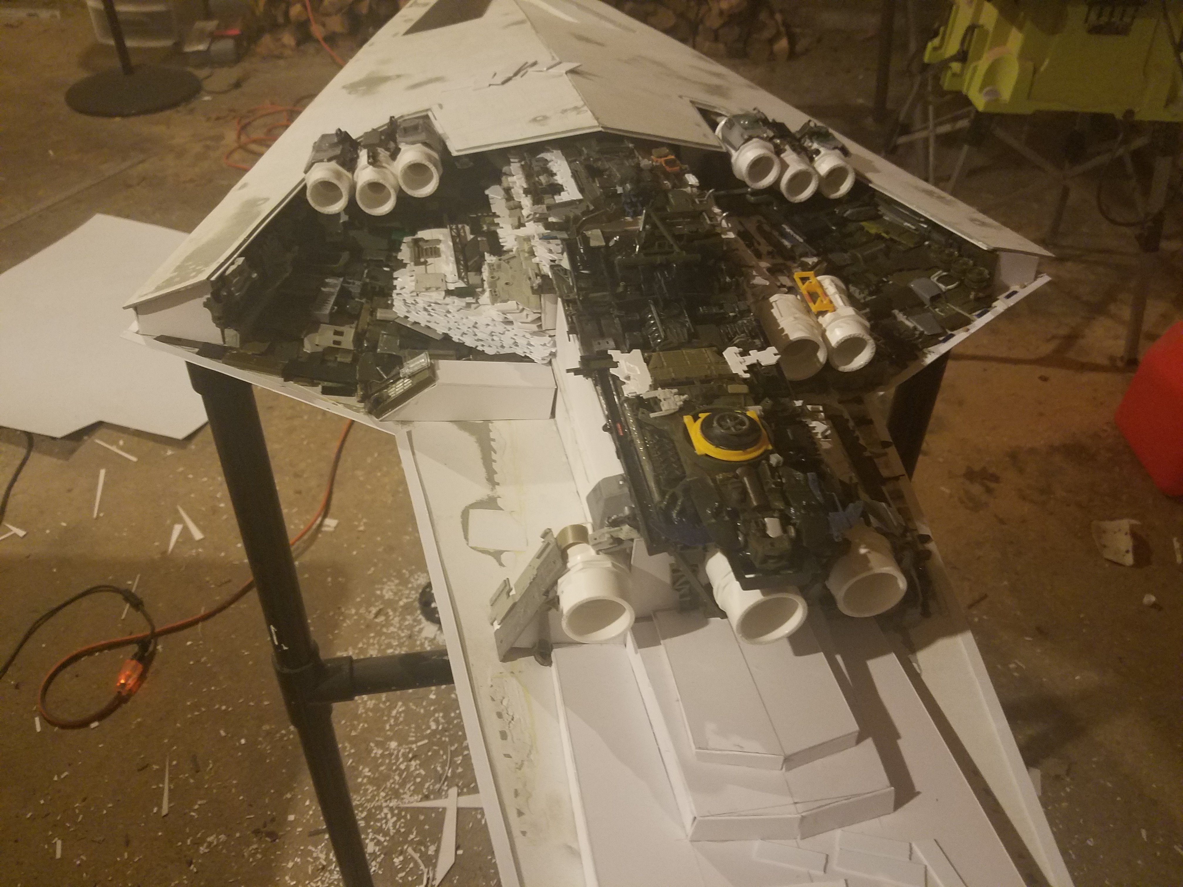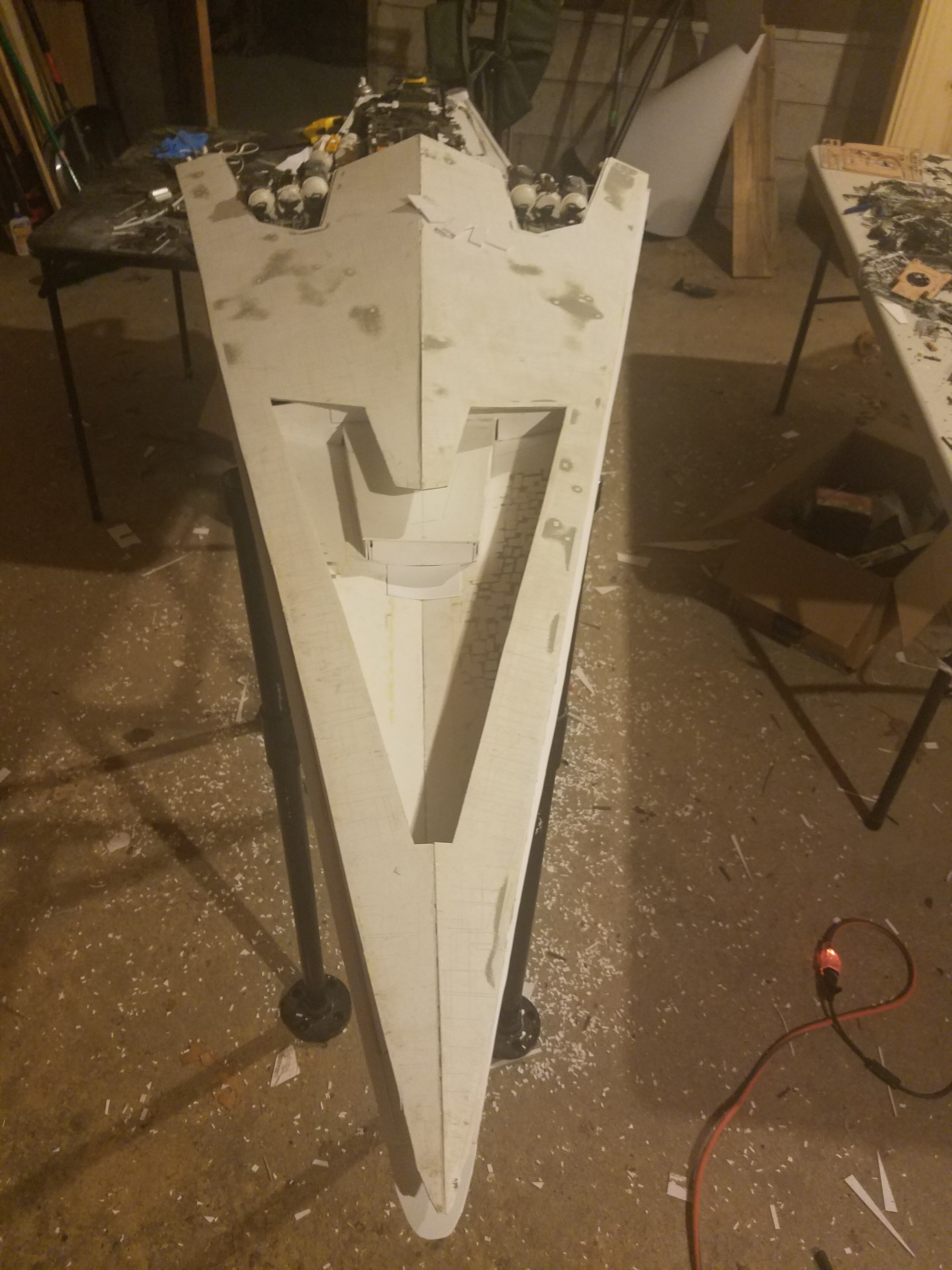 I finally completed my six foot long Empire Strikes Back Super Star Destroyer Build. It took just over a year to complete due to the exceedingly heavy detailing. Each piece of plastic I cut by hand and glued onto the model as well as parts from hundreds of various kits. Luckily I was able to find a seller on eBay selling boxes full of miscellaneous model parts for cheap. I had originally built this model a few years ago when I was just out of college and have been staring at it for years because I wasn’t quite happy with it. Being that this is my favorite ship of all time I had to do something about that so I ripped apart and started over. I saved the hulls but that was about it. Everything else was built up from scratch. The best part was trying to create the organized chaos look in the cityscape with all the structures kind of blending together yet looking like separate pieces still. I think overall I achieved the look I was going for and am pleased with the final result after all these years.