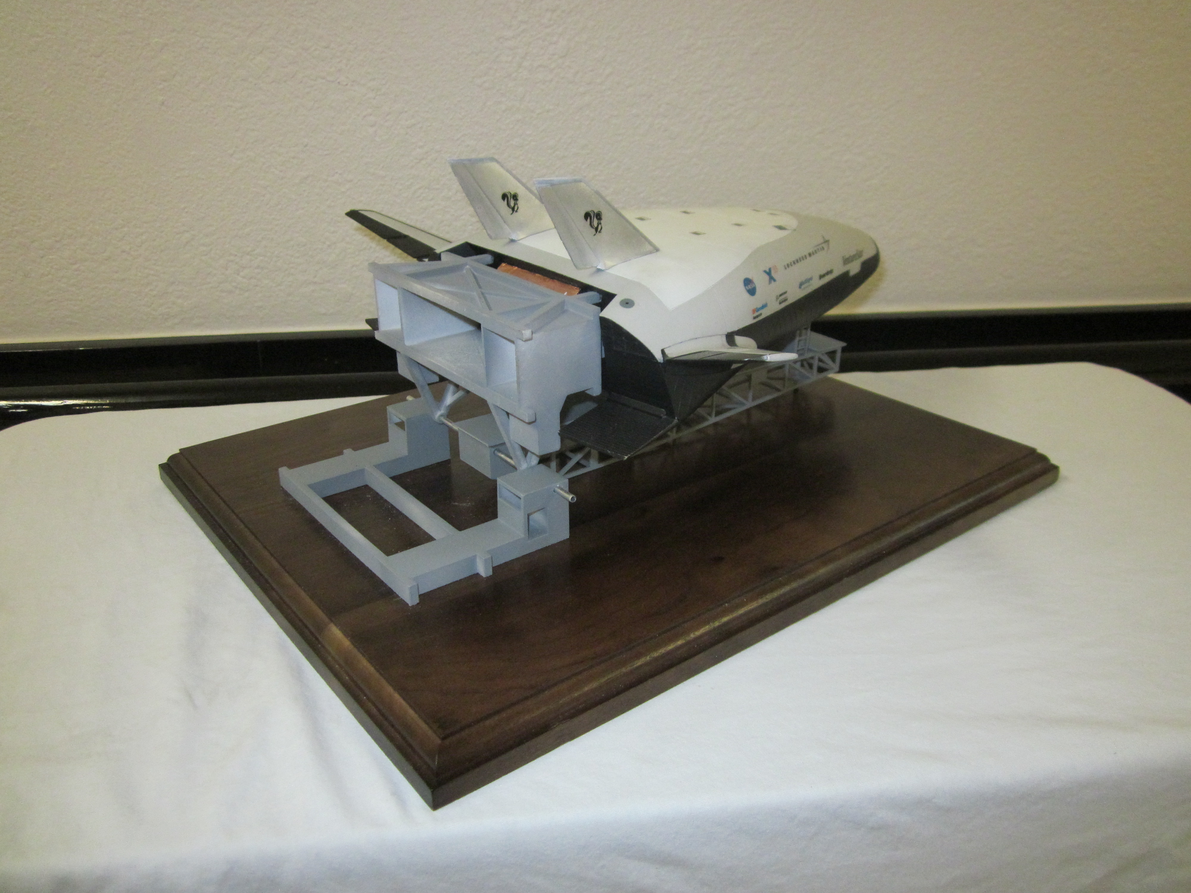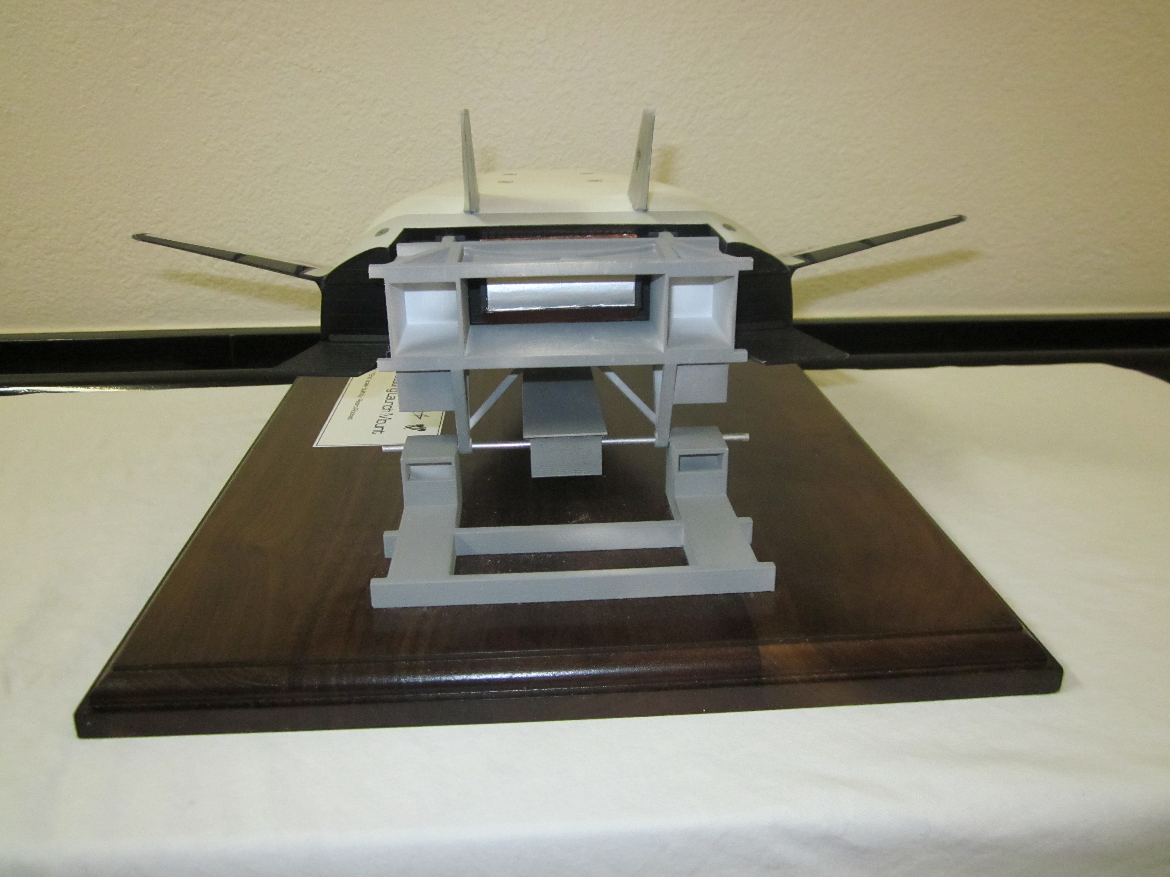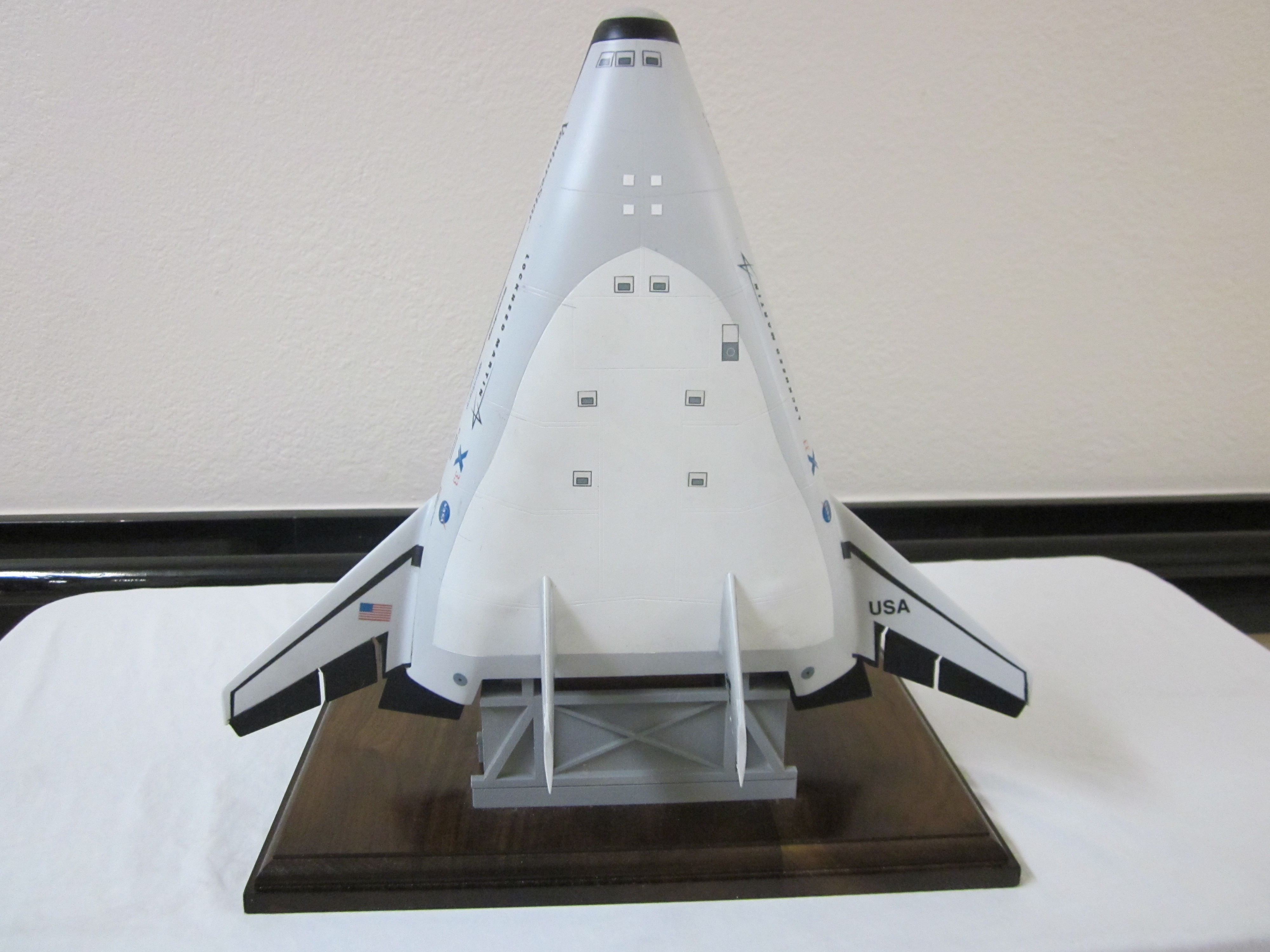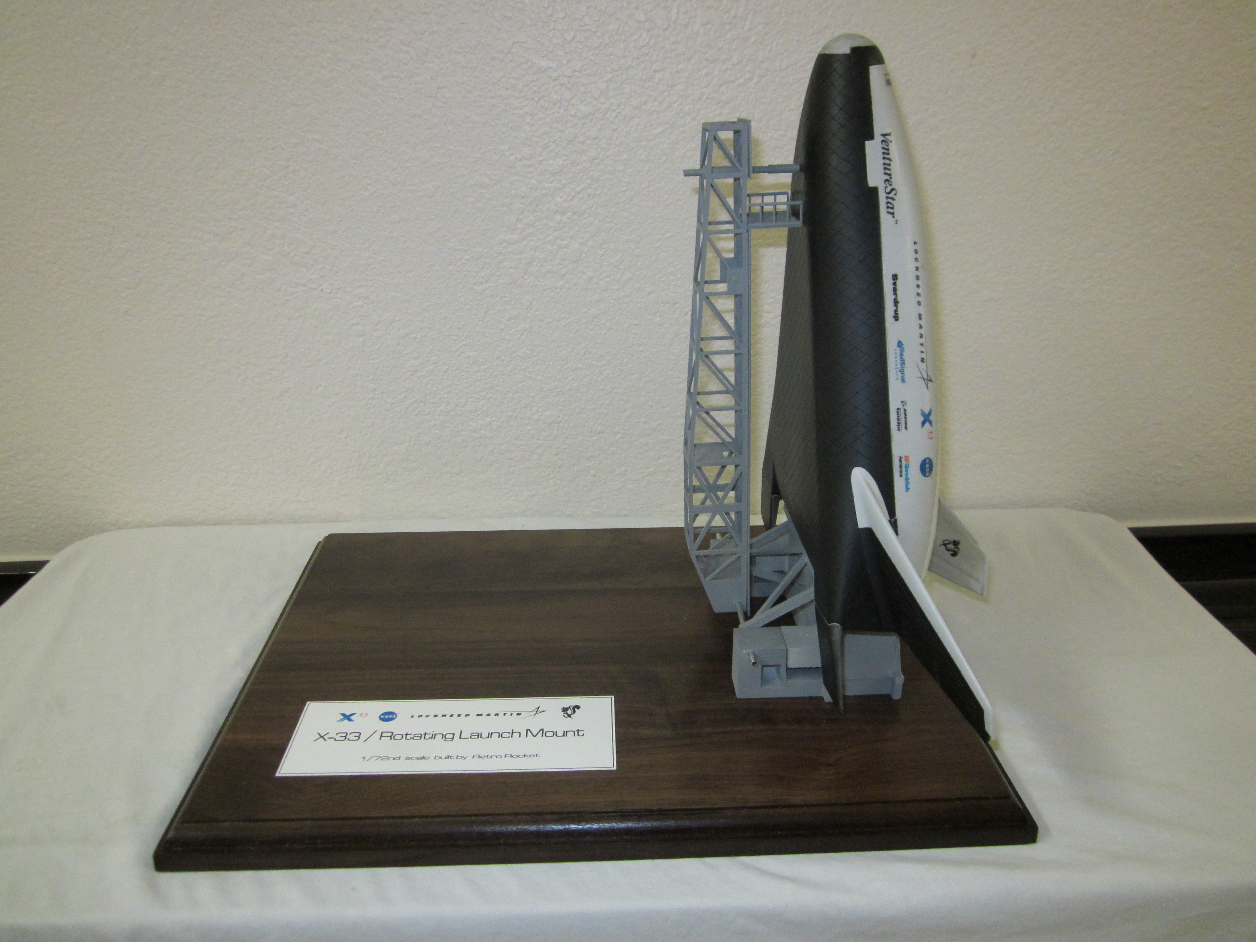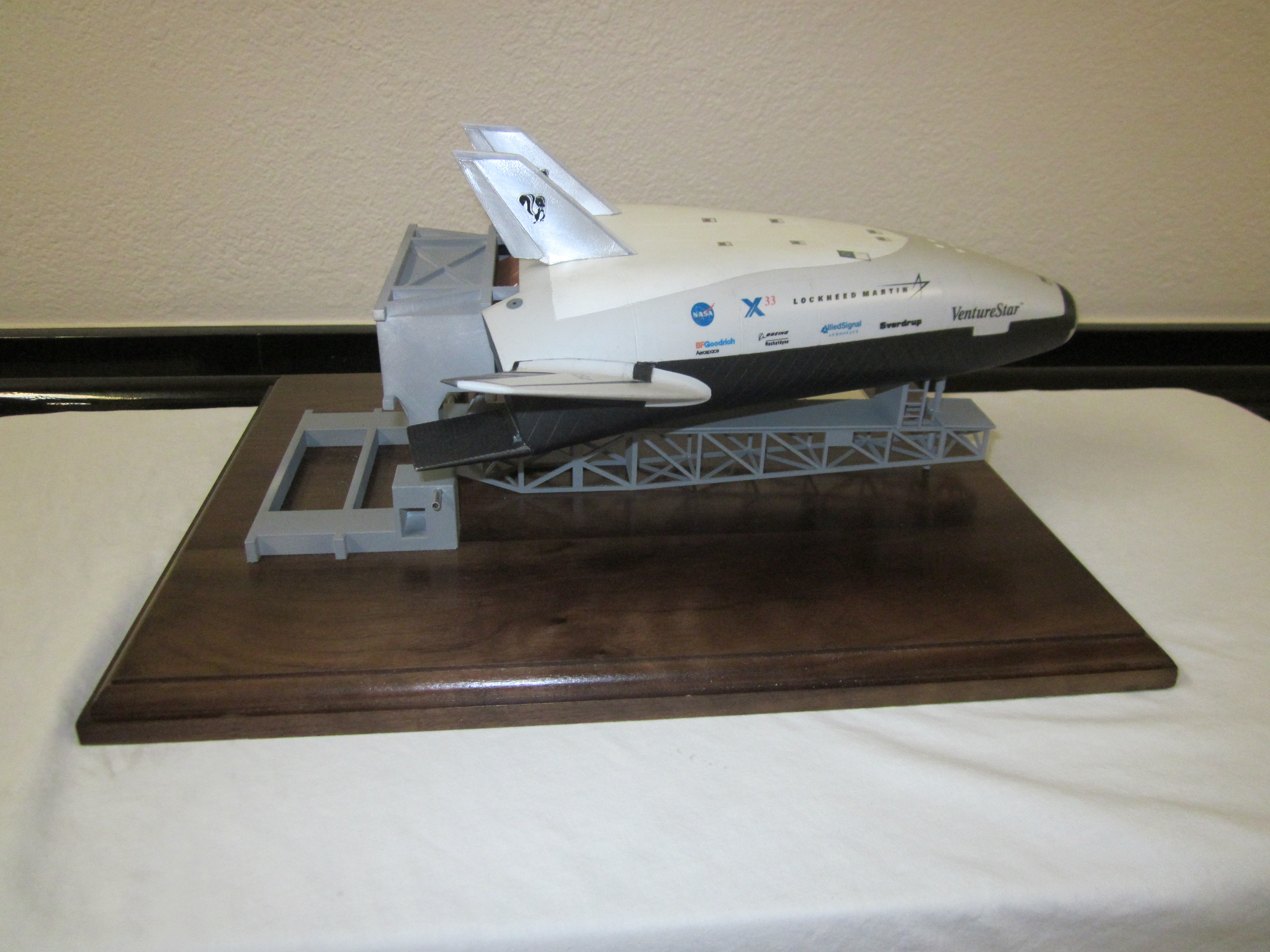 Everything starts with an accurate CAD model, either supplied or created by me. Then I’ll have parts built using different Rapid Prototyping processes and my talented group of subcontractors. This model is a 1/72nd version of the X-33 I mastered for Fantastic Plastic. I scribed in all the lines and details just like the contract models for NASA. Although the original idea was to have the Rotating Launch Mount in the kit it was too expensive. For this model I printed out my own RLM and mounted it on the wood base. I had the parts done at Shapeways and if anyone wants to do the same I’ll put them up so they can be ordered.