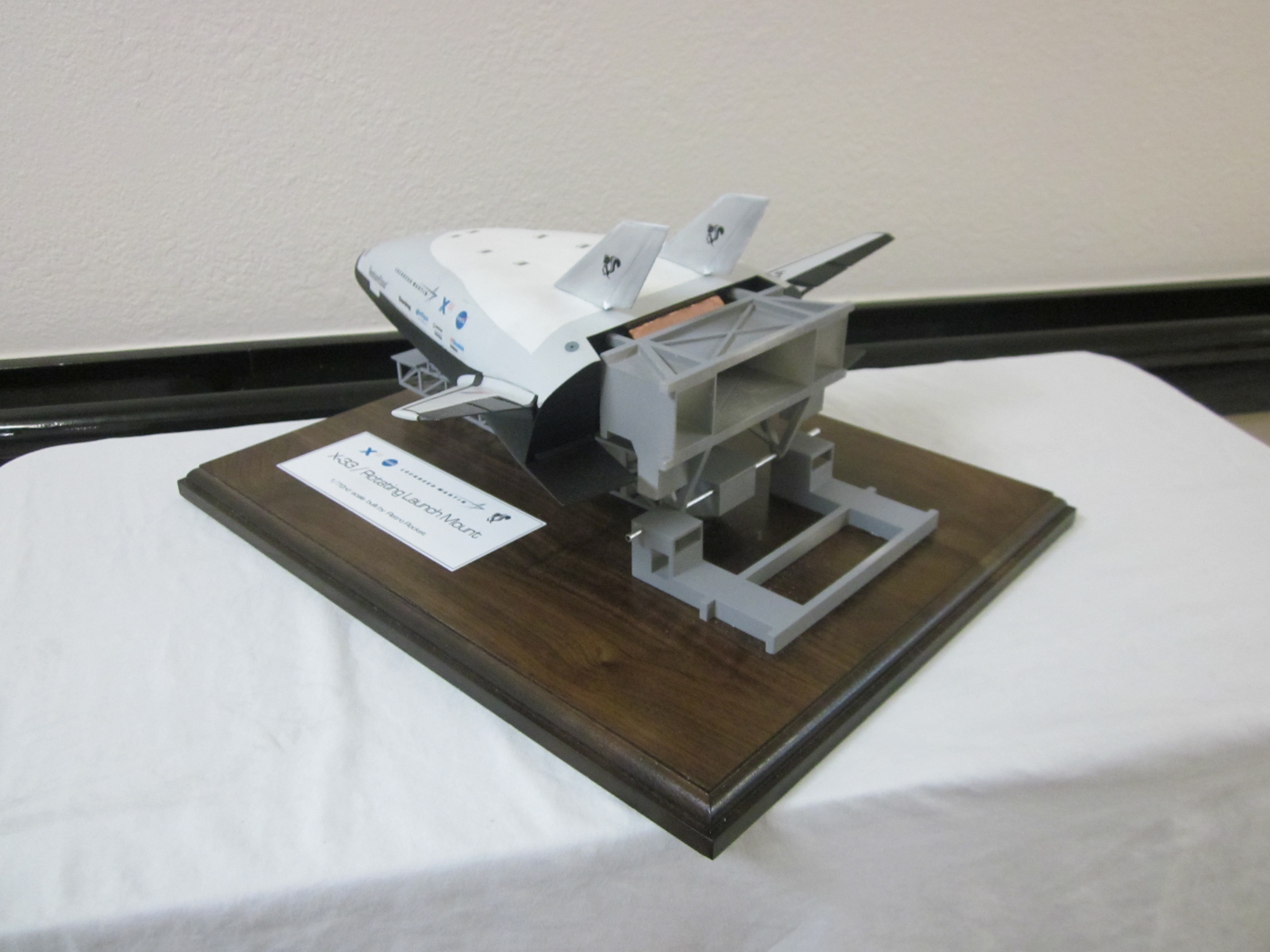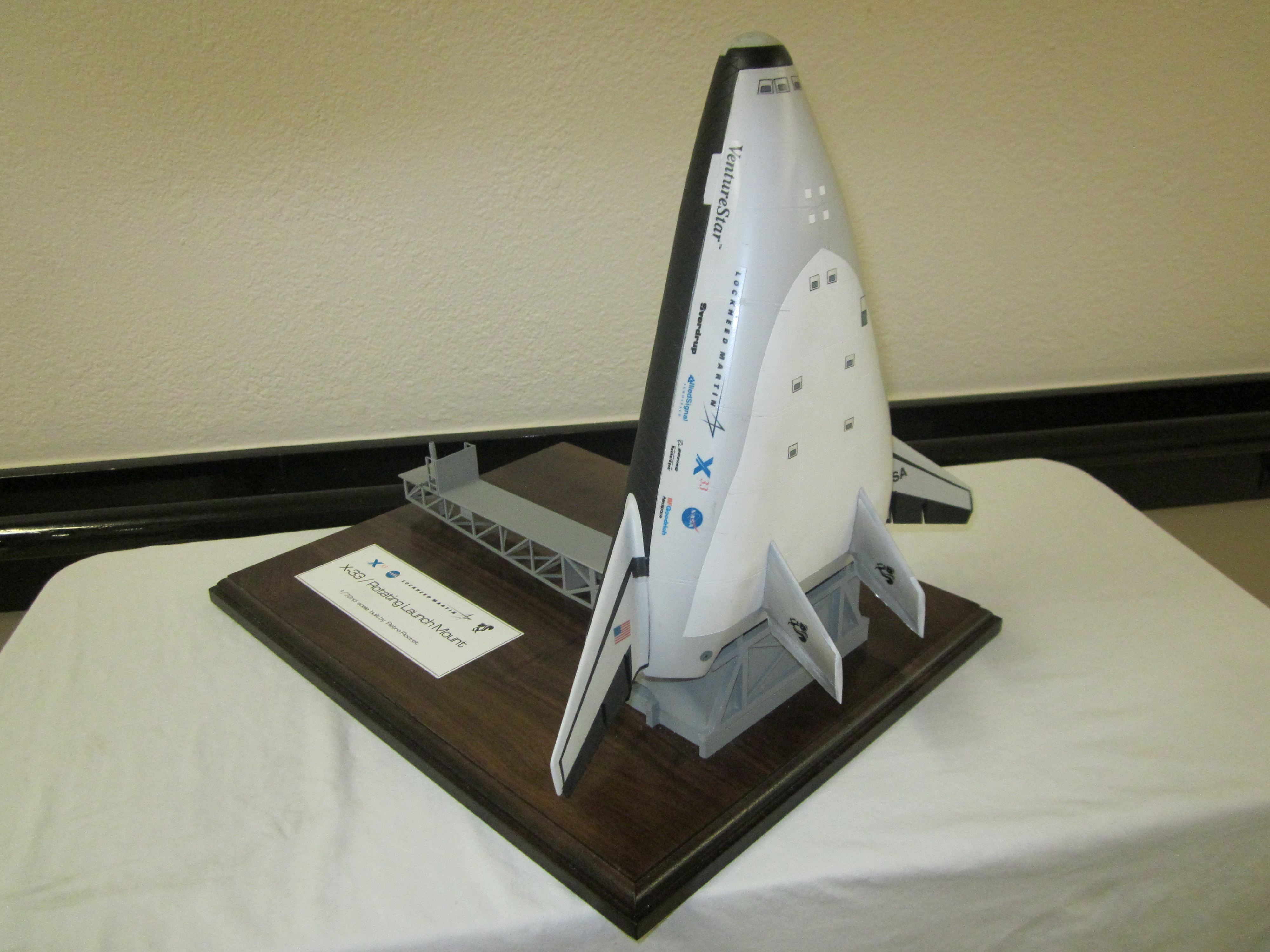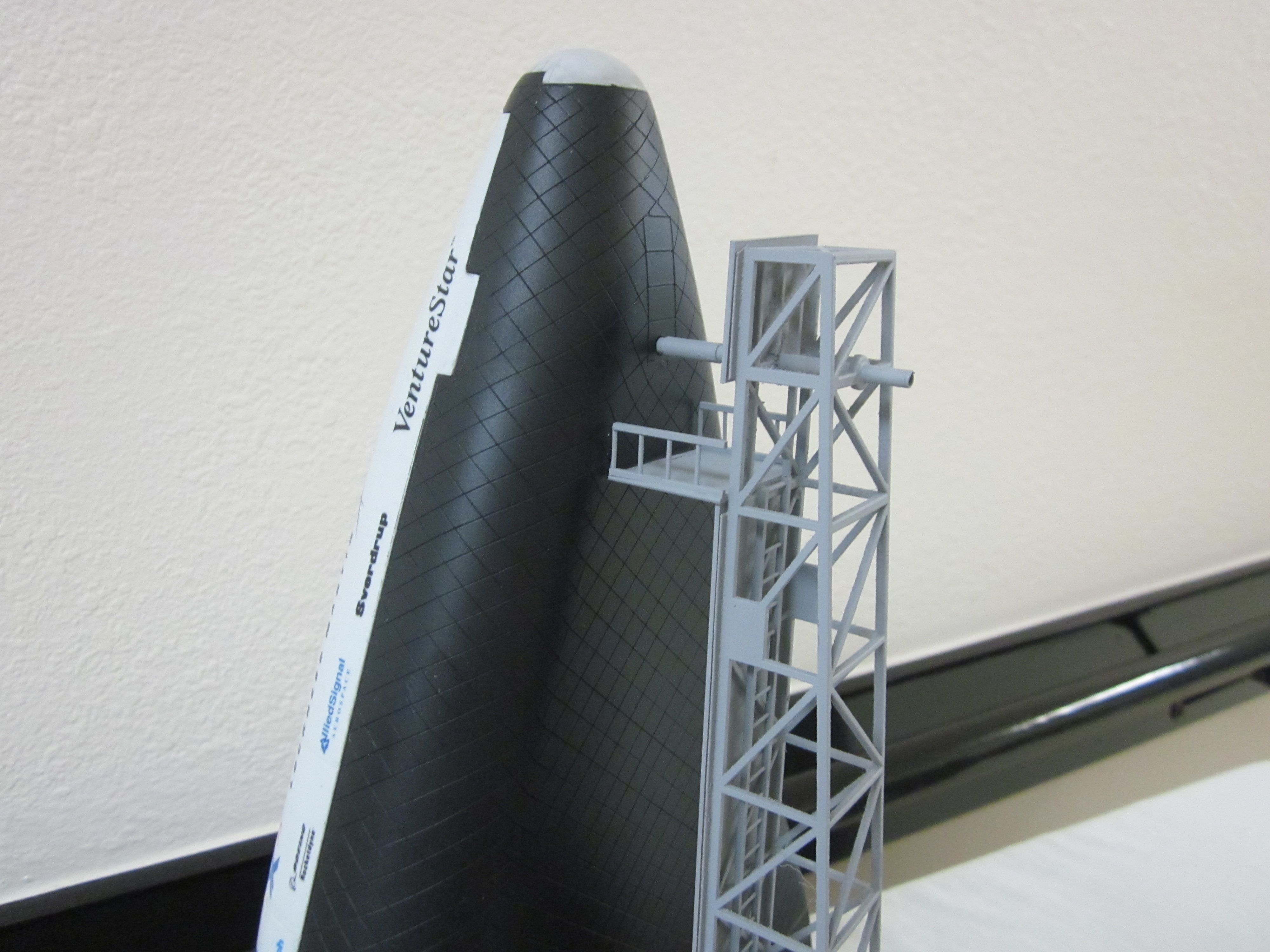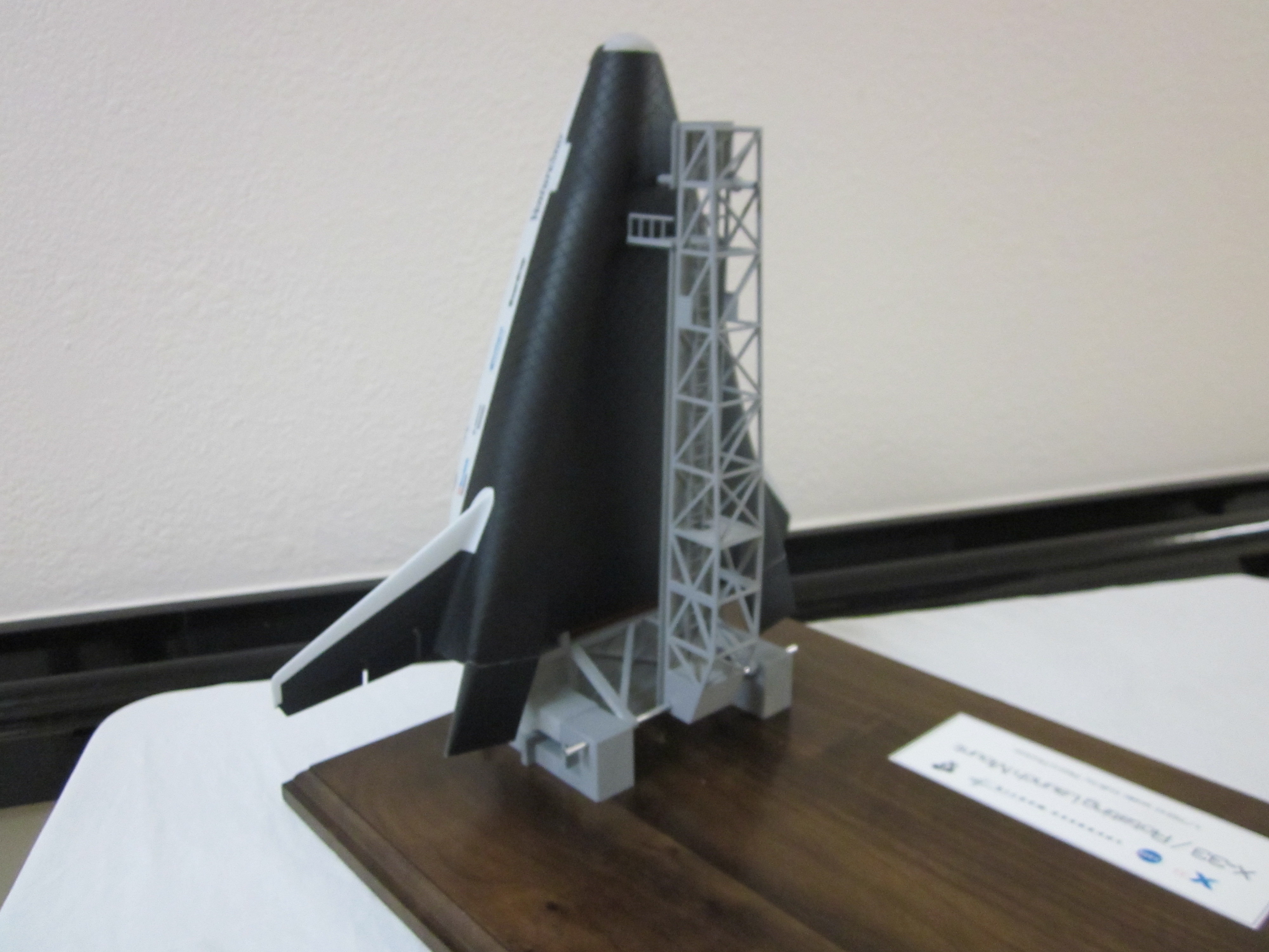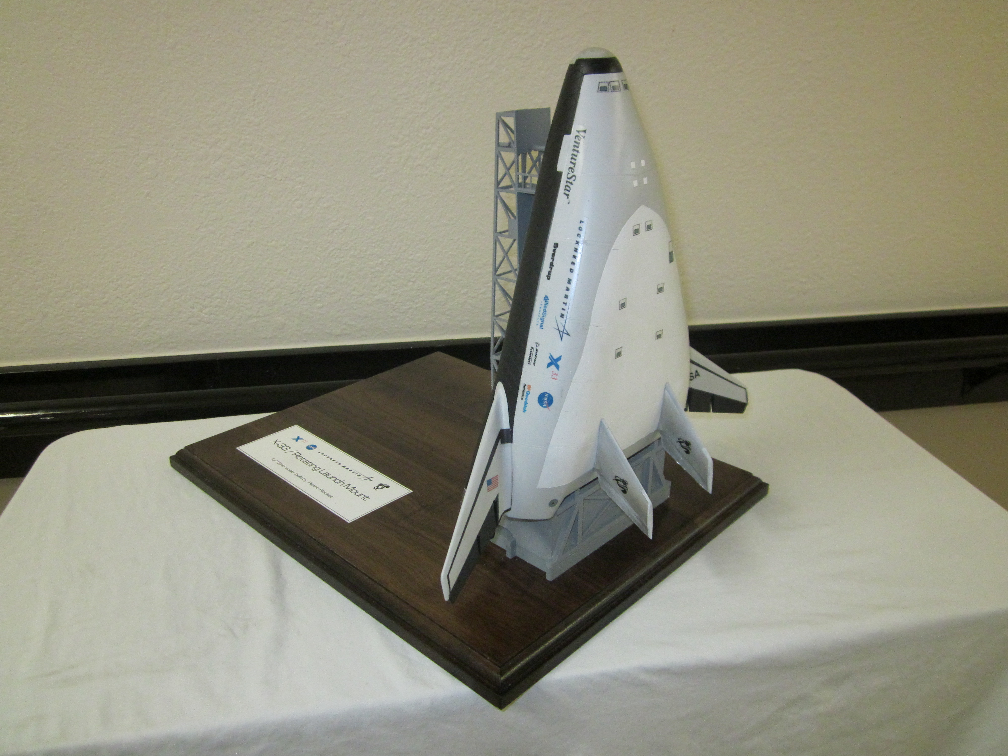 Everything starts with an accurate CAD model, either supplied or created by me. Then I’ll have parts built using different Rapid Prototyping processes and my talented group of subcontractors. This model is a 1/72nd version of the X-33 I mastered for Fantastic Plastic. I scribed in all the lines and details just like the contract models for NASA. Although the original idea was to have the Rotating Launch Mount in the kit it was too expensive. For this model I printed out my own RLM and mounted it on the wood base. I had the parts done at Shapeways and if anyone wants to do the same I’ll put them up so they can be ordered.