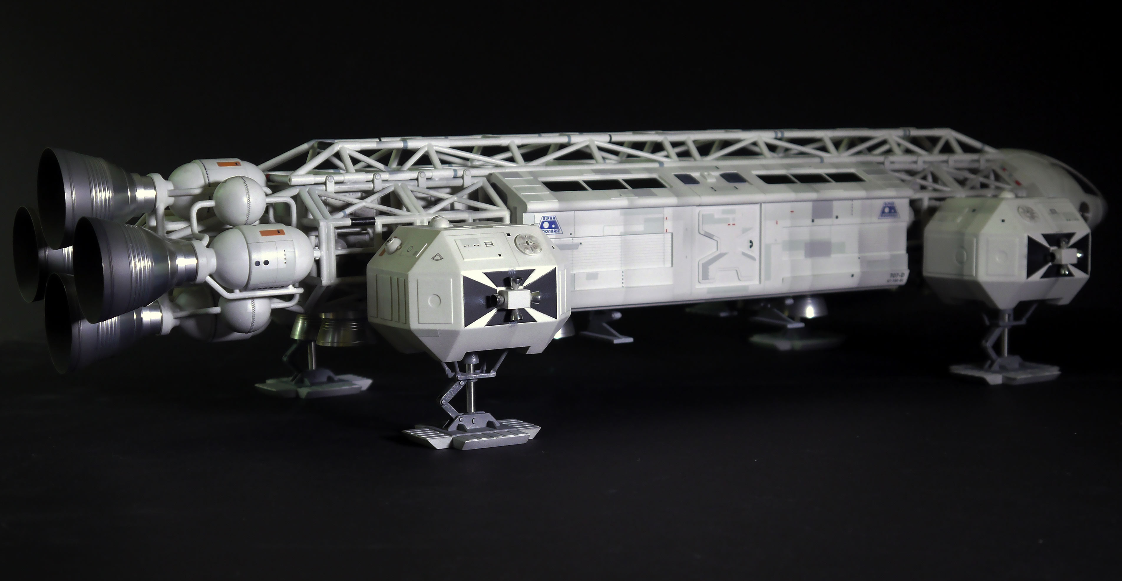 One of those customers was Karl Tate, who is also our company’s graphics manager and is extremely knowledgeable about the original Eagle filming miniatures. He prepared an extensive specifications document with lots of notes and diagrams for me to follow. He also drew all of the custom graphics, as we replaced most of the kit decals with custom dry transfers from All-Out Graphics in Canada.