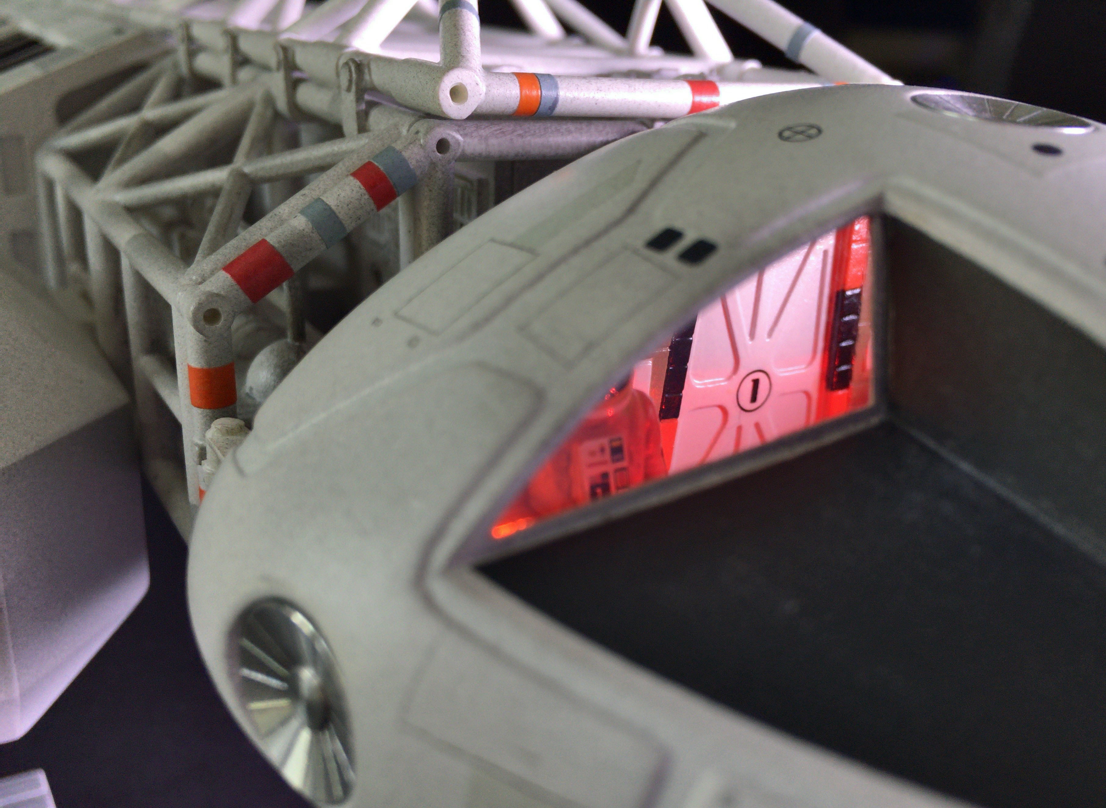 Karl recreated the cockpit interior and I printed it on heavy paper and plastic sheet. I also installed two orange LED’s that fire into the cockpit to eliminate everything nicely in-scale.